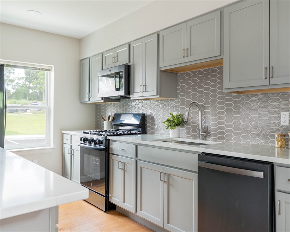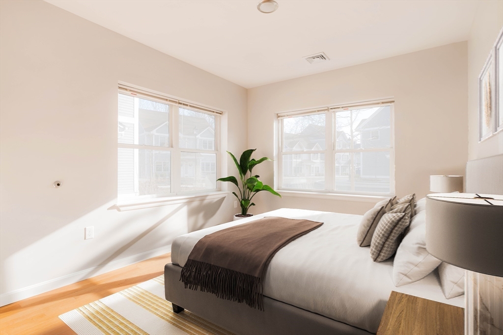 Feels like a single-family home, but it's a condo. One-of-a-kind stand-alone new construction townhome in a thoughtfully designed residential community near the Boston Nature Center. This 3-bedroom, 2-bath home offers the comfort of single-family-style living with the efficiency of modern design. Features include an open-concept layout, engineered wood flooring, granite countertops, custom cabinetry, a breakfast bar, GE appliances, in-unit laundry, and central air conditioning. The spacious bedrooms provide restful retreats, and the stylish bathrooms add a touch of luxury. A private patio extends your living space outdoors, ideal for relaxation or casual entertaining. Assigned off-street parking is included. The pet-friendly community offers landscaped common areas and walking paths. Convenient access to public transportation and local amenities enhances daily living. A unique opportunity for modern living in an established neighborhood.