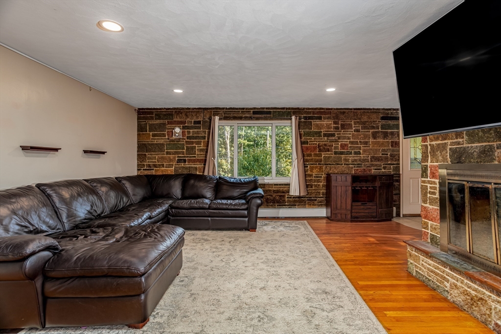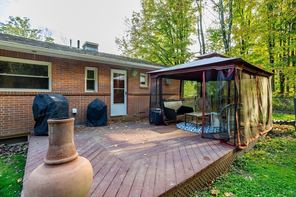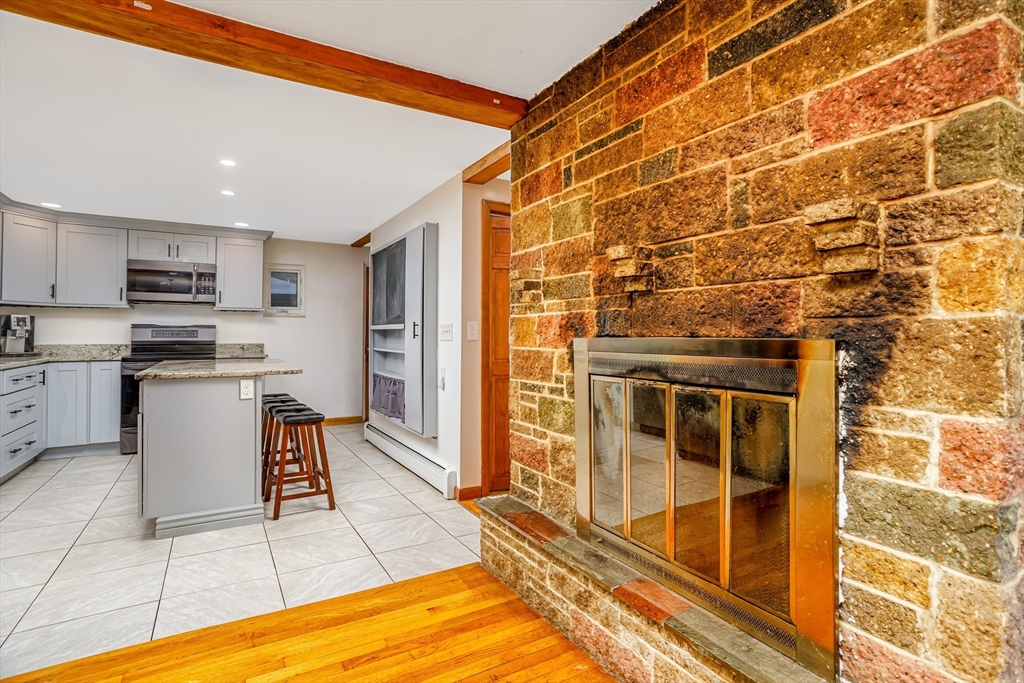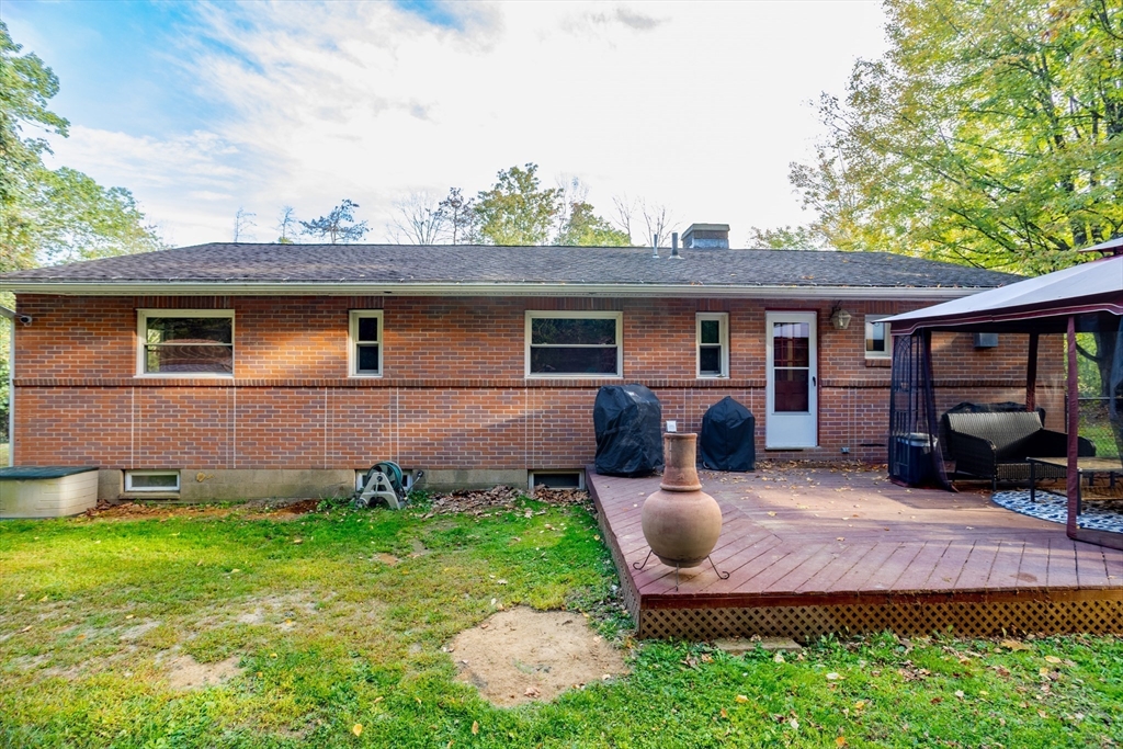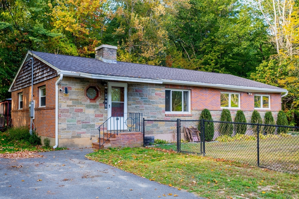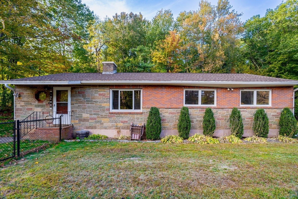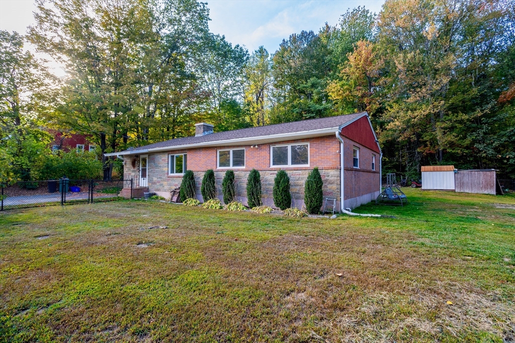 This classic mid-century modern brick ranch offers 3 bedrooms, 1.5 baths, and timeless charm with original hardwood floors beneath much of the carpeting. The spacious living room showcases a dramatic dual-sided brick fireplace, with a second fireplace in the basement adding extra character. Enjoy a newly renovated kitchen with gleaming granite countertops and stainless steel appliances, plus the convenience of a main-floor laundry room. The fully fenced, level backyard features a large deck for entertaining, a shed for storage, and a garden area ready for flowers or vegetables. Perfect for pets, play, or relaxing outdoors, this home blends retro charm with modern updates. Close to town and just minutes from Route 2 and the Wachusett Commuter Rail, it offers comfort, style, and an ideal location.