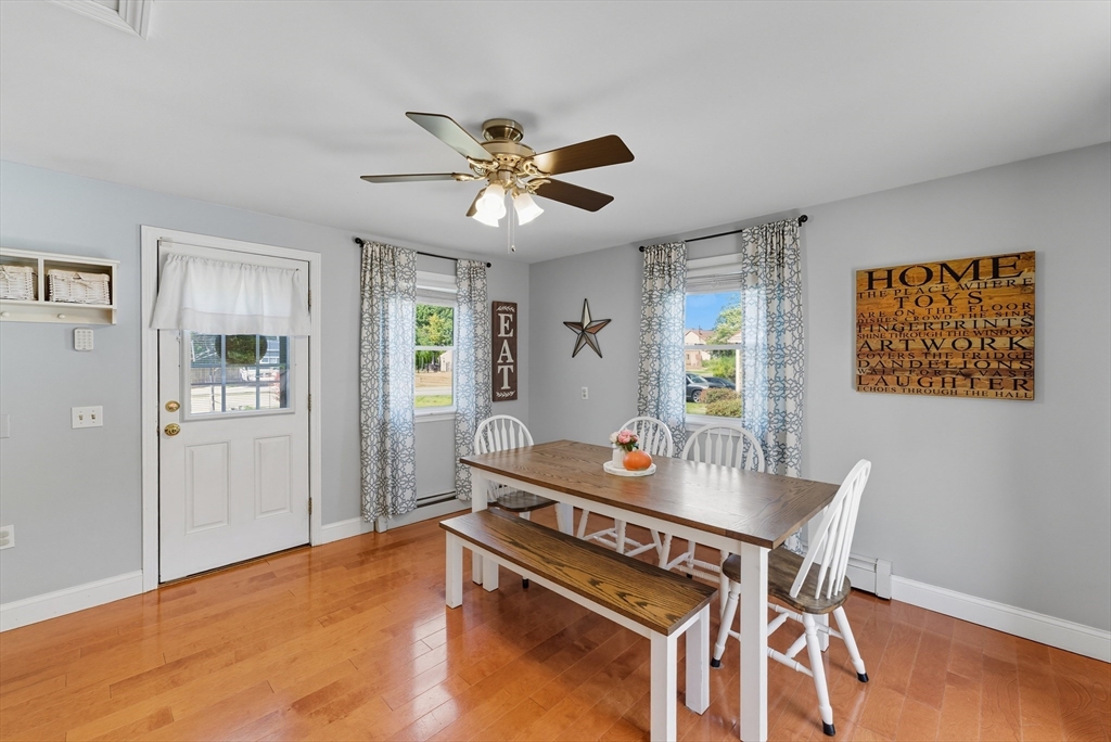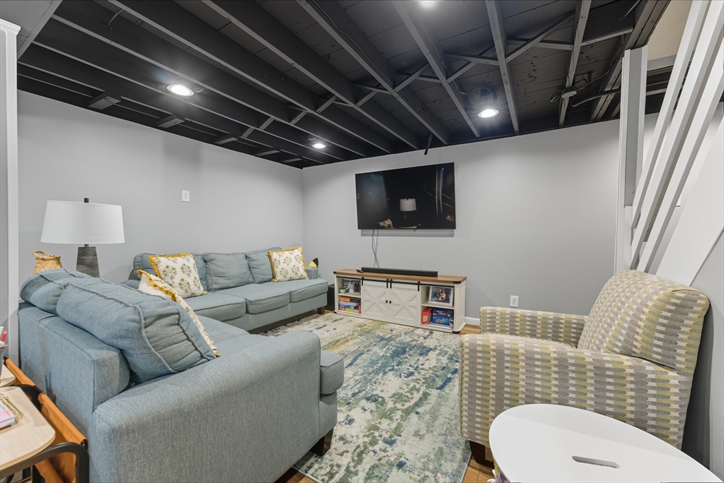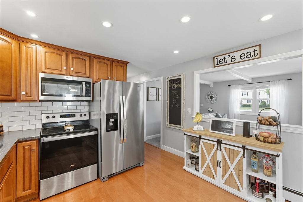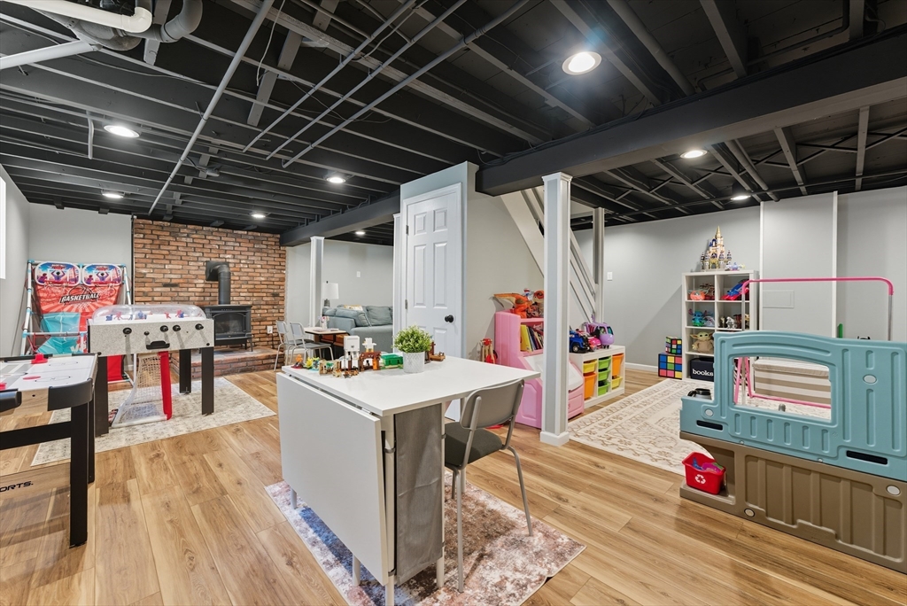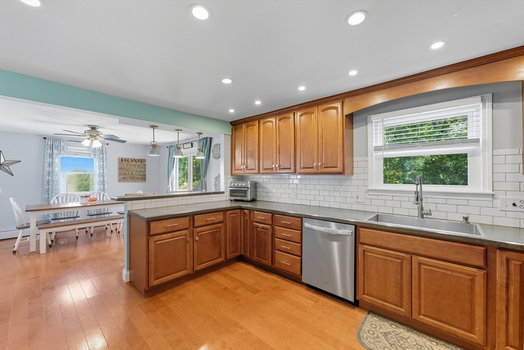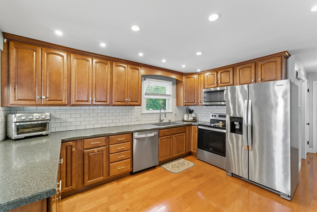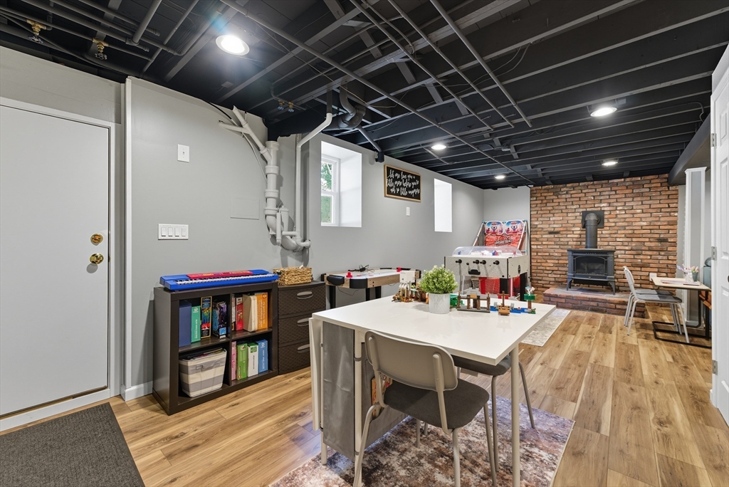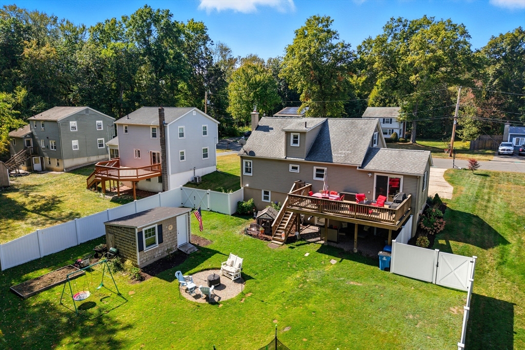 Move Right Into this Stunning 4 Bedrm 1.5 Bath Vinyl Sided Cape set on a pretty yard on a cul-de-sac street in a desirable Fausey Neighborhood. So many major updates completed (APO): Updated Architectural Roof, All Replacement Windows '22, Updated Kitchen & Baths, High-Efficiency Gas Tankless Boiler '19, updated electrical '25 & fresh interior paint. The 1st flr has a modern design w/an expansive kitchen w/rich cabinetry, stylish backsplash, trendy counters & breakfast bar is wide open to a spacious dining area w/slider to a relaxing deck views the private fenced yard. A sun-filled living rm is ideal for gatherings plus 2 roomy bedrms w/double closets & a tiled full bath. Upstairs, 2 generous bedrms w/plenty of closet space & a handy ½ bath. The walk-out basement is a real bonus partially finished w/a cozy gas stove/fireplace, perfect for a family rm, office and/or gym. With smart updates, versatile living areas & a neighborhood setting that buyers love, this home is a true sweetheart!