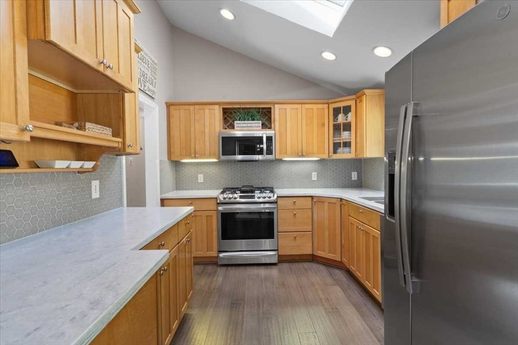 Open House Sat & Sun, 9/27 & 9/28, 1–3 PM – This is NOT a drive-by — step inside, fall in love, and make it yours! Beautifully updated 4BR, 2.5BA home in a highly desirable neighborhood near the vibrant APEX Center for dining, shopping, & entertainment. The stylish kitchen features solid-surface counters, tile backsplash, laminate floors & SS appliances, flowing into a sun-filled DR & spacious LR w/ bay window, wood-burning FP & hardwood flooring. A French door opens to a stunning FR w/ cathedral ceilings, skylights, & access to a fenced yard & charming farmers porch w/ composite decking. The ground level offers a 4th BR (currently an office), gas FP, wet bar, built-ins, media space & full BA—perfect for guests, teens, or game nights! Updates include windows, siding, water heater, fridge, shed & more. Multiple decks offer the perfect setup for relaxing or entertaining. Great commuter location! Warm, inviting, and move-in ready—come walk through, feel the vibe, and make it home!