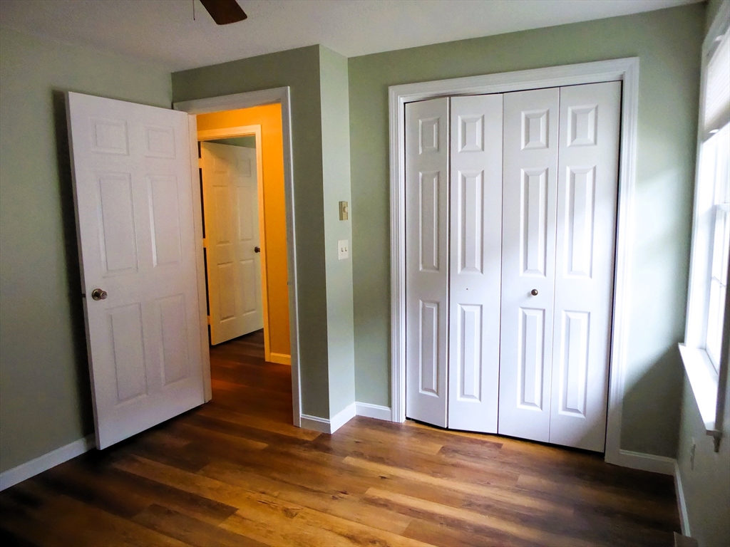 Welcome Home! You will love this beautifully updated 2nd floor condo overlooking the serene green open space and landscaping. Large kitchen open to living room with luxury plank flooring and slider to porch. 2 bedrooms and full bath. In unit washer/dryer combo. Large 3rd floor storage unit for all your extra items.