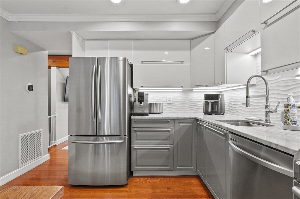 Experience the best of condo living in this impeccably maintained Townhouse conveniently located in Saugus! This immaculate home features 2 bedrooms and 1.5 baths, a bonus finished space in the attic, a bright and sunny living room, and finally, an eat in kitchen boasting stainless appliances and a half bath for guests for convenience. The two generously sized bedrooms upstairs offer abundant closet storage and a full bath. Upstairs on the top floor you will find the perfect space for an office, game room, or hangout space. This well-maintained unit also features an attached garage with an automatic door opener, additional storage, a private driveway for your convenience and common patio area for unwinding. Enjoy unbeatable accessibility with quick access to Route 1, plus nearby shopping, dining, and scenic walking/biking trails. Whether you're a first-time buyer, downsizer, or investor, this is a fantastic opportunity to customize and make it your own!