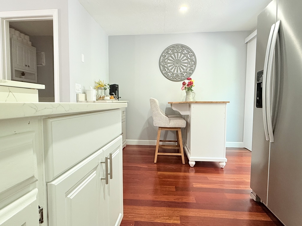 Welcome to this beautifully updated townhouse that perfectly blends comfort and quality. Featuring two well-sized bedrooms and 1.5 renovated bathrooms. This home stands out with rich Brazilian cherrywood flooring throughout both the first and second floors. The main level offers a bright, open-concept living and dining area, ideal for everyday living and entertaining. The kitchen is both stylish and functional, featuring sleek quartz countertops, and a cozy breakfast nook to start your mornings right. Upstairs, you’ll find two spacious bedrooms and a stunning full bathroom finished with elegant marble flooring. The fully finished basement adds even more living space, including a large family lounge and a versatile bonus room—perfect for a home office, gym, or guest area. This move-in ready home offers warmth, style, and space in all the right places! Please note: Sellers are actively seeking suitable housing and may require a flexible closing.