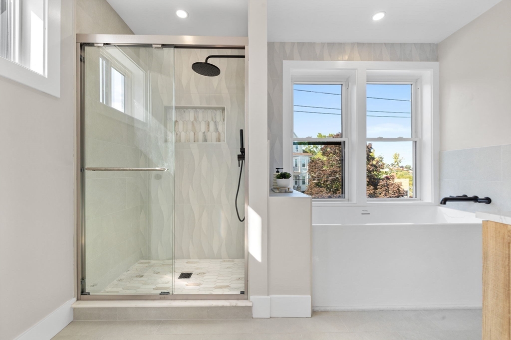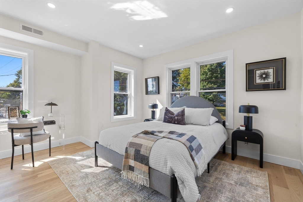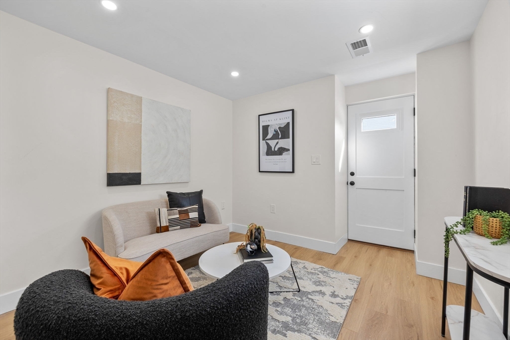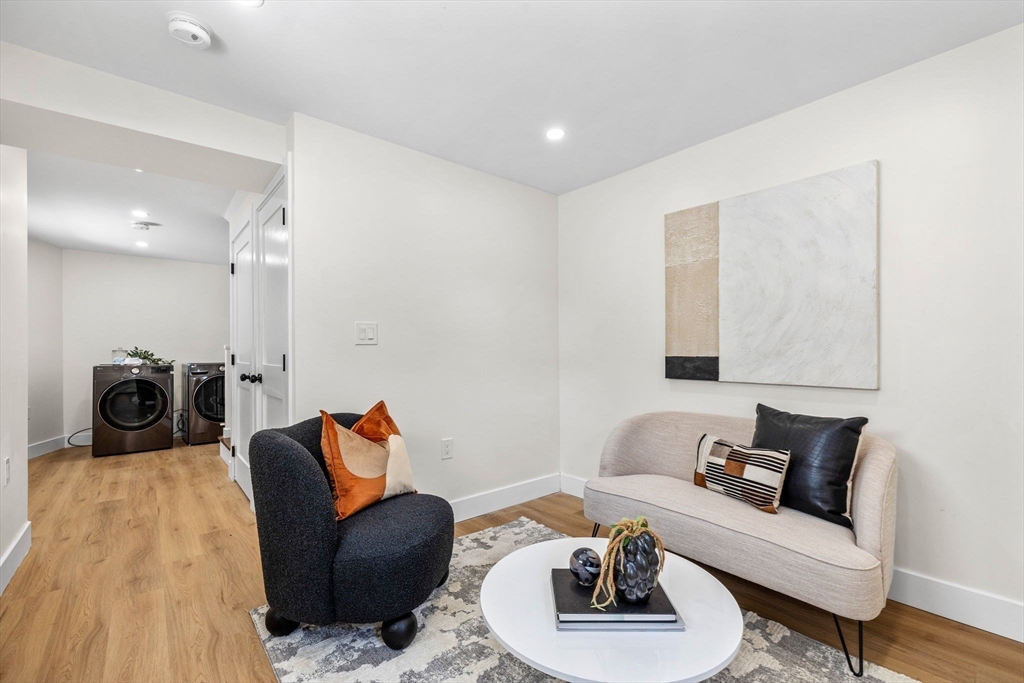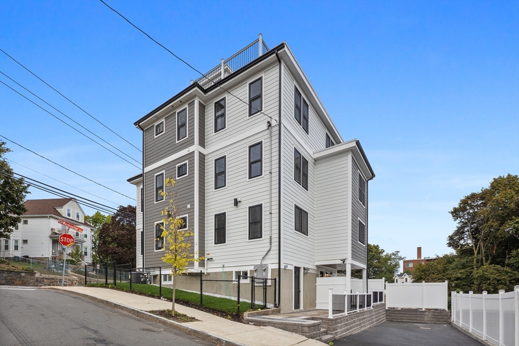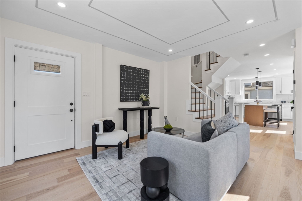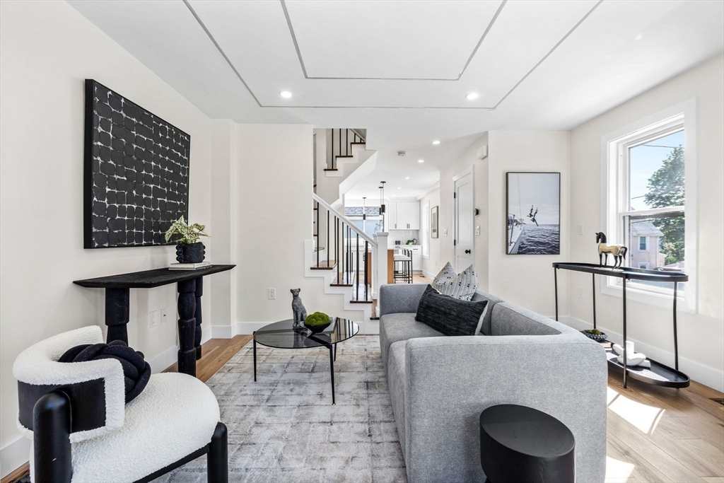 Modern design & thoughtful living come together in this new construction townhouse in Chelsea’s coveted Prattville neighborhood. The open-concept main level offers a sunlit living room, powder bath & a designer kitchen with modern white cabinetry, oak island, quartz counters, full-height backsplash & sleek black fixtures. A lower-level family room with powder bath opens to a private rear patio, perfect for entertaining or a home office. The middle floor features two spacious bedrooms & a full guest bath, while the top level is dedicated to the primary retreat with a spa-like bath and deep soaking tub. Designed with privacy in mind, this home lives like single families & include a private roof deck with sweeping neighborhood views & 2 off-street parking spaces. Just minutes to Boston, Logan Airport, the Tobin Bridge, Route 1, and Route 16, you’ll enjoy the lifestyle of an established neighborhood with easy access to local cafés, parks, and dining, all while being moments from the city.