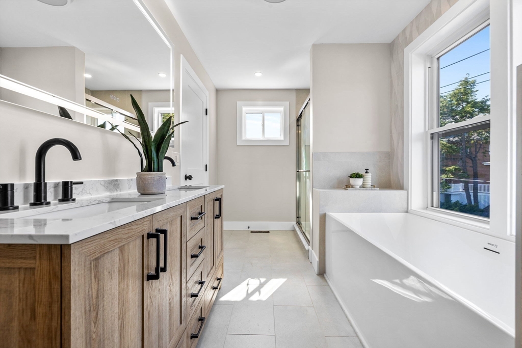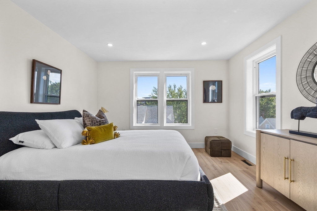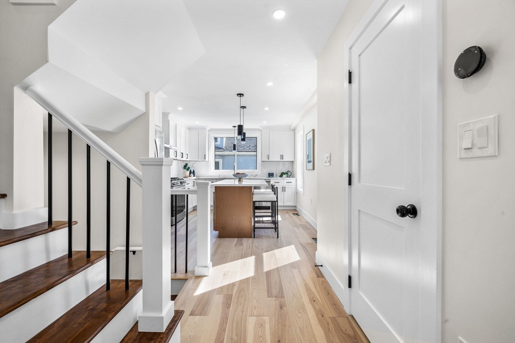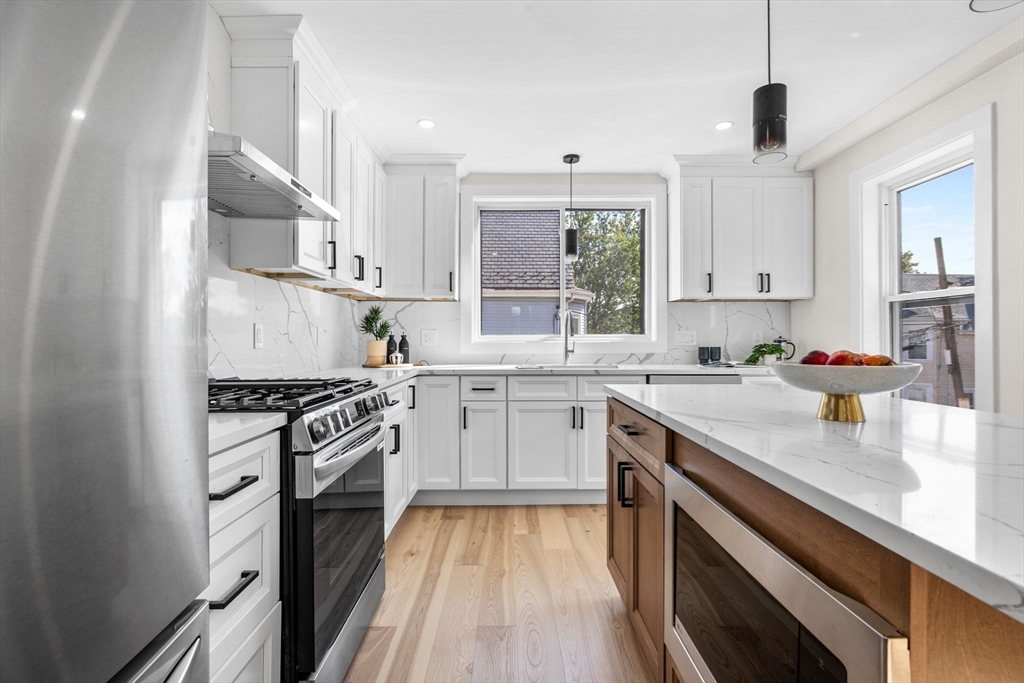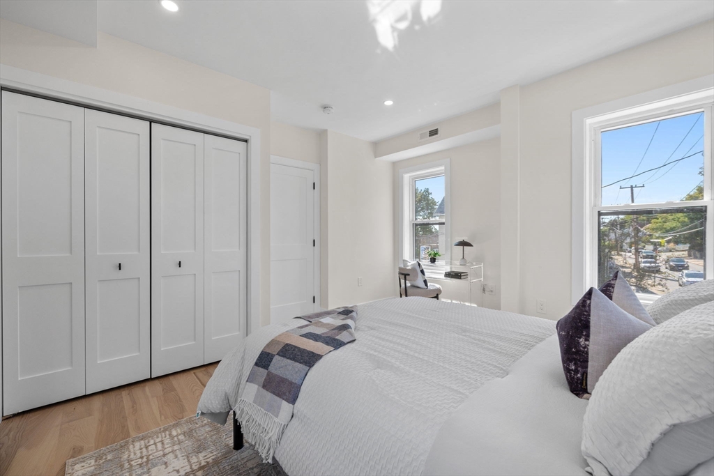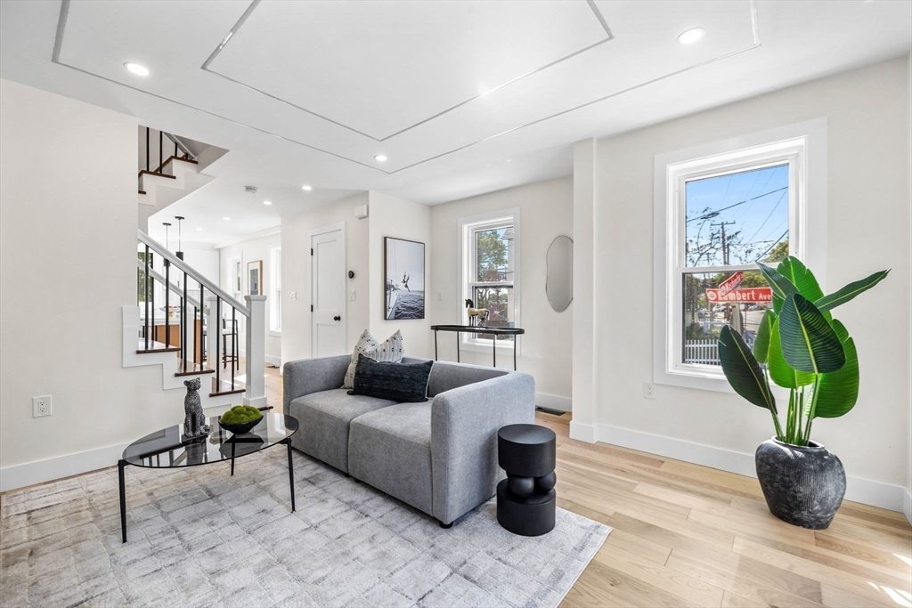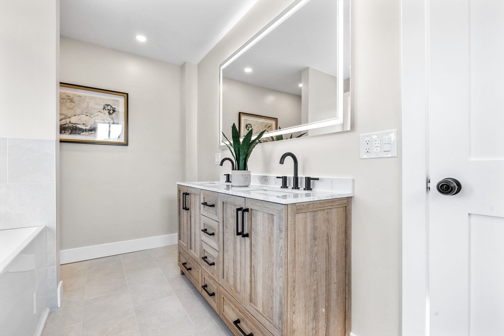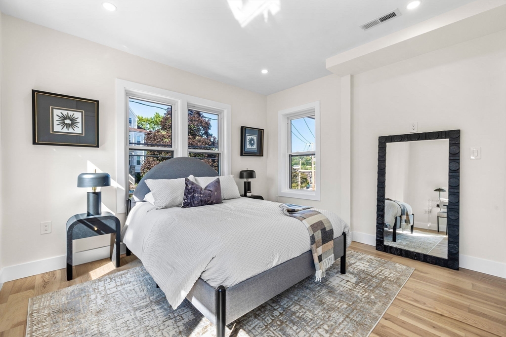 Modern design & thoughtful living come together in this new construction townhouse in Chelsea’s coveted Prattville neighborhood. The open-concept main level offers a sunlit living room, powder bath & a designer kitchen with modern white cabinetry, oak island, quartz counters, full-height backsplash & sleek black fixtures. A lower-level family room with powder bath opens to a private rear patio, perfect for entertaining or a home office. The middle floor features two spacious bedrooms & a full guest bath, while the top level is dedicated to the primary retreat with a spa-like bath and deep soaking tub. Designed with privacy in mind, this home lives like single families & include a private roof deck with sweeping neighborhood views & 2 off-street parking spaces. Just minutes to Boston, Logan Airport, the Tobin Bridge, Route 1, and Route 16, you’ll enjoy the lifestyle of an established neighborhood with easy access to local cafés, parks, and dining, all while being moments from the city.