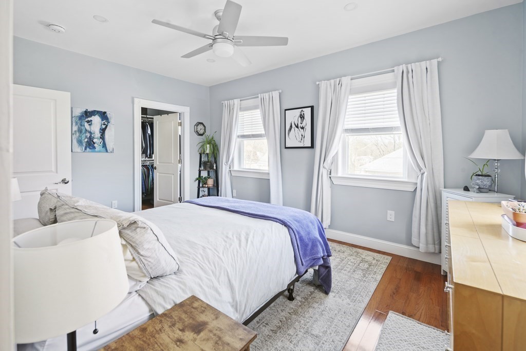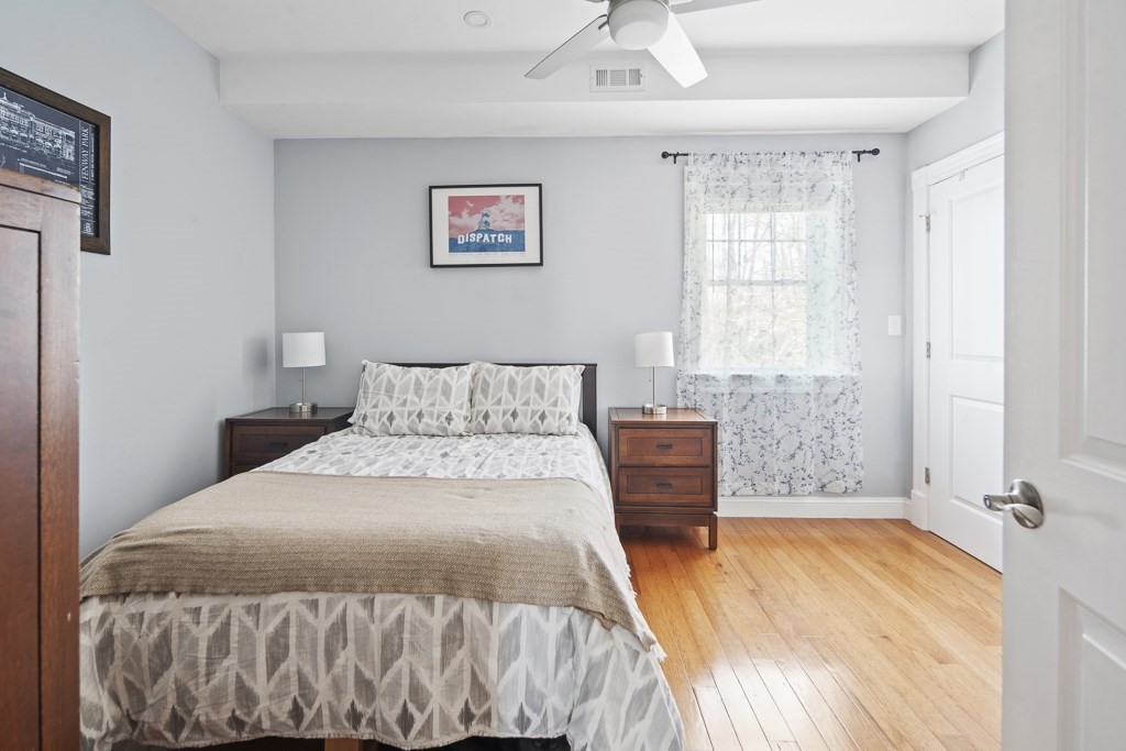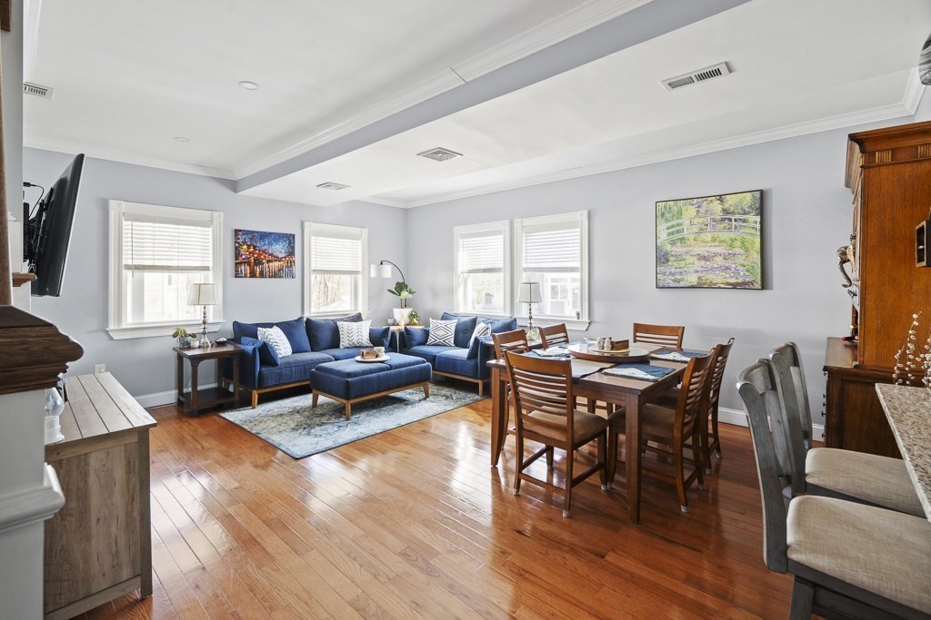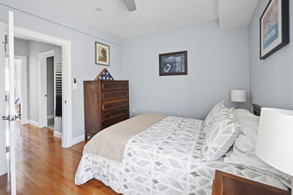 Stunning 2021 gut-renovated townhouse in sought-after Maplewood neighborhood. Private front porch is welcoming and the perfect spot to enjoy a morning coffee. First floor features open-concept living room, dining room and kitchen. Natural light abounds and the hardwood floors shine throughout! Kitchen features granite countertops, stainless steel appliances and custom cabinets with pull out drawers and a spice rack. Second floor boasts a sizeable primary bedroom with a large walk-in closet and an en-suite with a lovely tiled walk-in shower. This floor also has a second bedroom, full bath and laundry. Entire top floor dedicated to a huge bedroom with a massive closet that can be used as an office, family room and much more. Private outdoor space includes a spacious patio with steps to large, grassy backyard. Superb location around the corner from 106 bus line stop, .2 mi to Trafton Park with dog park, tot lot and tennis courts, .3 mi to Salem/Maplewood St shops and restaurants!