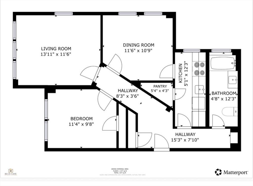 建筑面积624 平方英尺 (约 58 平方米)