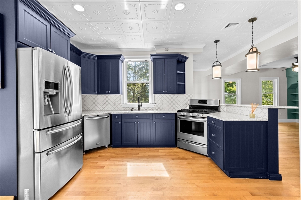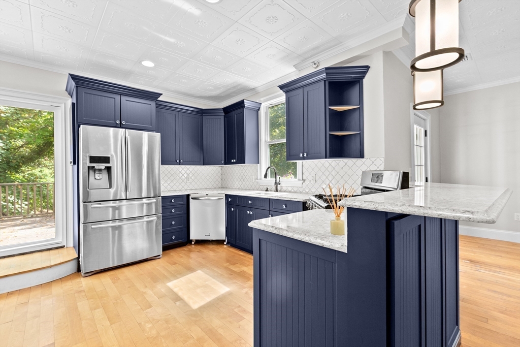 Discover this beautifully renovated 2 bedroom, 1.5 bath townhome in the heart of historic downtown Plymouth. Blending Victorian charm with modern updates, this home offers approximately 1,800 sq. ft. of spacious, sun filled living. Step into the open eat-in kitchen featuring stainless steel appliances, a breakfast counter, and seamless flow into the cozy living room with a fireplace and custom built-ins, perfect for relaxing evenings. Gleaming hardwood floors and oversized windows enhance the natural light throughout.The expansive primary suite is complete with a fireplace, private balcony, and a versatile study alcove. A large sized guest bedroom and updated baths provide comfort for family or visitors. Enjoy outdoor entertaining on the large deck or by the fire pit. 2 deeded off-street parking spaces add convenience and are a rare find downtown. Perched atop the sought-after Burial Hill, you will be just steps away from Plymouth’s rich history, vibrant restaurants and the waterfront.