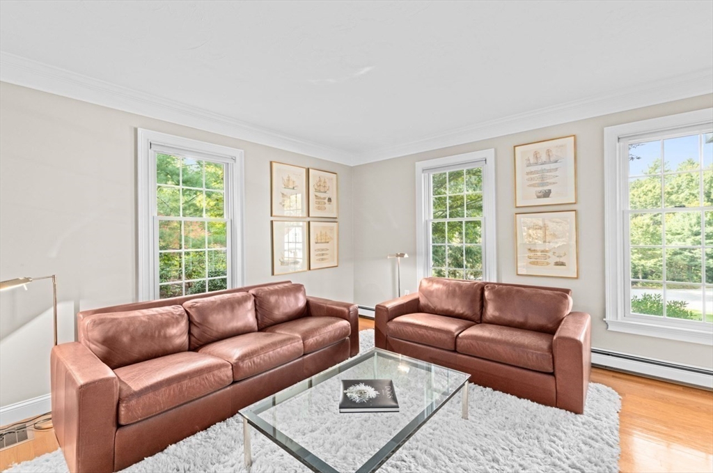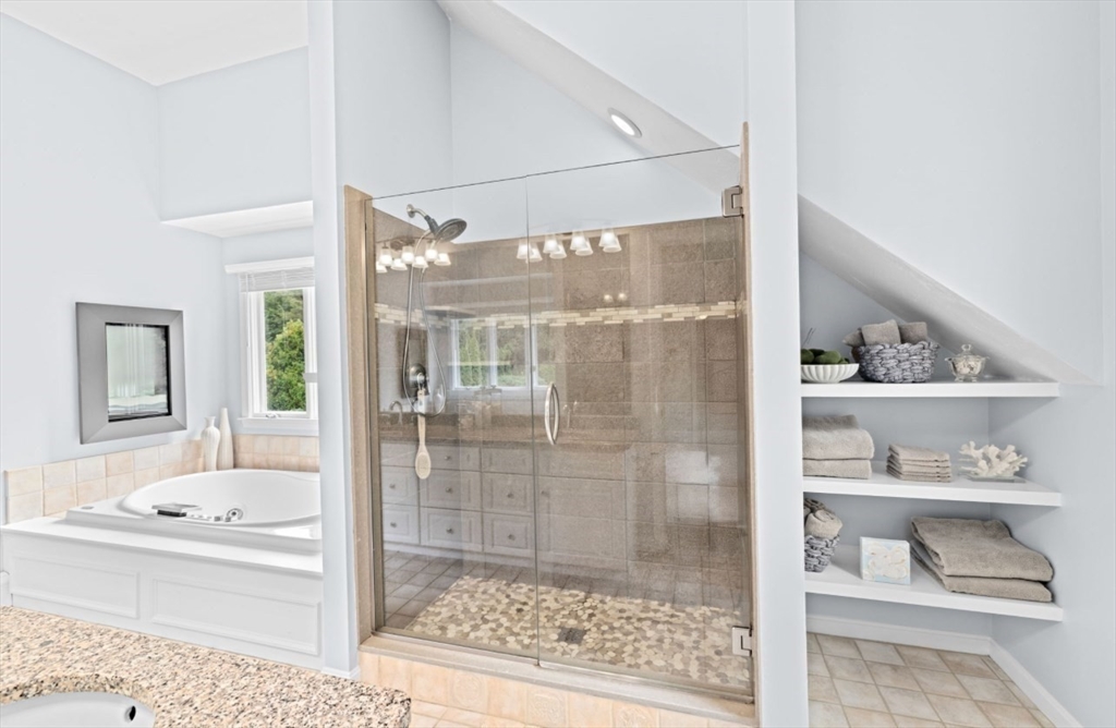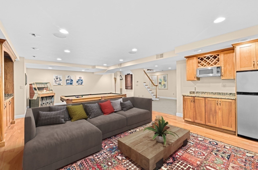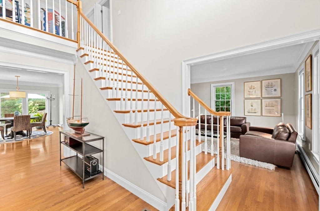 Experience the pinnacle of modern elegance in this exceptional home. Set on a private 1-acre lot in North Marshfield's prestigious Arrowhead neighborhood. An open & effortless floor plan featuring a bright white kitchen with quartz countertops, stainless steel Bosch appliances, two ovens and center island, flows seamlessly into a spacious, fire-placed family room and french doors leading to an outdoor oasis. Enjoy the tranquil deck/patio with stunning landscaping & beautifully engineered stone walls that define the space with timeless charm. Upstairs boasts a luxurious primary suite with 2 walk in closets, 3 additional generously sized bedrooms and home office. The 3rd floor provides a bright, oversized bonus room with its own full bath perfect for playroom, au pair or guest suite. Finished lower level has a spectacular media/game room with surround sound, wet bar and gym. All this just minutes from the Boston commuter train, pristine beaches, marinas, shopping, dining and more