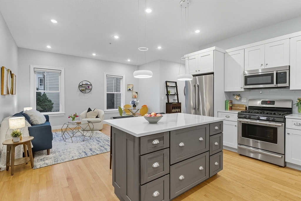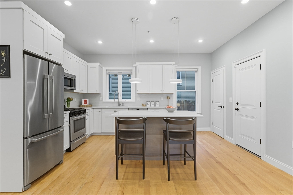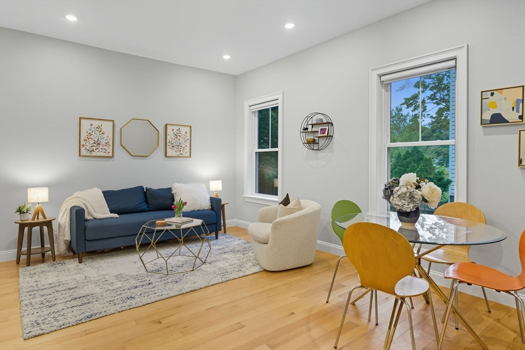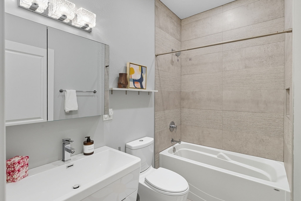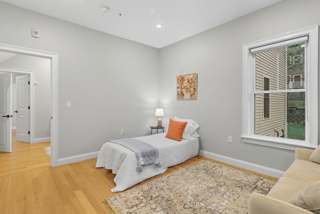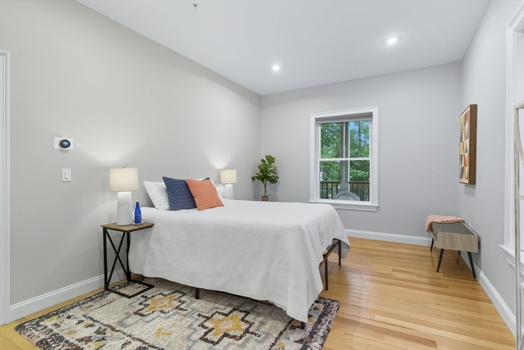 Incredibly spacious, recently renovated 3 bed, 2 bath condo situated on dead-end Chilcott Plc. The beautiful kitchen features quartz counters, stainless steel appliances & island seating. Primary suite has large walk-in closet and a modern bath with double vanities and glass shower. Additional 2 bedrooms both with good closets and plenty of space for queen sized beds. Oversized foyer offers flexibility for home office. In unit laundry room, driveway parking spot with electric car charge port if needed. Coveted outdoor space includes private, covered front & rear porches, and a fenced-in, shared back yard. Granada Park Community Garden at end of street for neighbors to enjoy. Short distance to Hospitals, Franklin Park trails, Public Transportation, Southwest Corridor Park and much more! HOA fee includes water, sprinklers, lawn care, garbage and recycling, outdoor security camera, and common area fixtures.