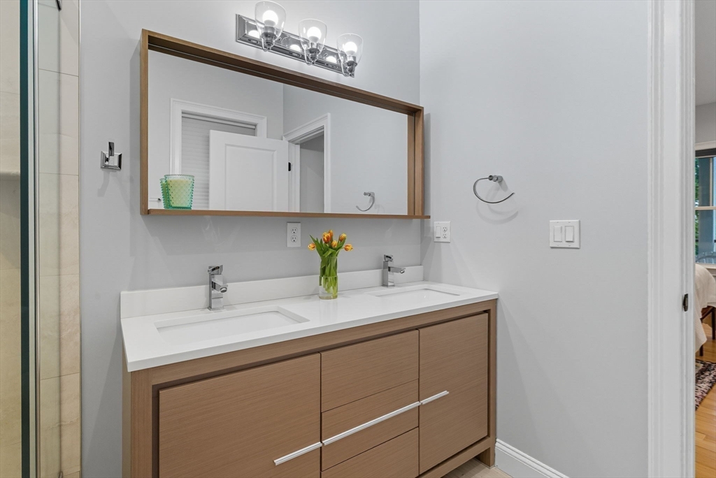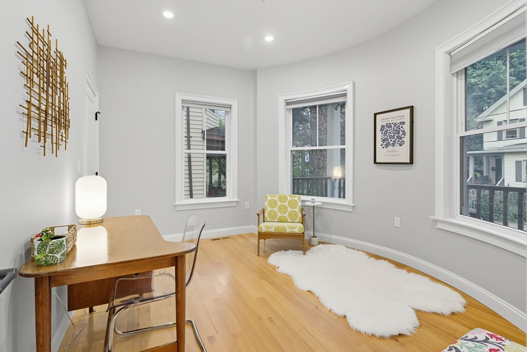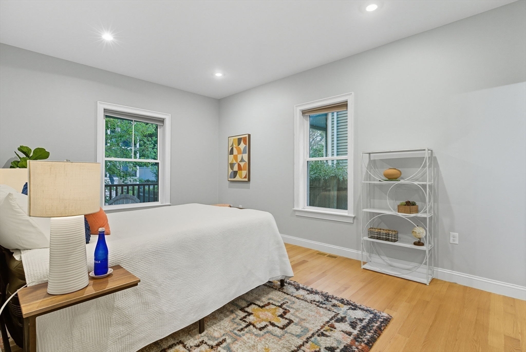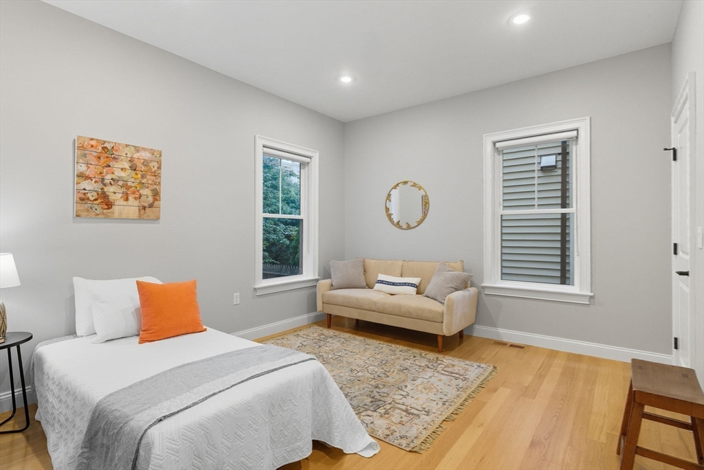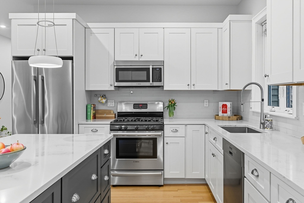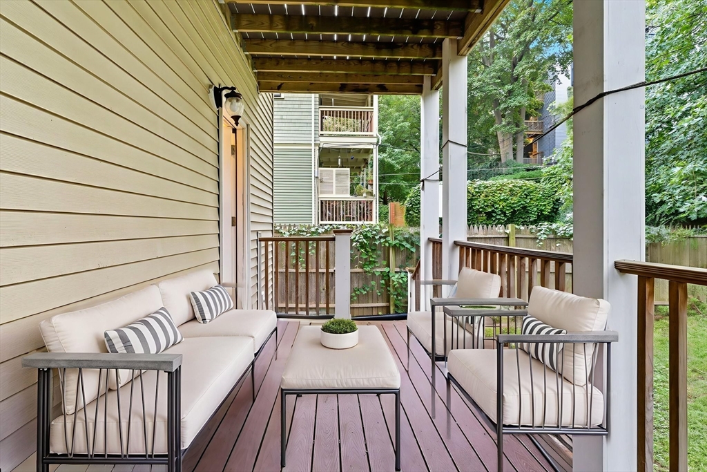 Incredibly spacious, recently renovated 3 bed, 2 bath condo situated on dead-end Chilcott Plc. The beautiful kitchen features quartz counters, stainless steel appliances & island seating. Primary suite has large walk-in closet and a modern bath with double vanities and glass shower. Additional 2 bedrooms both with good closets and plenty of space for queen sized beds. Oversized foyer offers flexibility for home office. In unit laundry room, driveway parking spot with electric car charge port if needed. Coveted outdoor space includes private, covered front & rear porches, and a fenced-in, shared back yard. Granada Park Community Garden at end of street for neighbors to enjoy. Short distance to Hospitals, Franklin Park trails, Public Transportation, Southwest Corridor Park and much more! HOA fee includes water, sprinklers, lawn care, garbage and recycling, outdoor security camera, and common area fixtures.