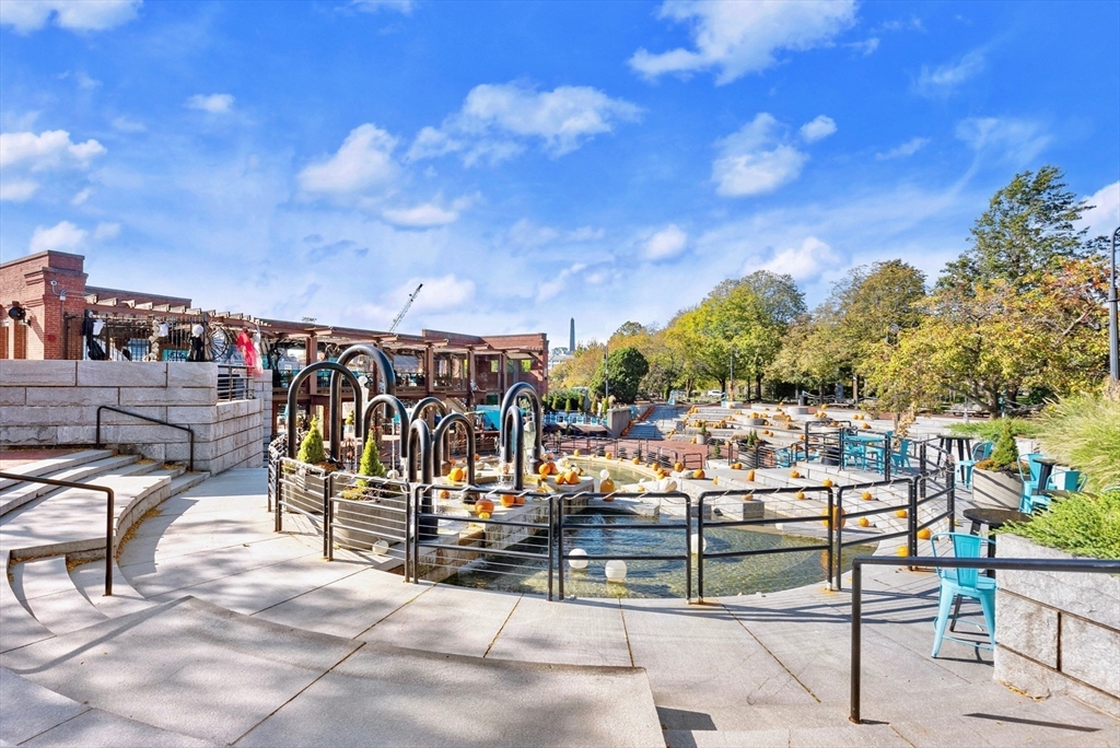 Idyllic corner studio + den, with garage parking! This picturesque unit provides an open and inviting layout with exposed brick ca.1899, high ceilings, and incredible natural light. Large and dimensional living is perfect space to relax or entertain. Modern granite kitchen with SS appliances and full-size pantry. Bedroom/den with custom closets is suitable for a queensize! Spacious bath with granite vanity & shower surround tub. Enjoy everything Parris Landing has to offer from the in-ground heated pool, professionally manicured grounds with dedicated patio/grilling area to the Clubroom, elevator, 24/7 concierge, and fully appointed fitness center. Central AC. Pet friendly. 1 valet garage spot. A truly great opportunity to enjoy hands-free waterfront living in the heart of Charlestown's Navy Yard!