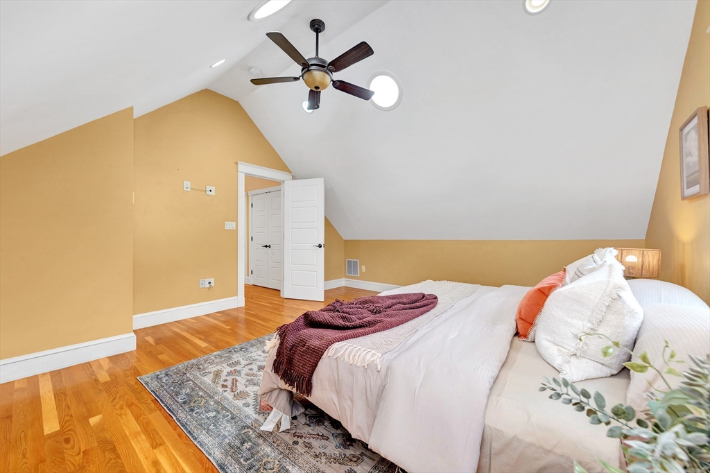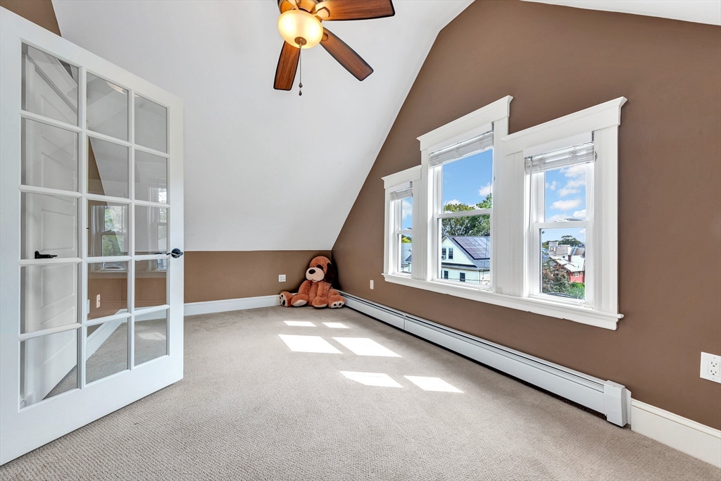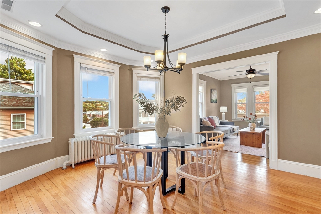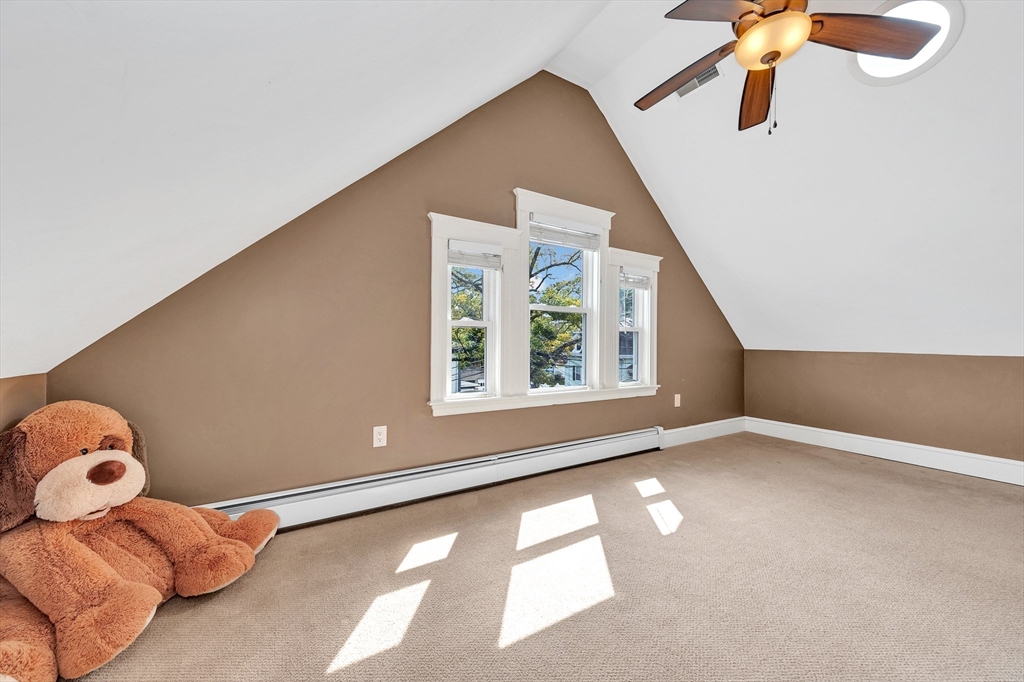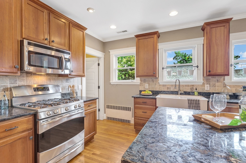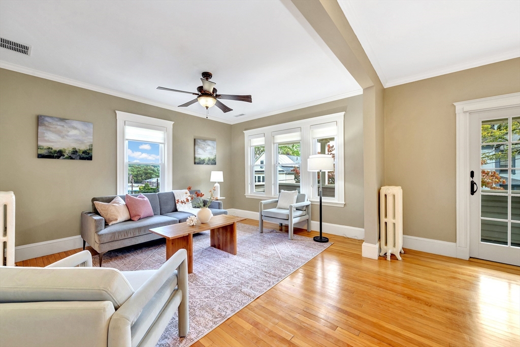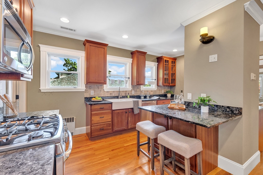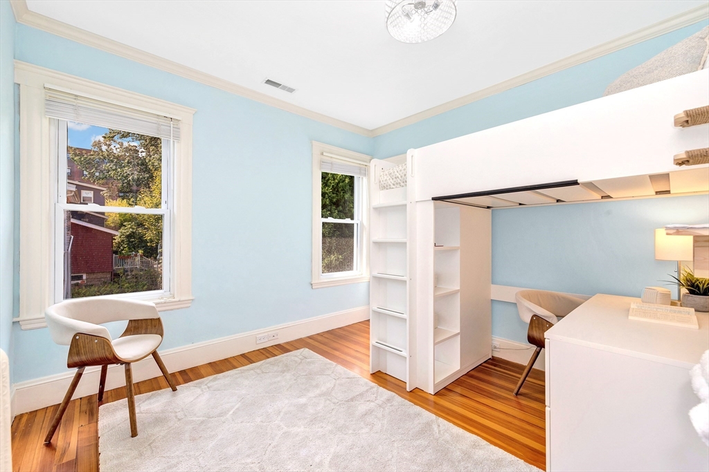 Equidistant between The Center & Heights, this gracious bi-level condominium offers over 2,200 sq. ft. and lives like a single-family home! Thoughtfully reimagined in 2011, this gem blends original beauty, charm, & craftsmanship w/stylish upgrades for modern, comfortable living. High ceilings & southeast light accentuate an open layout anchored by the living room. Sliding glass doors off a versatile “bonus room” open to the front porch, while the dining room flows into a beautifully designed kitchen (with a dreamy pantry) & direct access to the back deck for a suburban-treehouse feel. A full bath, laundry & two spacious bedrooms complete the main level. An upper-level retreat offers two more bedrooms, a cleverly designed bath & custom closets galore! All this + garage, 3 add'l parking spaces & a fantastic back yard! The location seals the deal, just a block off Mass Ave, with the 77 bus to cafés, theaters, shops & restaurants in the Center, or continue straight on to Alewife T station!