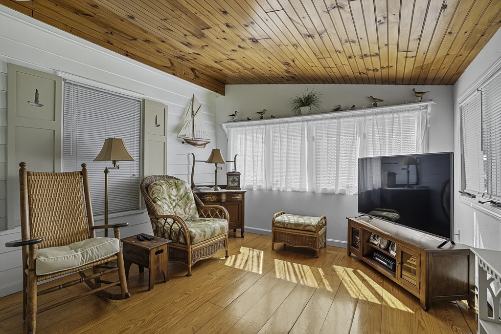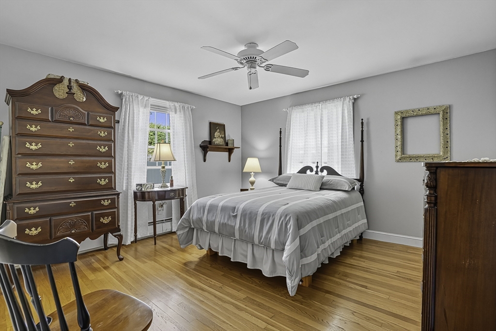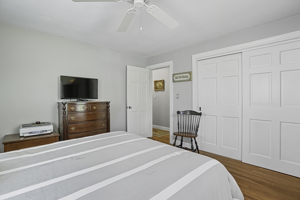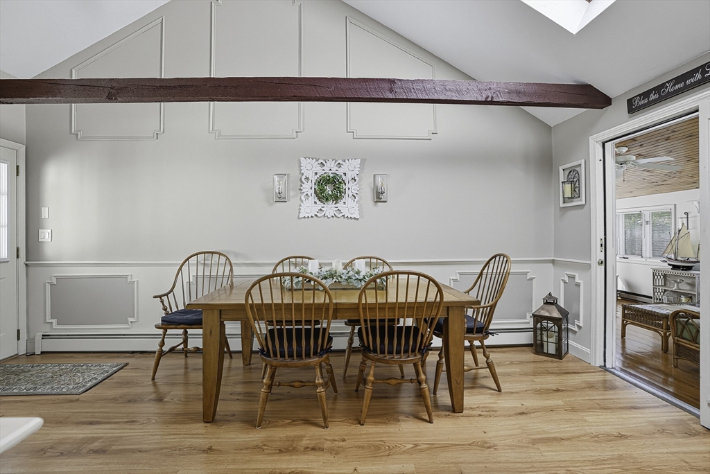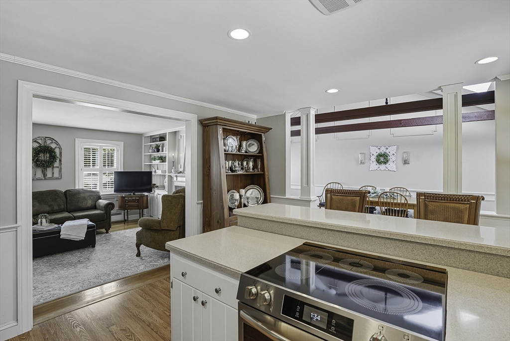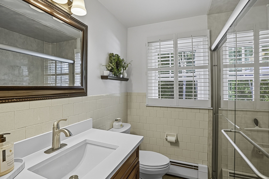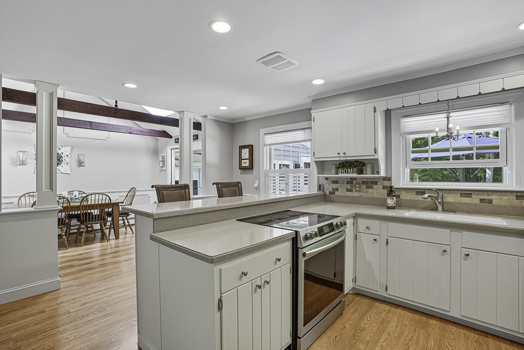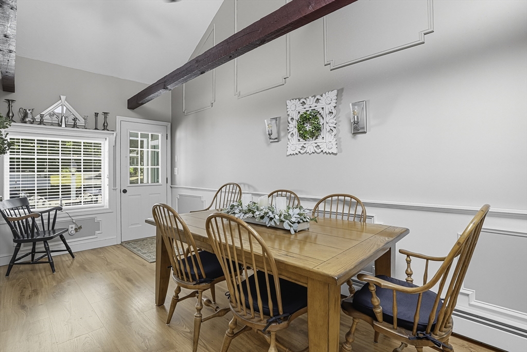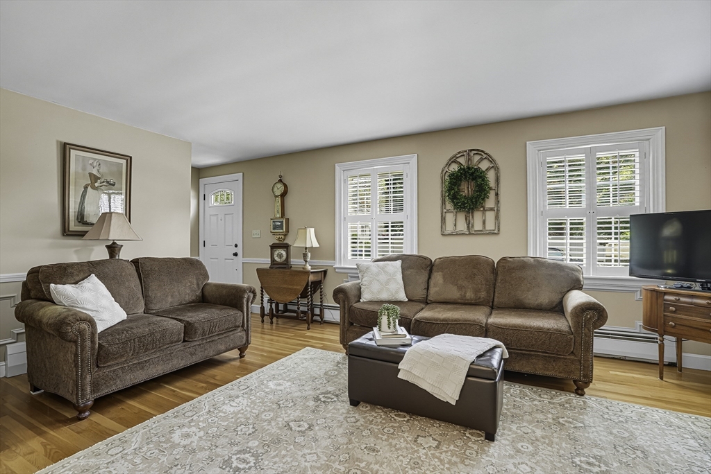 Beautifully maintained and updated oversized ranch with a bright, open floor plan. Features two spacious bedrooms, a full bath with walk-in shower, and improvements throughout. Expansion potential with walk-up attic with a finished staircase and large unfinished basement—plenty of room to grow! Light-filled dining room with cathedral ceiling and skylights open to the bright and sunny remodeled kitchen with stainless appliances and counter seating. Fireplaced living room has stunning wainscoting with built-in bookcases and storage. Highlight of the home is the huge sunroom overlooking the stunning back yard with its own gas stove for those cool evenings. Enjoy mature landscaping on your oversize deck and fenced-in private back yard. Perfect for those looking for one-level living! Pride of ownership and quality is apparent throughout! Conveniently located near all Upton's amenities and schools. A great commuter location!