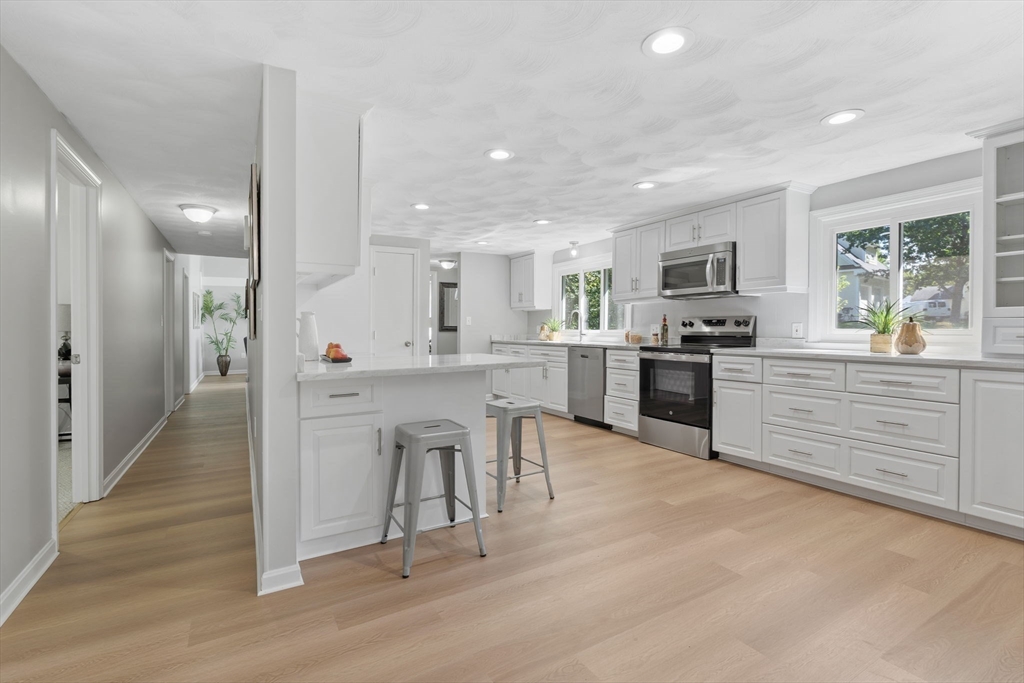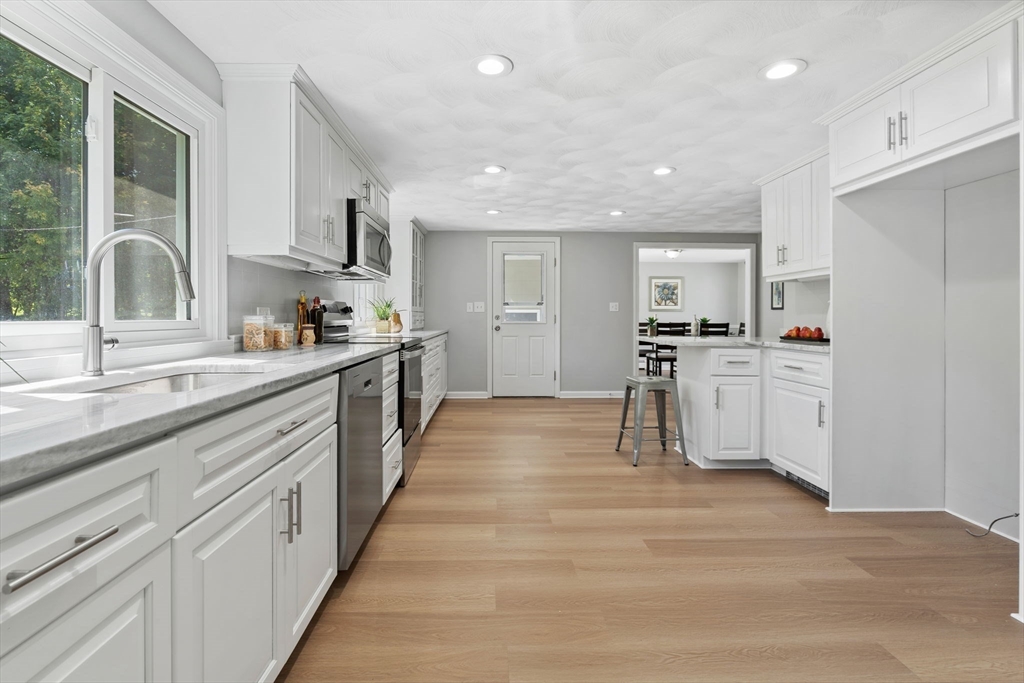 WOW...MUST SEE...LARGE 2,000sf RANCH with POTENTIAL for 1st floor living with an INLAW...4 Bedrooms 2 Full Bath with a spacious 2 car Garage set back from the road on over an acre of land with LOTS of privacy!! This home has 2 Bedrooms and a full bath on the main floor along with a large family room with plenty of natural light and 2 Bedrooms and a full bath with a large room with a fireplace and wet bar in the walk out finished lower level that is GREAT for entertaining!! There is even extra space for storage and a workshop too! The home has EXTRAS GALORE!! UPDATED KITCHEN with Granite counters and recessed led lighting, STAINLESS APPLIANCES, ALL NEW FLOORING, UPDATED BATHS, VINYL WINDOWS and a FRESHLY PAINTED interior throughout. SO MUCH to offer ...style and space with lots of flexibility. A Fantastic Home with sliders to a deck that overlooks the private back yard that is perfect for hosting family and friends... Seller to include a 1 year Select home warranty. Welcome home.