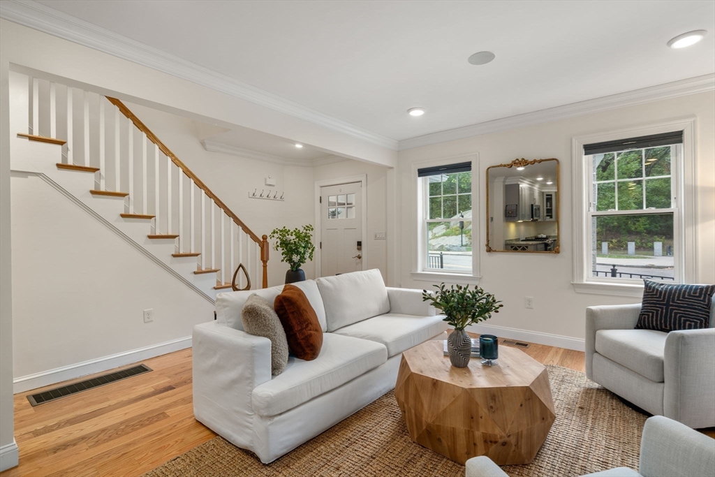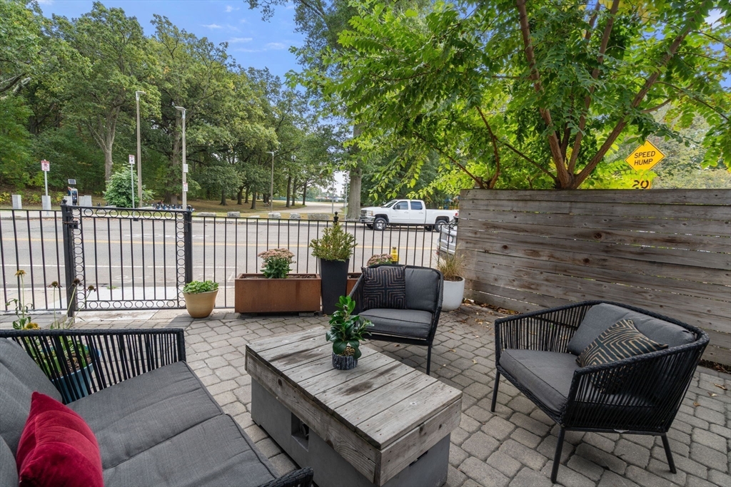Come see this recently renovated single-family colonial in Jamaica Plain. This 3 bed, 3 bath home is perfect for entertaining. Outside space includes a side lawn & cobblestone patio for grilling, as well as a gas fire pit & retractable awning for shade & parking for 2 cars. Back inside there's an open floor plan on the 1st floor, gas fireplace, energy efficient insulation, appliances, windows & doors, as well as solar panels w/zero dollar energy bill. 1st floor bedroom has a door leading to the patio, also full bath w/laundry on this level, 2nd floor primary bedroom has a walk-in closet with custom built ins, high curved ceilings & its own bath. 2nd bedroom on this floor has its own bath as well. Round this out with hardwood floors & central air to keep you cool in the summer! Full basement for additional storage. Urban living at its finest, yet so much green space in your front yard! Walk across the street to Franklin Park Zoo, Golf Course & beautiful walking trails.