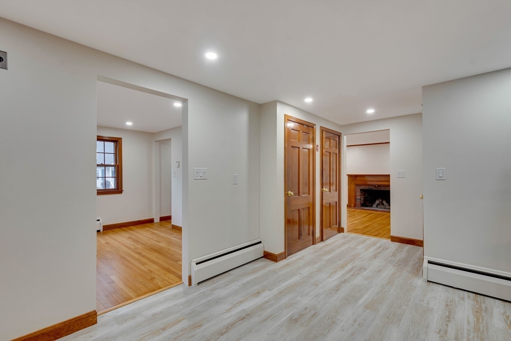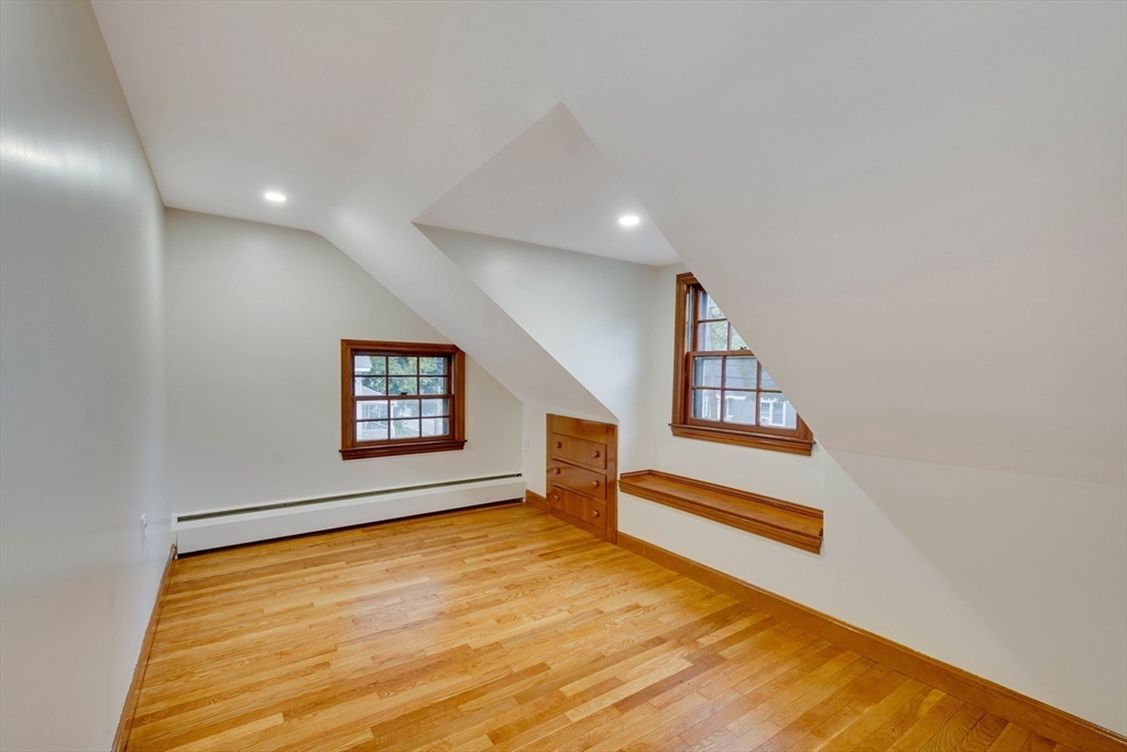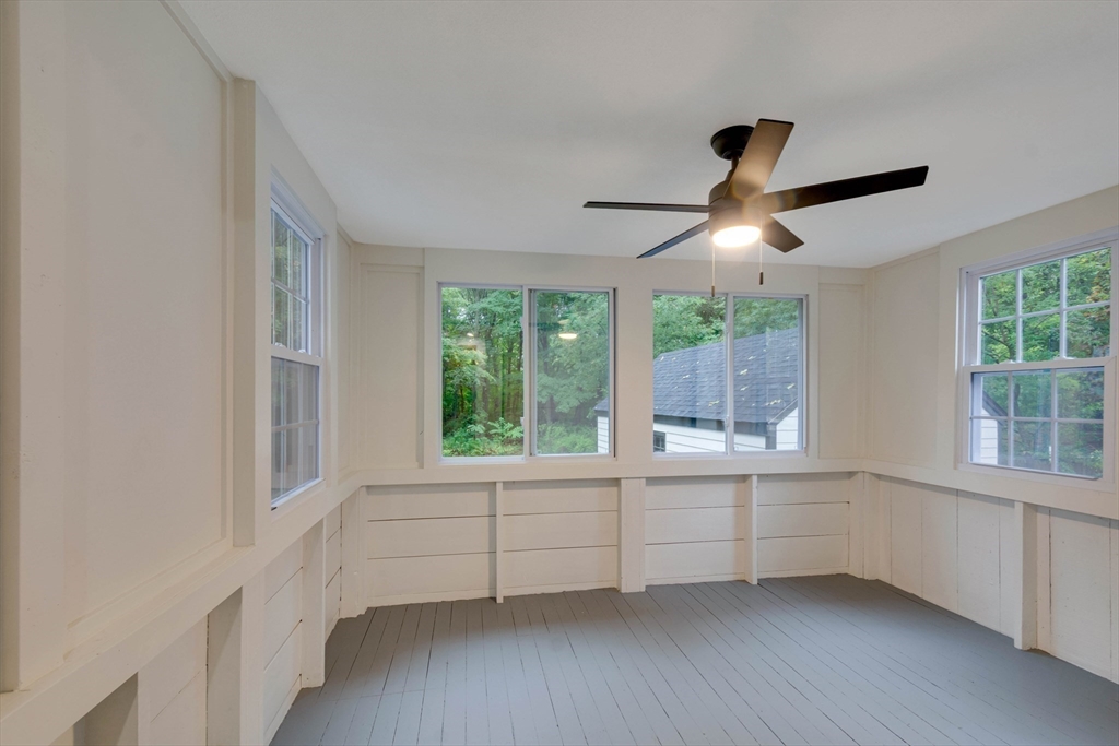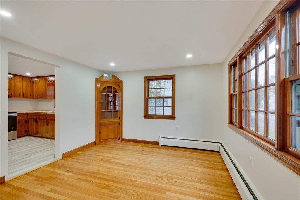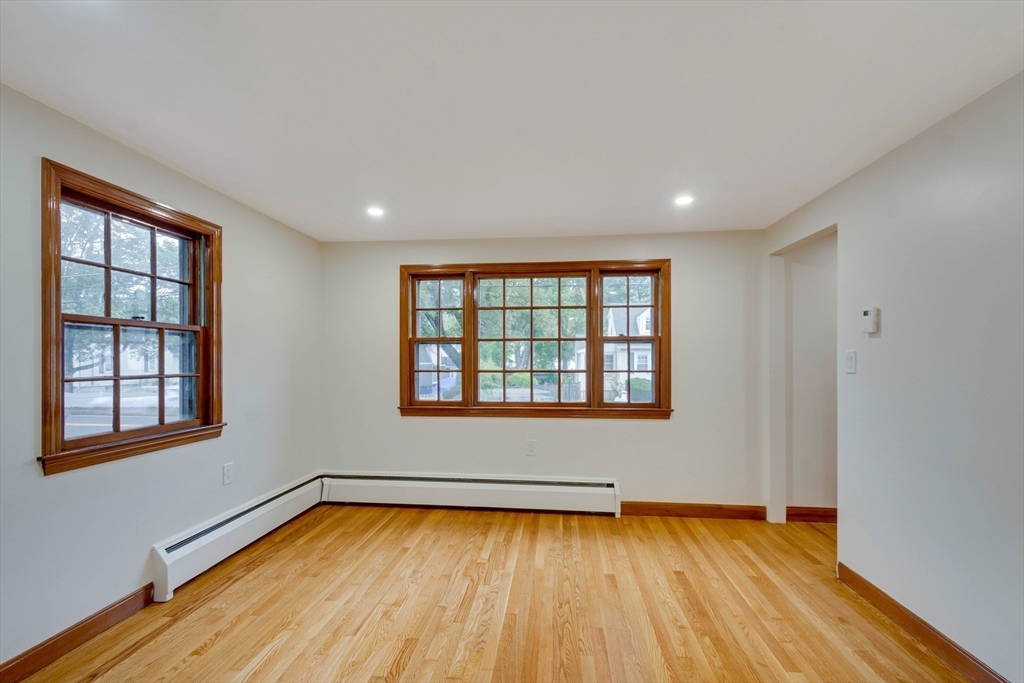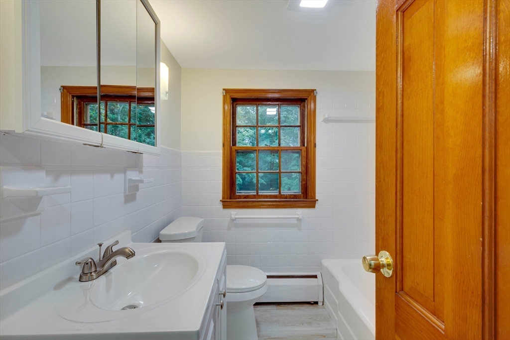 Renovated cape steps to town center w/large private yard and separate garage! This property combines character with modern features. Impressive hardwood floors, crown molding, built-in cabinets & drawers & window seats. First level showcases an eat-in-kitchen w/new SS appliances & countertops and deep pantry, front to back fireplaced living room, dining room w/built-in cabinets, half bath & new 120 sq.ft. sunroom overlooking large private yard. Main bedroom is front to back with built-in drawers & window seat. Two add'l cozy bedrooms w/built-ins. Renovated full bath. LL has ample storage and w/high ceilings and is ready for gym & family rm. New kitchen & bath floors, refinished hardwood floors & recessed lights. Freshly painted inside & out. New roof. This warm and inviting home is bright and airy with an ideal flow for both living and entertaining. $120K+ in recent updates! Garage & ample parking. Enjoy stroll to center's shops or commuter/bus stop. Minute ride to Rte 95 and shopping!