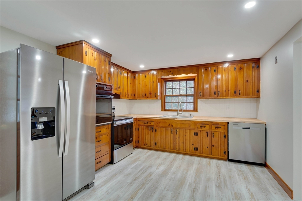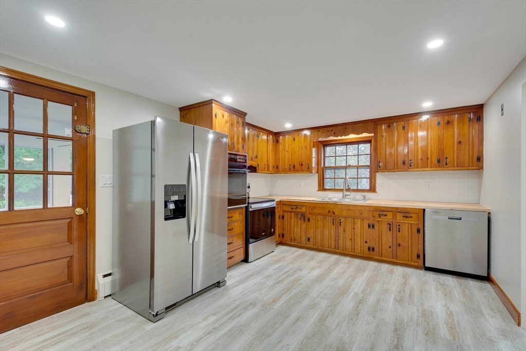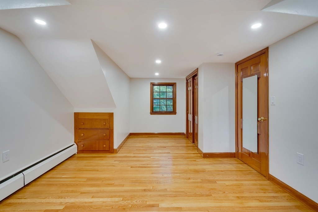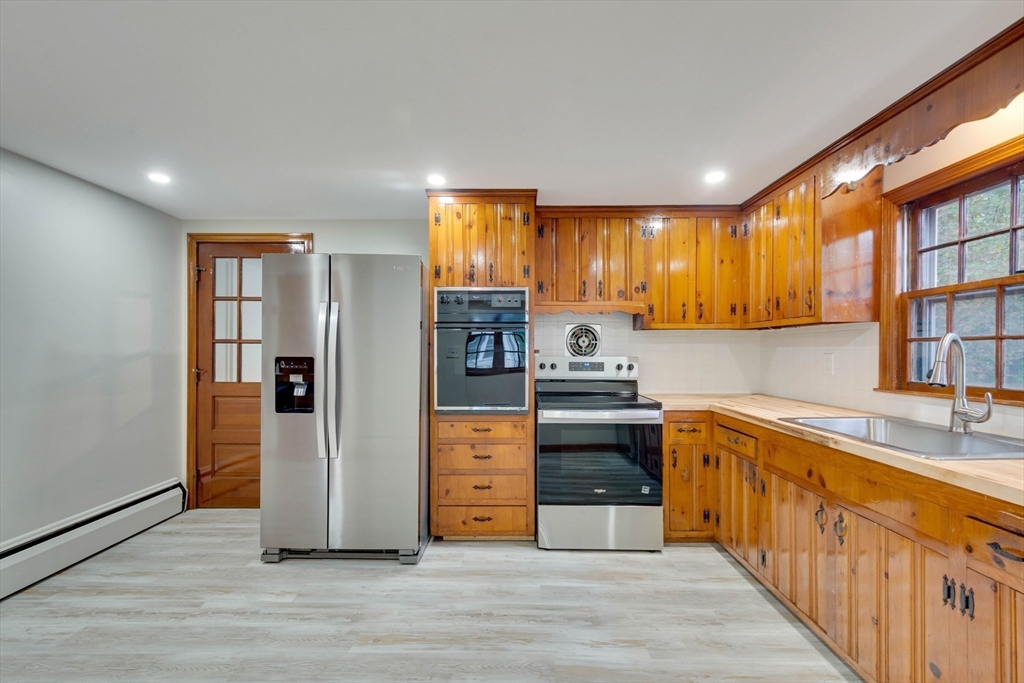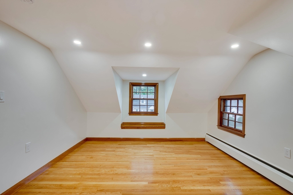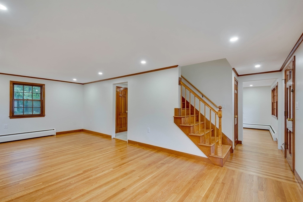 Renovated cape steps to town center w/large private yard and separate garage! This property combines character with modern features. Impressive hardwood floors, crown molding, built-in cabinets & drawers & window seats. First level showcases an eat-in-kitchen w/new SS appliances & countertops and deep pantry, front to back fireplaced living room, dining room w/built-in cabinets, half bath & new 120 sq.ft. sunroom overlooking large private yard. Main bedroom is front to back with built-in drawers & window seat. Two add'l cozy bedrooms w/built-ins. Renovated full bath. LL has ample storage and w/high ceilings and is ready for gym & family rm. New kitchen & bath floors, refinished hardwood floors & recessed lights. Freshly painted inside & out. New roof. This warm and inviting home is bright and airy with an ideal flow for both living and entertaining. $120K+ in recent updates! Garage & ample parking. Enjoy stroll to center's shops or commuter/bus stop. Minute ride to Rte 95 and shopping!