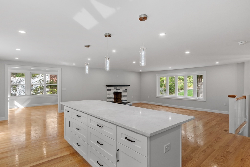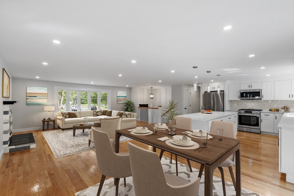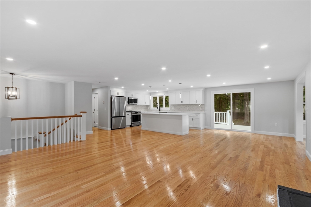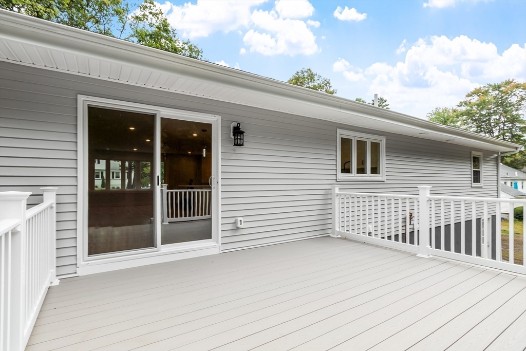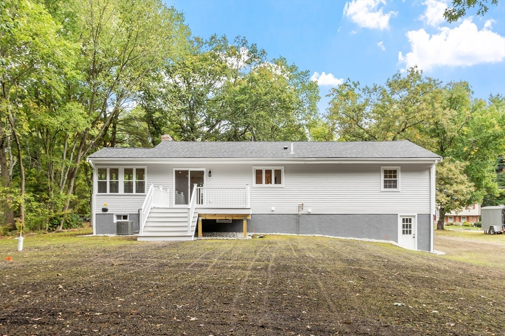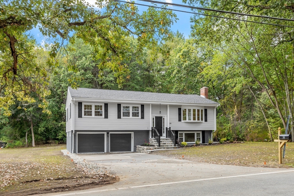 Discover this beautifully renovated raised ranch-style home, perfectly designed for modern living. This 3-bedroom, 3-bath residence sits on a spacious 1-acre lot & offers an open concept kitchen/dining/ living area that flows seamlessly into a sunlit sunroom. The gourmet quartz kitchen features a generous island, recessed lighting & stainless steel appliances, setting the stage for effortless entertaining. Hardwood floors span the first floor leading to a private main suite complete with a 3/4 bath & walk-in closet. A finished basement adds valuable living space, including a full bath, laundry, a welcoming living area, & an office space. Additional highlights include a 2-car garage, a large backyard with a deck, sprinkler system & professional landscaping. This home has undergone extensive updates, including a new septic, roof, siding, furnace/AC, & all interior finishes, ensuring peace of mind for years to come. Excellent commuter location with access to 93 and commuter rail.