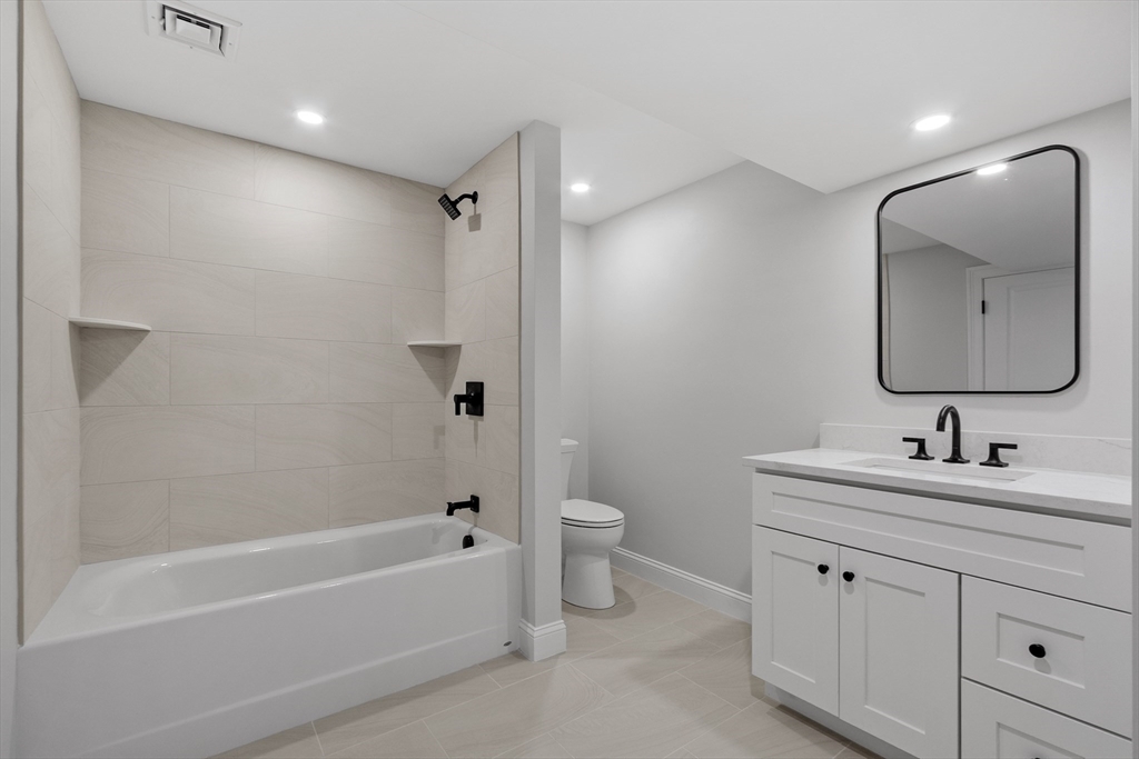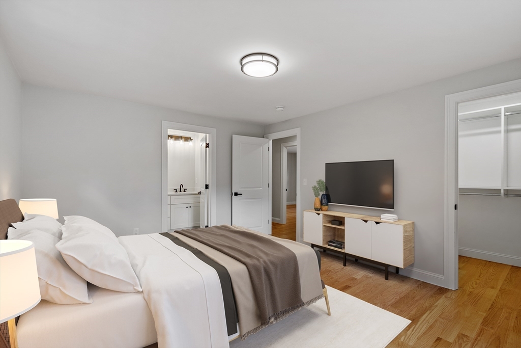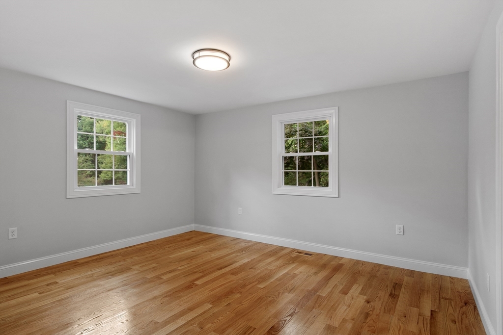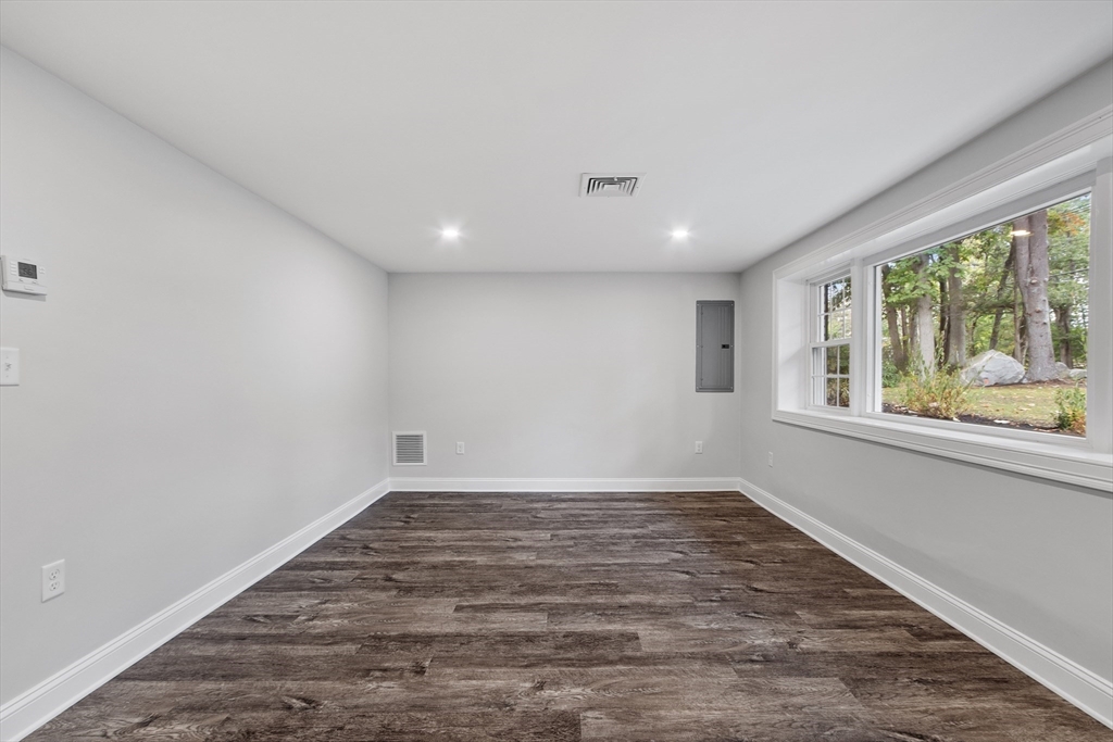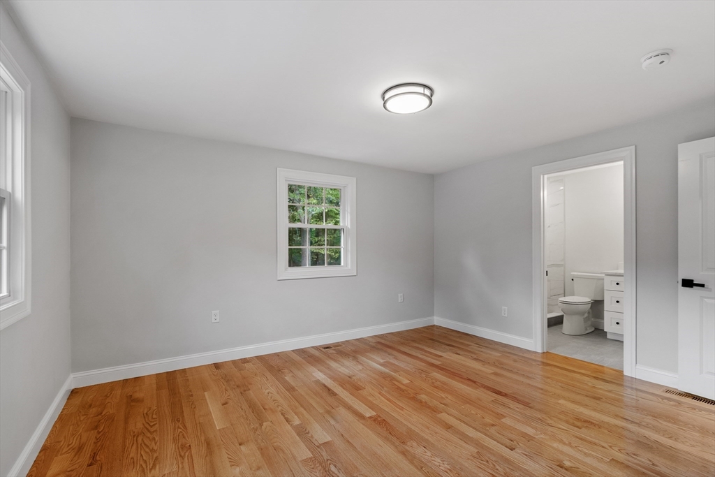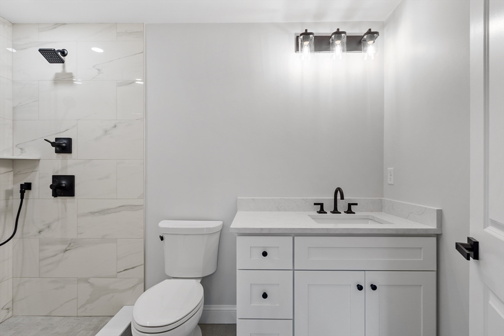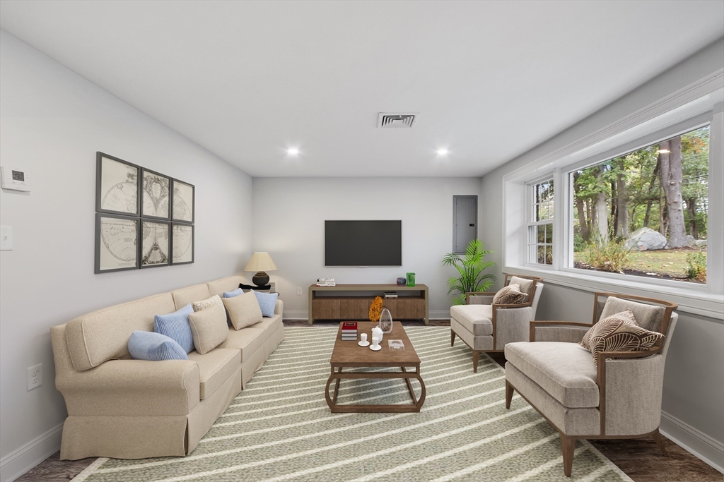 Discover this beautifully renovated raised ranch-style home, perfectly designed for modern living. This 3-bedroom, 3-bath residence sits on a spacious 1-acre lot & offers an open concept kitchen/dining/ living area that flows seamlessly into a sunlit sunroom. The gourmet quartz kitchen features a generous island, recessed lighting & stainless steel appliances, setting the stage for effortless entertaining. Hardwood floors span the first floor leading to a private main suite complete with a 3/4 bath & walk-in closet. A finished basement adds valuable living space, including a full bath, laundry, a welcoming living area, & an office space. Additional highlights include a 2-car garage, a large backyard with a deck, sprinkler system & professional landscaping. This home has undergone extensive updates, including a new septic, roof, siding, furnace/AC, & all interior finishes, ensuring peace of mind for years to come. Excellent commuter location with access to 93 and commuter rail.