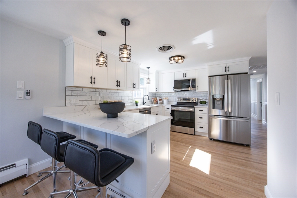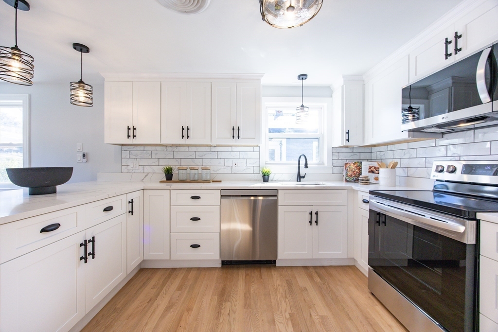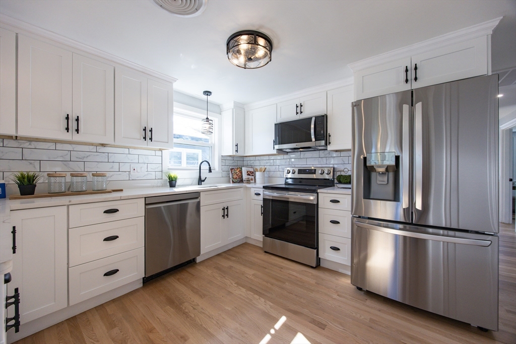 A unique opportunity awaits in this newly renovated property with just a completed separate entrance ADU option. Utilize the entire home or take advantage of the perfect setup for a family member seeking privacy or to pick up extra income. Main level features three generous bedrooms, all new full bath, gleaming stainless steel LG kitchen, an amazingly bright living room, and dining room that opens to a new deck perfect for entertaining. Level one boasts a large family room, bedroom, bath, and kitchen with dining area. Central air, wi-fi enabled ductless systems, and traditional oil heat, will provide options for that perfect high efficiency temperature. Laundry hook-ups on both floors, ample closet space, fenced backyard, garage under, all new utilities, and 200 amp service, enhance the value. Convenient to public transportation with easy access to Rte 93, the 128/95 belt, Middlesex Fells, Wright’s Pond and the newly renovated Carr Park.