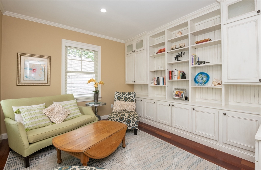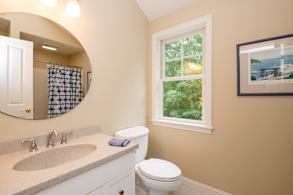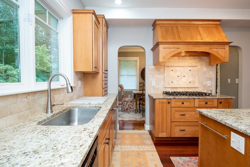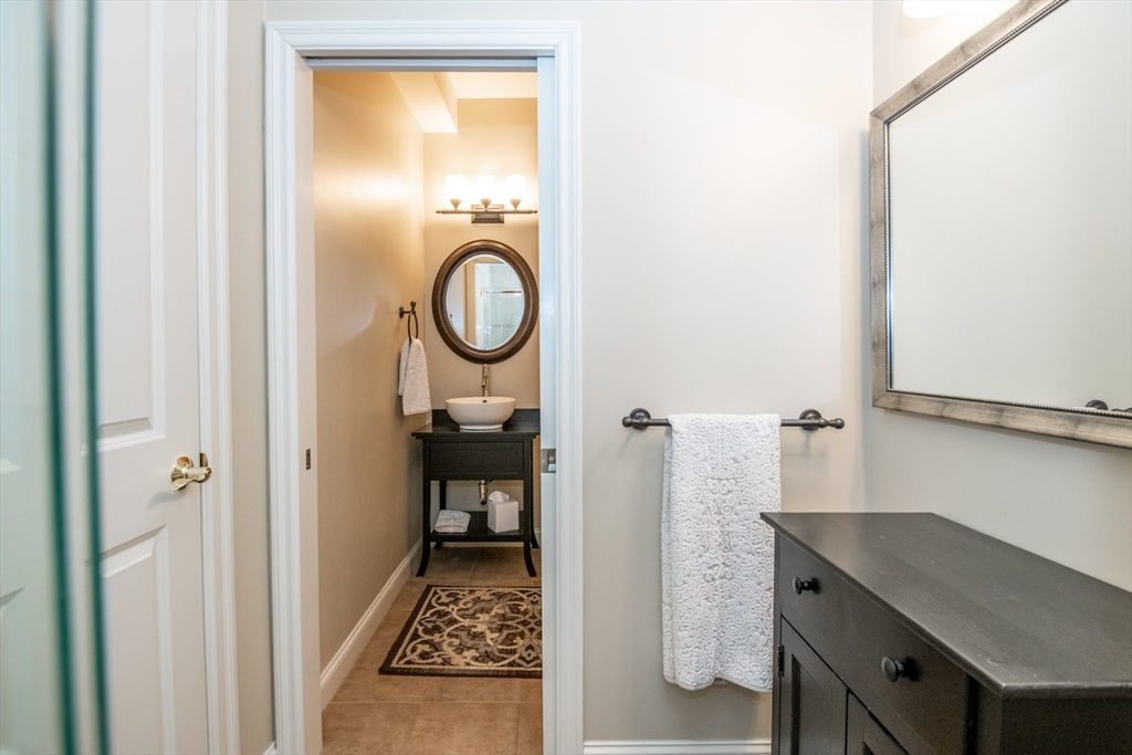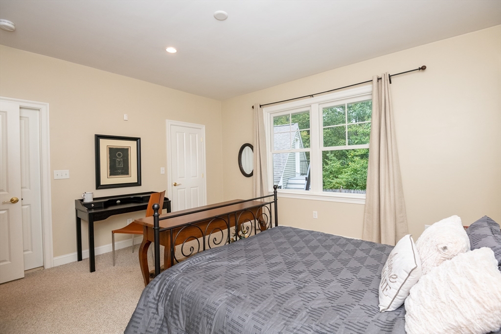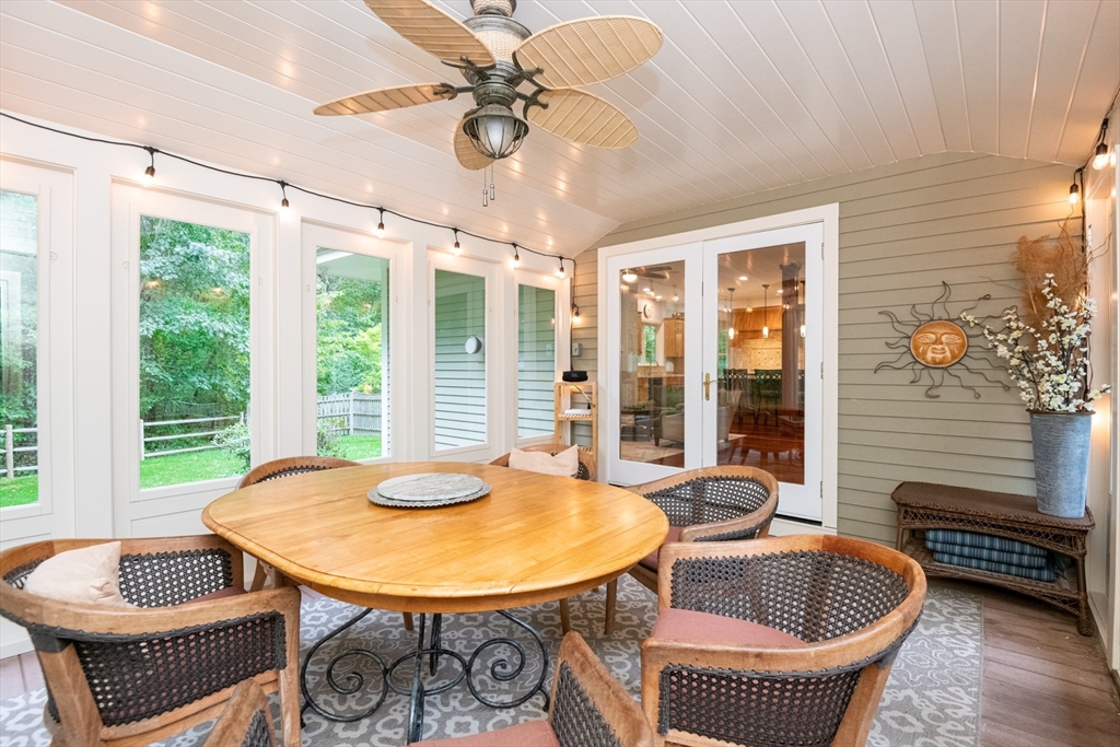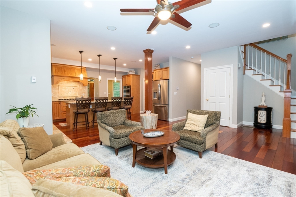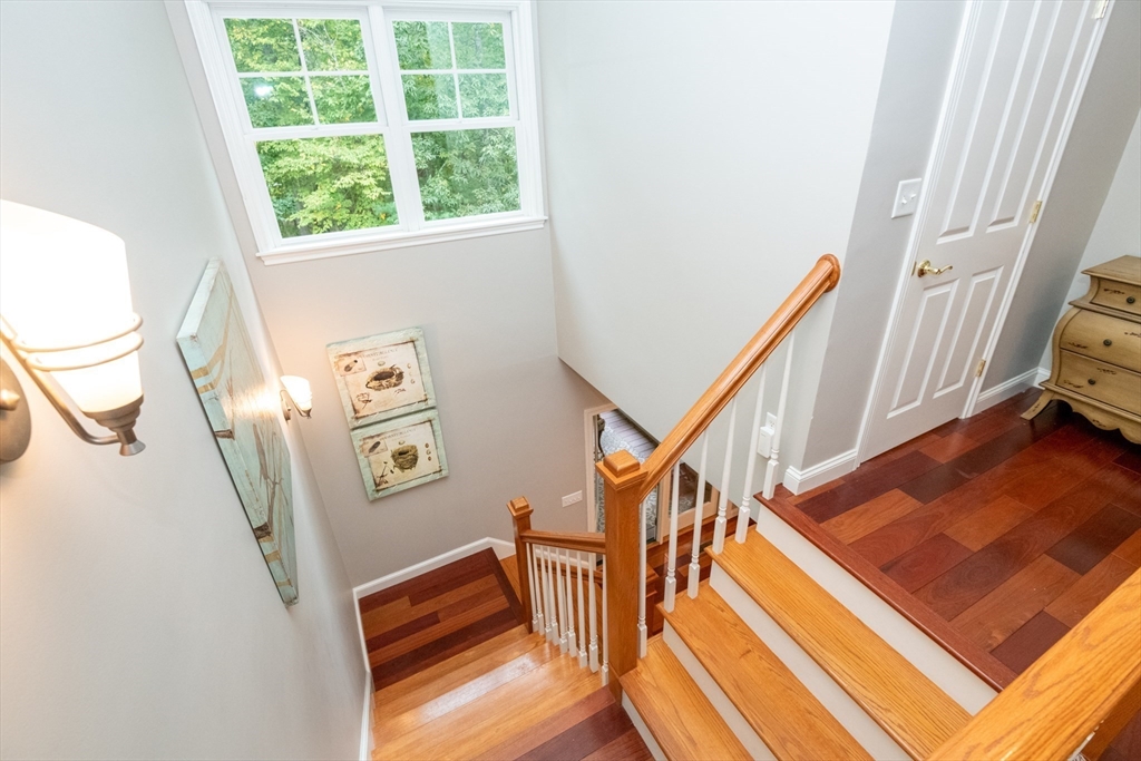 Custom-built Craftsman home set proudly on a 1.53-acre lot in desirable East Boxford. This beautifully designed home features 9-foot ceilings on the main level and a welcoming foyer with stone flooring. A versatile den/office, featuring custom cabinetry, is complemented by a main-level bedroom and full bath, offering flexible living options. The formal dining room, highlighted by Brazilian cherry wood flooring, flows seamlessly into the open concept kitchen and living room. The kitchen boasts a granite island with a six-burner Viking gas stove and stainless steel appliances. The living room is anchored by a stone fireplace with custom-built cabinetry, while the adjoining 3-season room extends the home's entertaining space. Upstairs, three en-suite bedrooms with soaring 11-foot ceilings are complemented by a cozy reading nook and a convenient laundry room. The primary suite includes a luxurious bath with a steam walk-in shower and soaking tub. The lower level is an ideal game room.