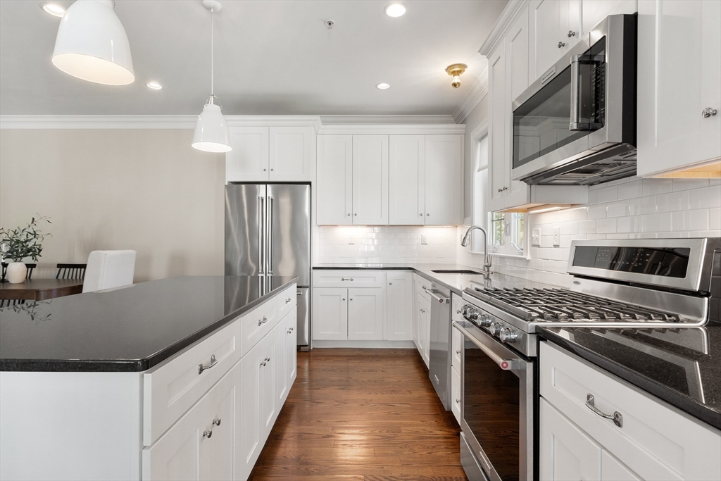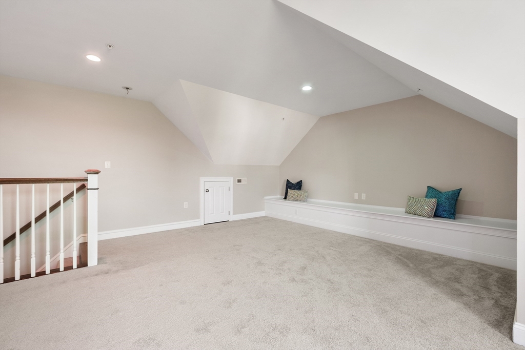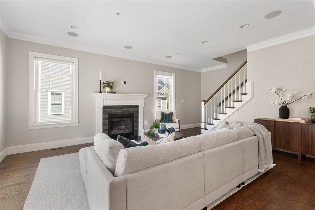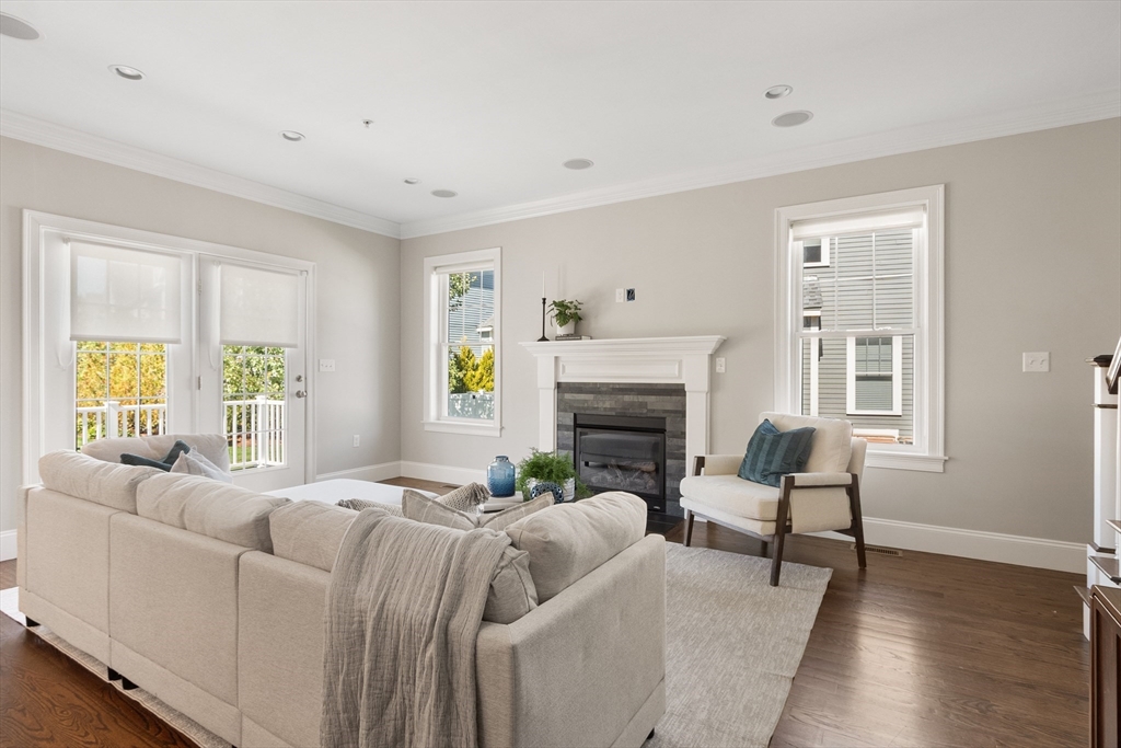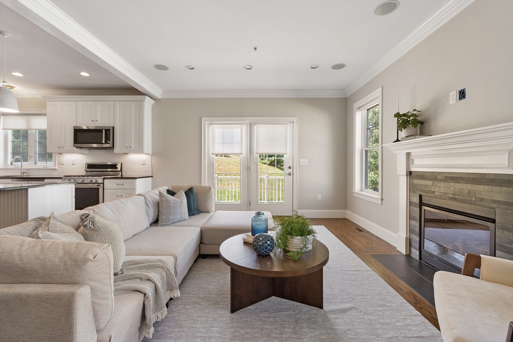 This stunning contemporary townhouse in the sought after Clarks Hill Village community offers a sun drenched open-concept layout creating an inviting flow for everyday living & entertaining. The center island chef’s kitchen comes well-appointed w/gas cooktop, stone counters, stainless appliances & generous dining area flowing seamlessly into the spacious family room w/cozy gas fireplace where family & friends can comfortably gather. Sliders open to a composite deck offering views of the private & tranquil backyard. Unwind in the dreamy primary bedroom suite w/custom walk-in closet, indulgent spa bath & versatile 3rd floor bonus space. 2 additional bedrooms & full bath complete the 2nd level. A finished lower level offers versatile living spaces to meet evolving needs. Enjoy this convenient location near shopping, restaurants, commuter routes, public transportation & vibrant downtown Framingham!
