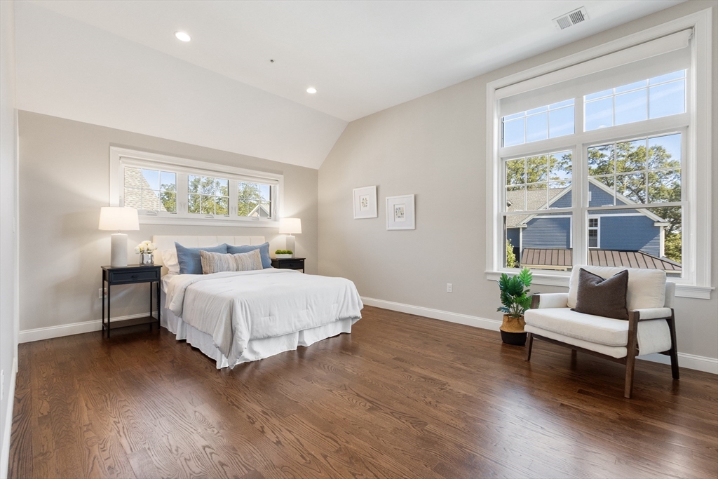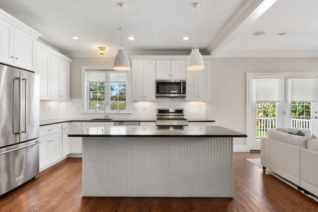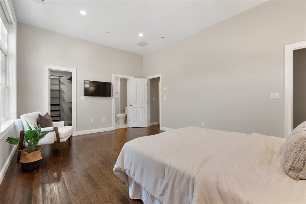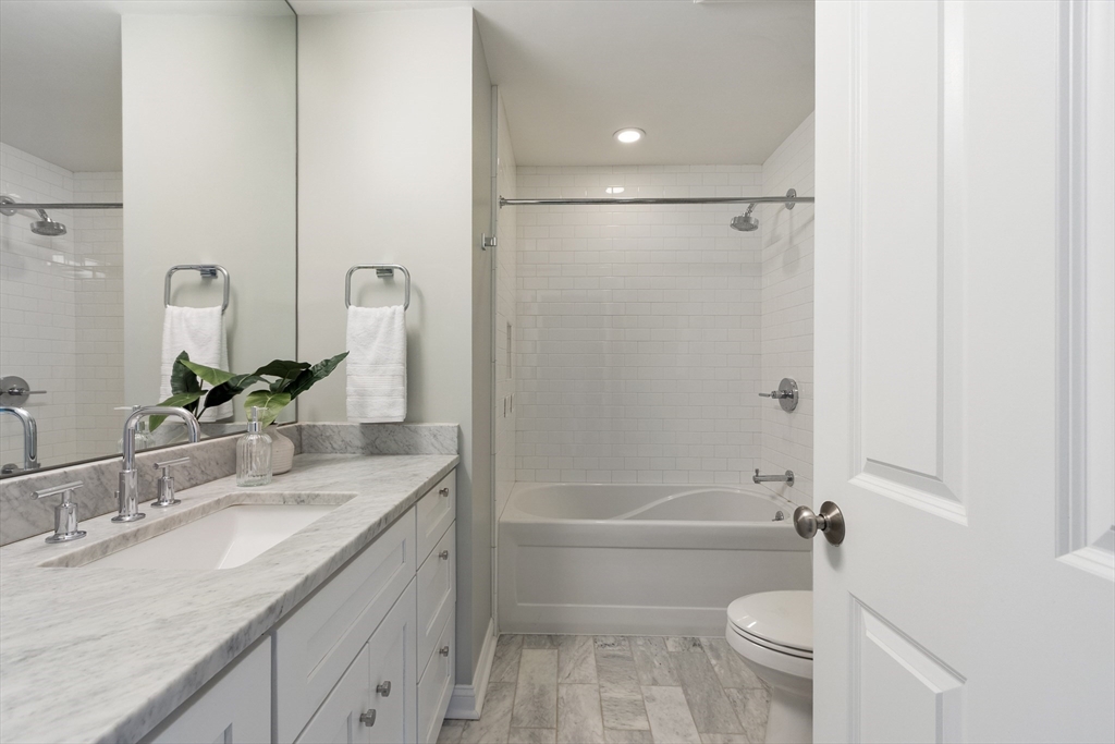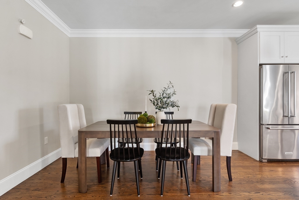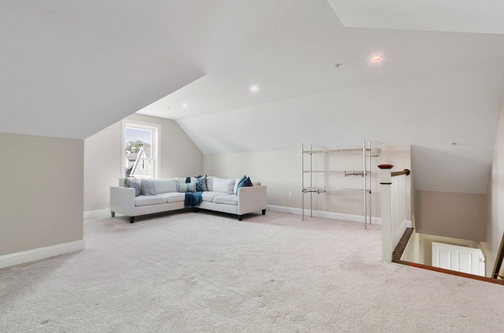 This stunning contemporary townhouse in the sought after Clarks Hill Village community offers a sun drenched open-concept layout creating an inviting flow for everyday living & entertaining. The center island chef’s kitchen comes well-appointed w/gas cooktop, stone counters, stainless appliances & generous dining area flowing seamlessly into the spacious family room w/cozy gas fireplace where family & friends can comfortably gather. Sliders open to a composite deck offering views of the private & tranquil backyard. Unwind in the dreamy primary bedroom suite w/custom walk-in closet, indulgent spa bath & versatile 3rd floor bonus space. 2 additional bedrooms & full bath complete the 2nd level. A finished lower level offers versatile living spaces to meet evolving needs. Enjoy this convenient location near shopping, restaurants, commuter routes, public transportation & vibrant downtown Framingham!