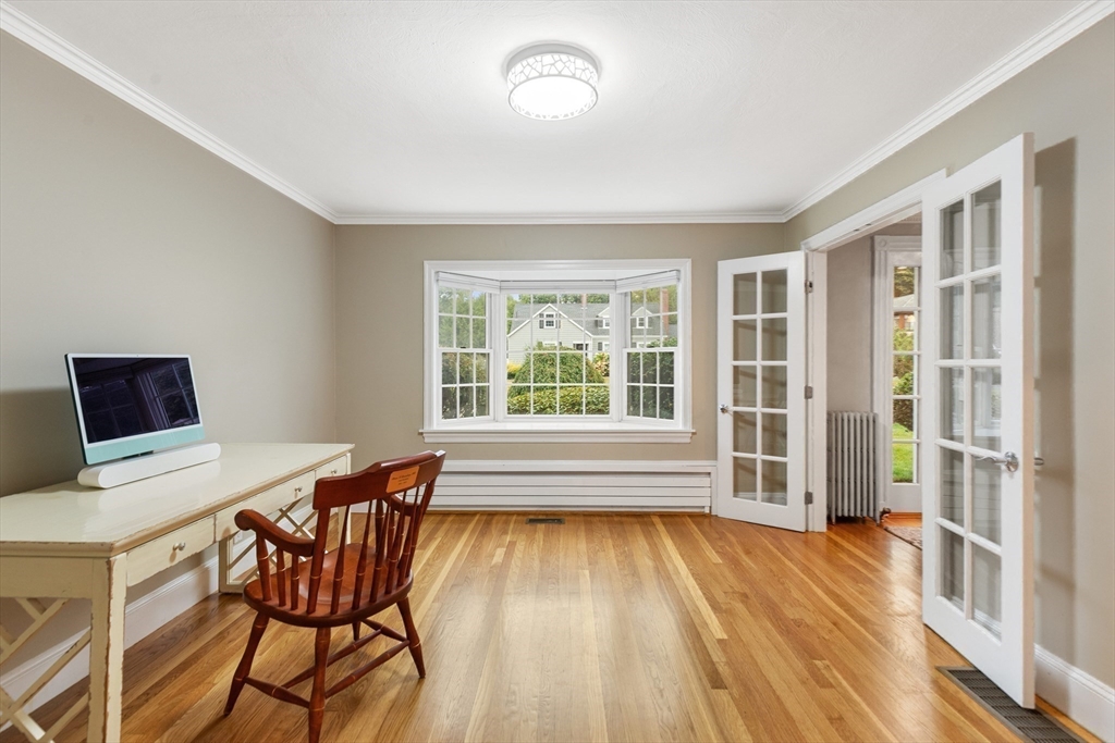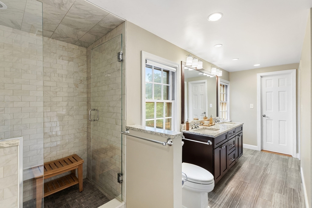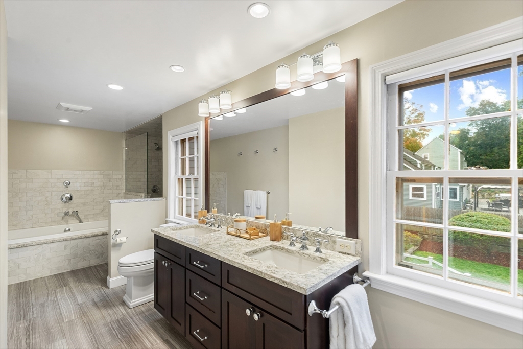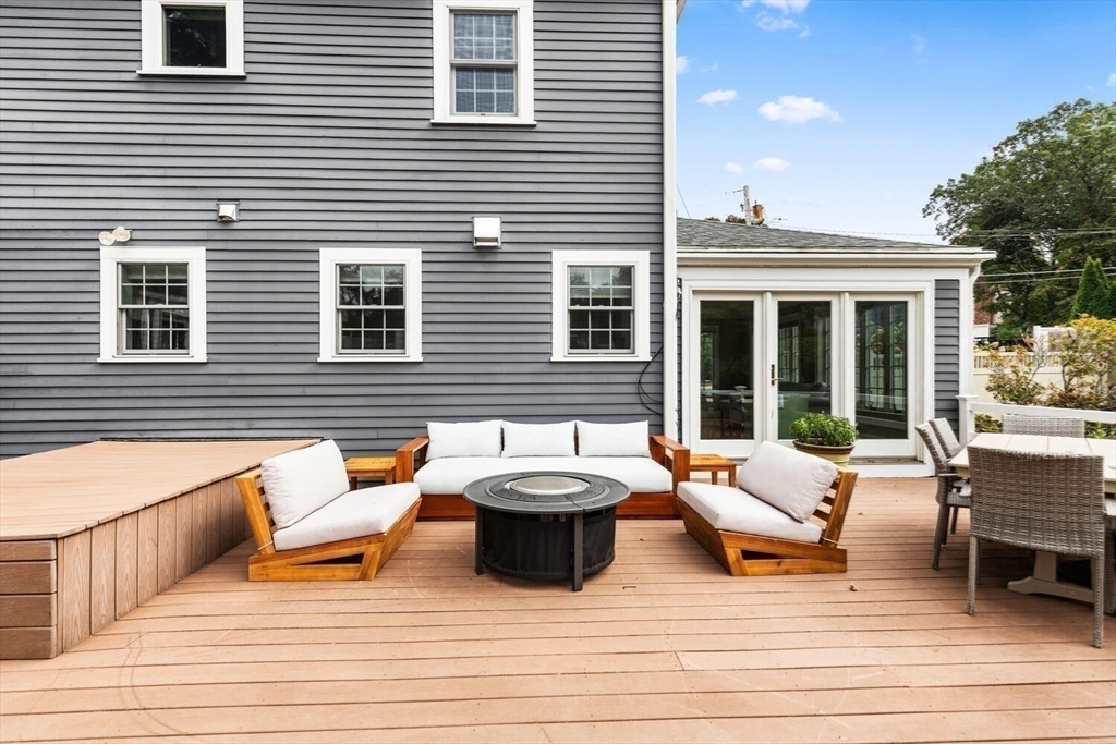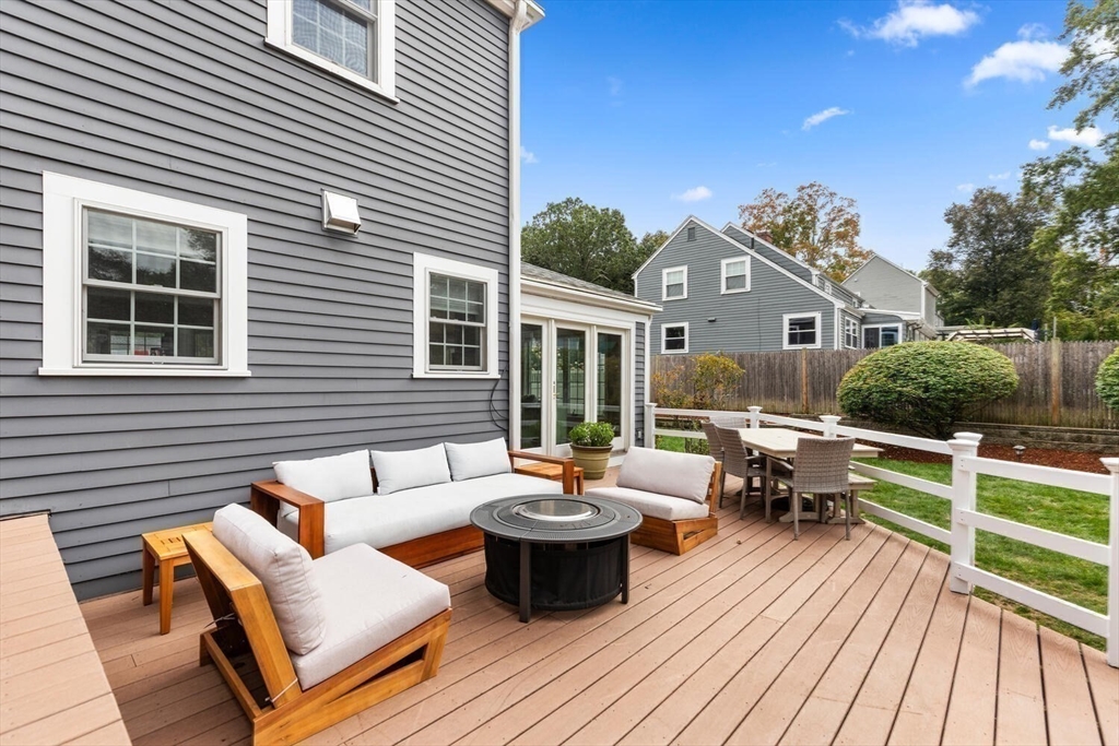 This stunning 4-bedroom Center Entrance Colonial in the desirable Ambrose School District has been beautifully updated for modern living. A complete first-floor renovation features a reimagined layout with a custom-designed kitchen boasting Thermador and Bosch appliances, marble and quartzite counters, walk-in pantry, and a bar w/ beverage fridge. Spacious, light-filled rooms showcase gleaming hardwood floors, three fireplaces, and two staircases, blending timeless character with today’s style. The inviting living room w/ stone fireplace opens through French doors to a Trex deck & expansive backyard, perfect for entertaining. The primary suite offers vaulted ceilings, walk-in closet, & spa-like bath w/ soaking tub & walk-in shower. Additional highlights include central air, mudroom off 2-car garage, updated baths, & enhanced insulation throughout. Conveniently located near Winchester Center & the train station, this move-in ready home offers comfort, elegance, and everyday convenience!