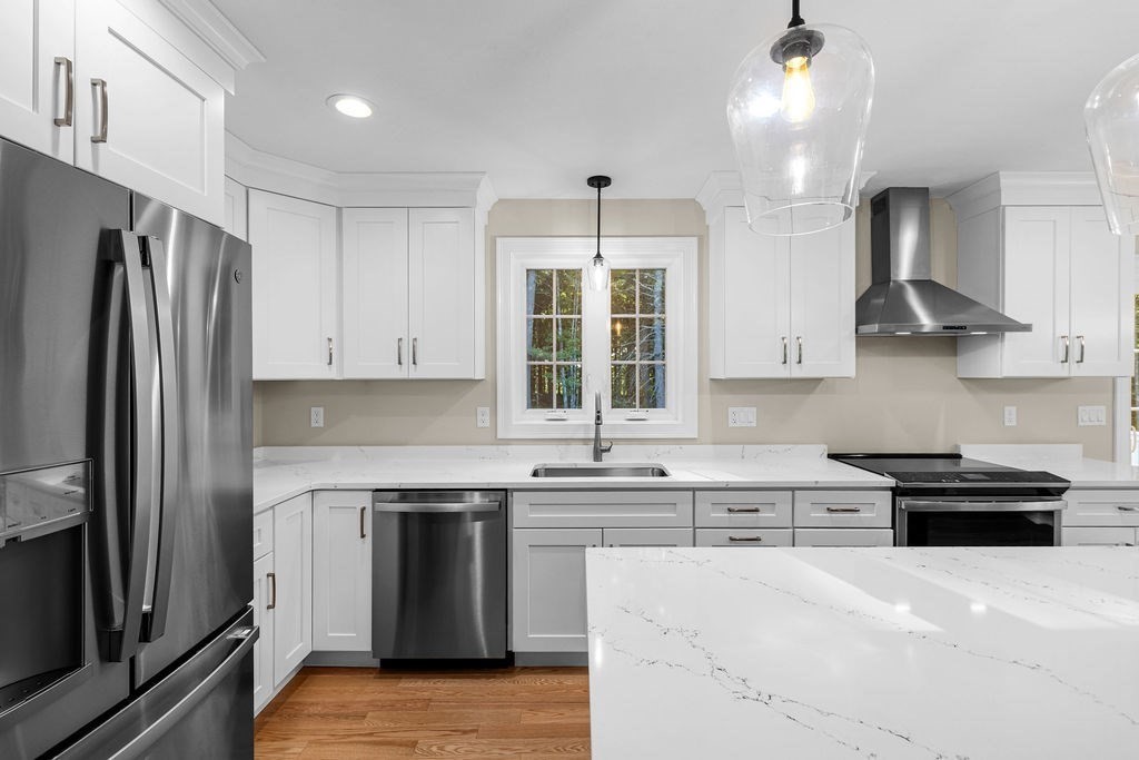 Nestled on a quiet street in the sought-after Town of Berkley, this newly constructed 3-bedroom, 2.5-bath home blends style, comfort, and convenience. An open floor plan, living room with fireplace, abundant natural light, and gleaming wood floors throughout create an inviting atmosphere perfect for entertaining and everyday living. The heart of the home is the contemporary white kitchen, featuring stainless steel appliances, marble countertops, and a spacious island. Upstairs, the primary suite offers a Walk-in closet, Full bath with double vanities, accompanied by two additional bedrooms all with hardwood floors, a full common bath. This home is on a 1.5 acre lot offering plenty of privacy.