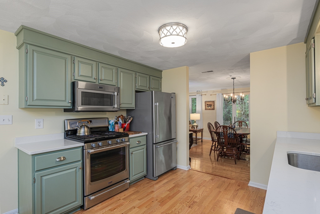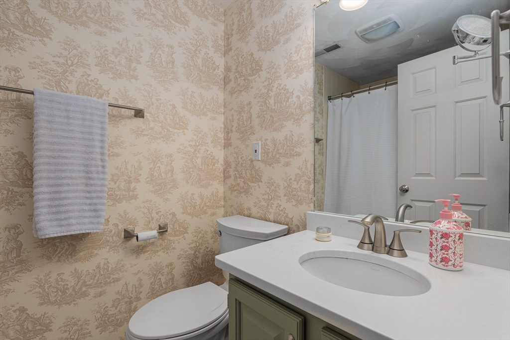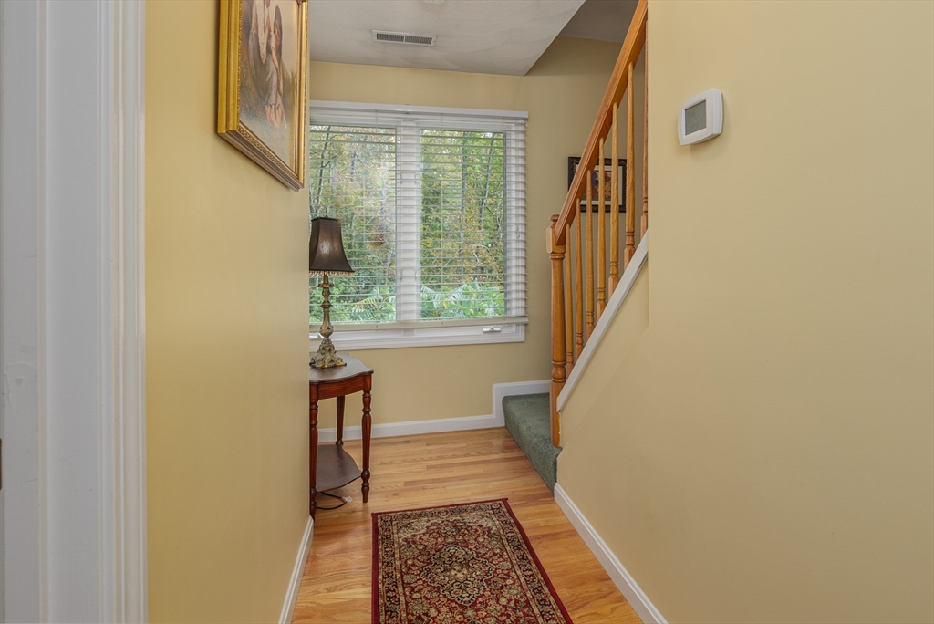 Welcome to 38 Brickett Hill Circle, this meticulously maintained home has 6 rooms, 2-3 bedrooms, 2.5 baths, 1 car garage. This 3 level townhouse is nestled in the serene and sought after Village at Brickett Hill. This home offers a harmonious blend of comfort, style and community amenities. The first floor greets you with a gorgeous updated kitchen and SS appliances, large dining room open to fireplaced living room with sliders to private patio surrounded by trees and lush landscaping. The first floor is complete with 1/2 bath and laundry. The second floor offers 2 bedrooms, the expansive primary suite has a walk in closet and full bath, the second bedroom and guest bath complete the second floor. The bonus is the huge third floor which can be a family room, office, media room, or all 3! Enjoy living at the Village of Brickett Hill where you can forget about exterior maintenance, shoveling & landscaping, instead you can enjoy the pool, clubhouse & tennis! Close to NH shopping,495