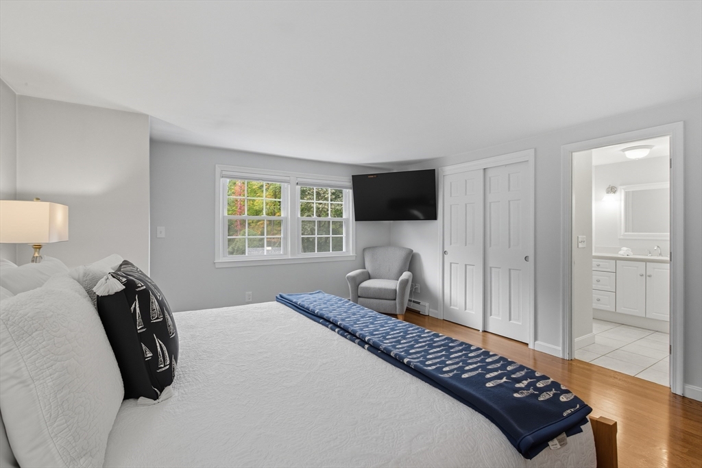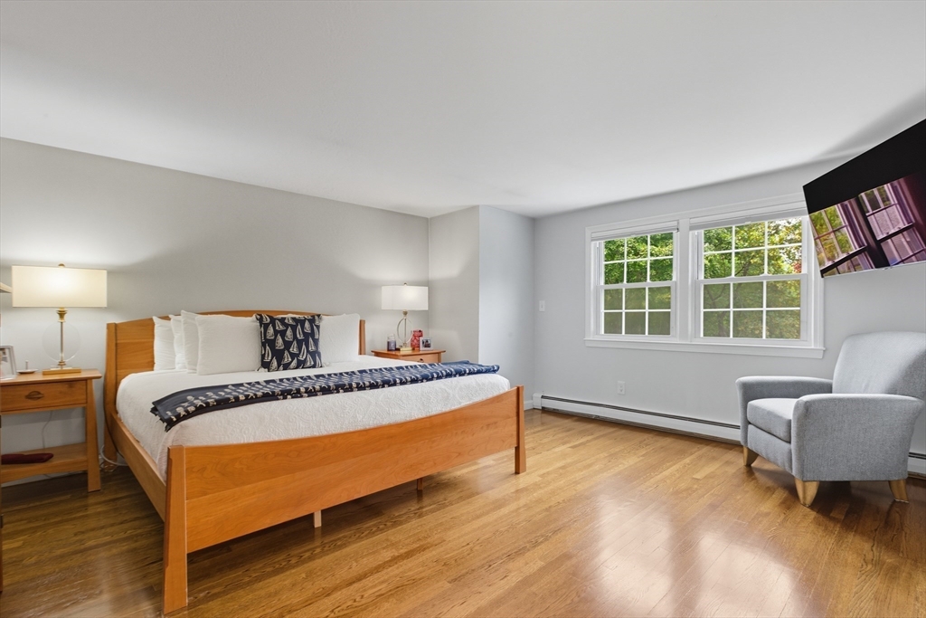 Ipswich River Access with a neighborhood dock association! Beautiful 4 bedroom, 2.5 bath home nestled on a private lot in a coveted cul-de-sac neighborhood. Peaceful setting yet convenient to Town Wharf, Pavilion and Crane Beaches. Some recent enhancements include new hardwood flooring, fresh interior paint, custom draperies, a new heating system, Reeds Ferry Shed, and gutters. Wonderful open floor plan with generous sized rooms perfect for entertaining and hosting large gatherings. Charming, fireplaced family room that leads to a screened porch. There are 4 bedrooms on the second level, including a primary bedroom with an en suite bathroom. Partially finished lower level for a playroom or home office. Great closets and storage throughout the property. Attached 2 Car Garage. This property is a natural beauty in a highly sought after location on the banks of the Ipswich River.