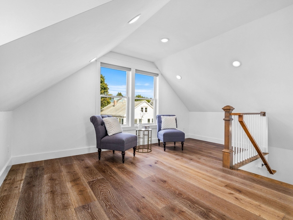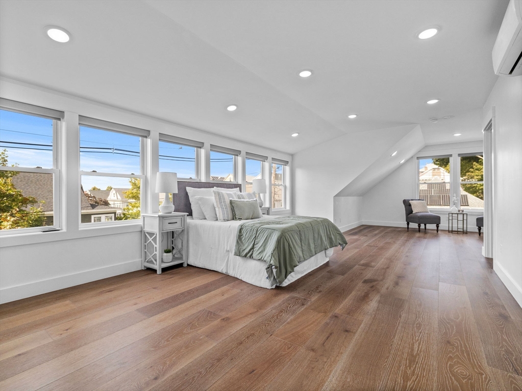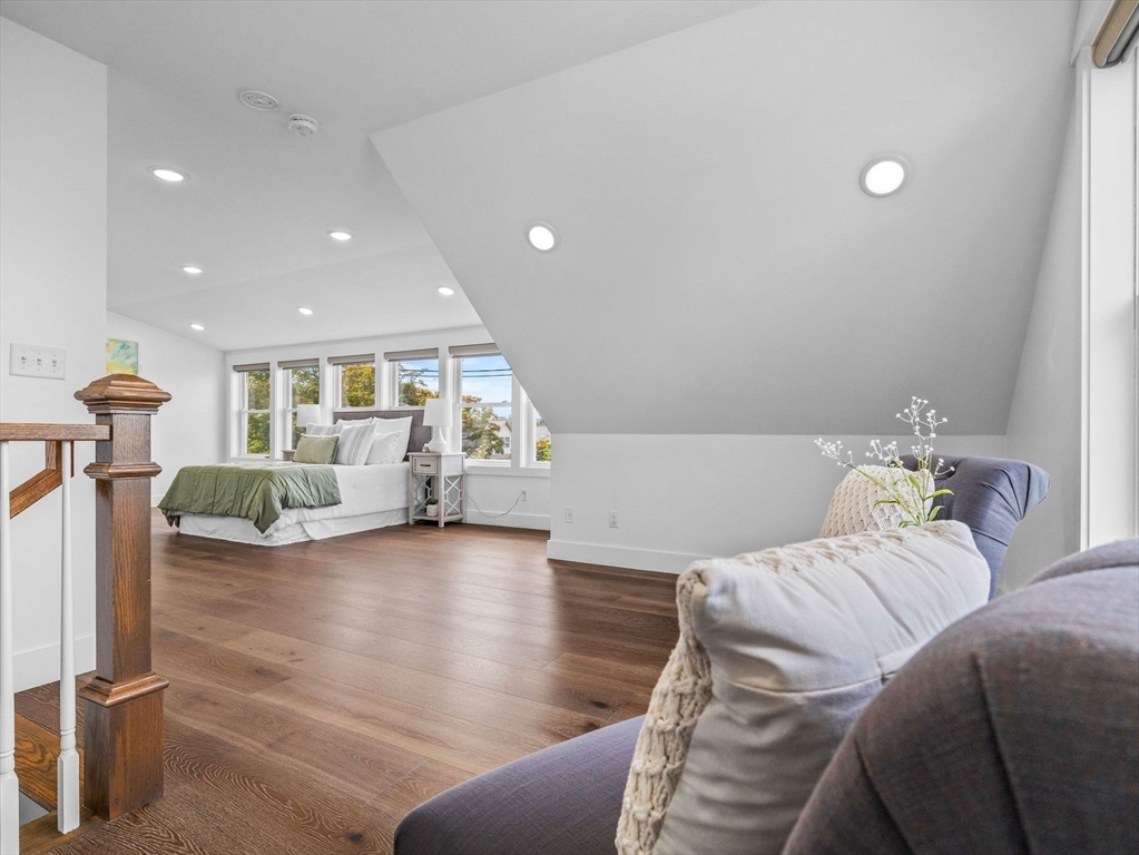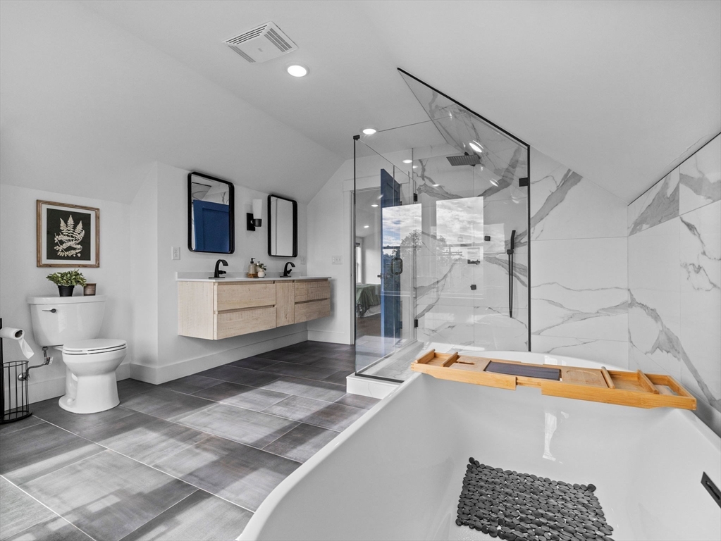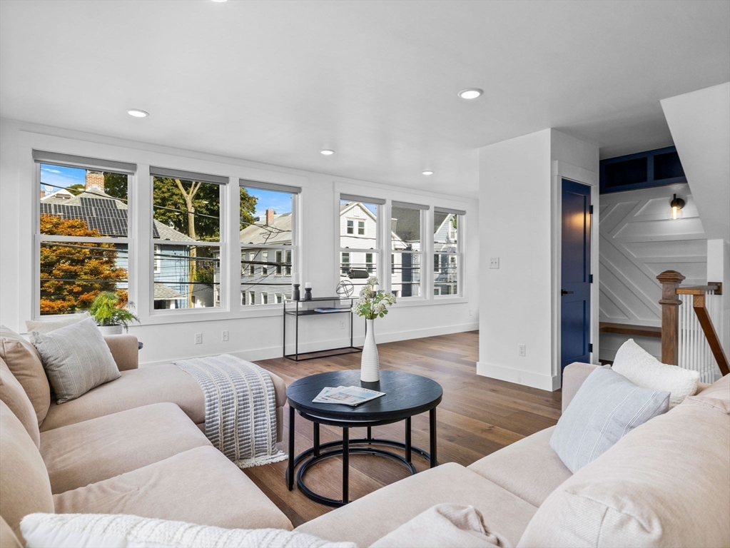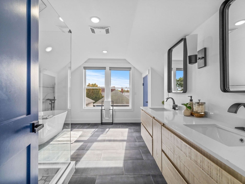 Nestled on a corner lot in one of Somerville’s most convenient neighborhoods, this sun-filled 3 bed, 2.5 bath penthouse condo spans two levels and lives like a single-family home. The main floor features a chef’s kitchen with custom cabinetry, stainless steel appliances, a large island, and gas range, flowing into a bright living and dining area perfect for entertaining. Off of the kitchen, enjoy a coffee on your private deck, or make use of the 2 bedrooms, shared bath, and oversized laundry room with washer/dryer. Upstairs, the primary suite spans the length of the floor with custom-finished windows to give the bedroom a "tree-house" like feel. Enjoy a spa-like en suite with double vanity & soaking tub, plus a large his & her's walk-in closet and bonus sitting area. Fenced-in yard and landscaping finish off the exterior. One off-street parking spot included in sale. Easy access to I-93, I-95, Assembly Row, restaurants, river trails, grocery stores, and MBTA.