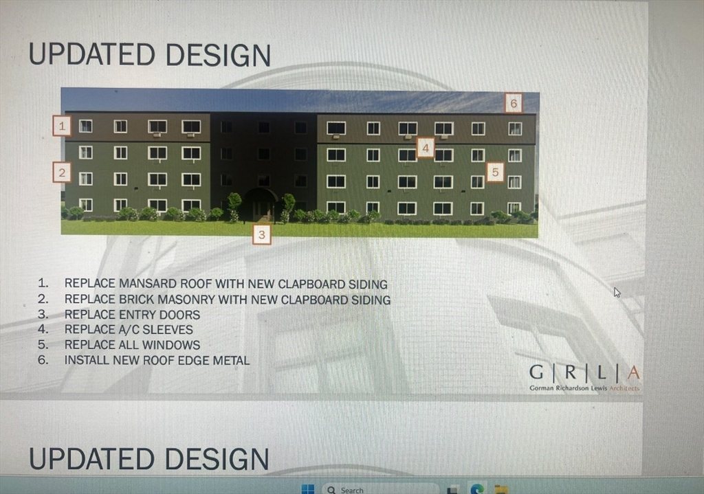 Bright 3rd-Floor Front-Facing Condo with Modern Upgrades. This sun-filled unit offers comfort and convenience with heat included in the condo fee. Inside, you’ll find ceiling fans, air conditioning, stainless steel appliances, granite countertops, and tile flooring in both the kitchen and bath. The building features an elevator, on-site laundry, and a courtyard pool for residents to enjoy. Exciting updates are underway: the entire complex is being resided and all windows replaced. A rendering of the finished renovation is included with the property photos. Best of all, the assessment has already been paid in full, so the new owner will benefit from the upgrades and the anticipated property appreciation.