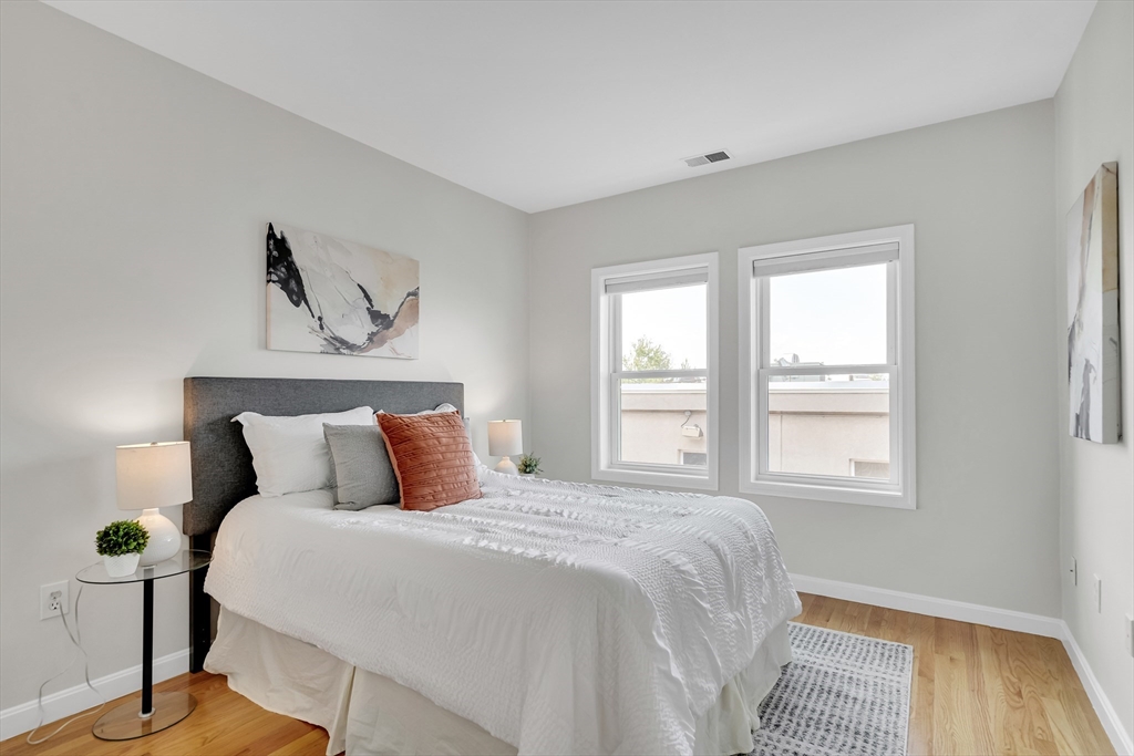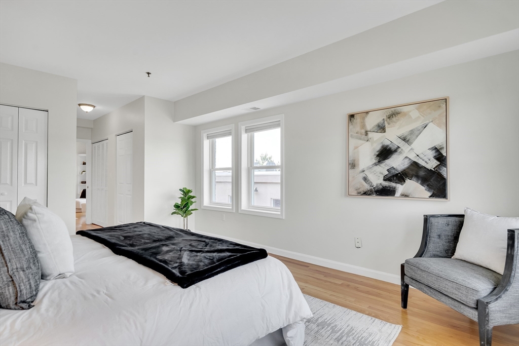 ---MOTIVATED SELLERS! $6000 CLOSING CREDIT FROM SELLERS! ---Welcome home to this beautiful corner penthouse residence conveniently situated at a prime location in Cambridge. Located in a charming red brick elevator building built in 1990, this well-maintained unit has been the owner's primary residence over the last 10 years. It boasts an open floor concept for comfortable living, two spacious bedrooms with tons of sunlight and two elegantly designed bathrooms. The kitchen outfits stainless steel appliances, attractive wood cabinetry and beautiful marble countertops. The hardwood floors throughout the living room, dining room and bedrooms give this residence a touch of warmth and elegance. And more, energy efficient windows with light blocking cellular shades, two garage parking spaces, in-unit laundry, central HVAC, two storage cages, common bike storage, and shared outdoor patio area. Bus stop to Harvard Sq. is right by the building. 0.5 miles to Davis Sq., 0.5 miles to Porter Sq.
