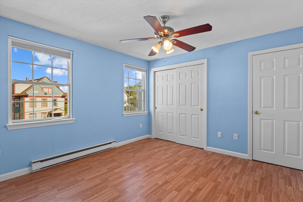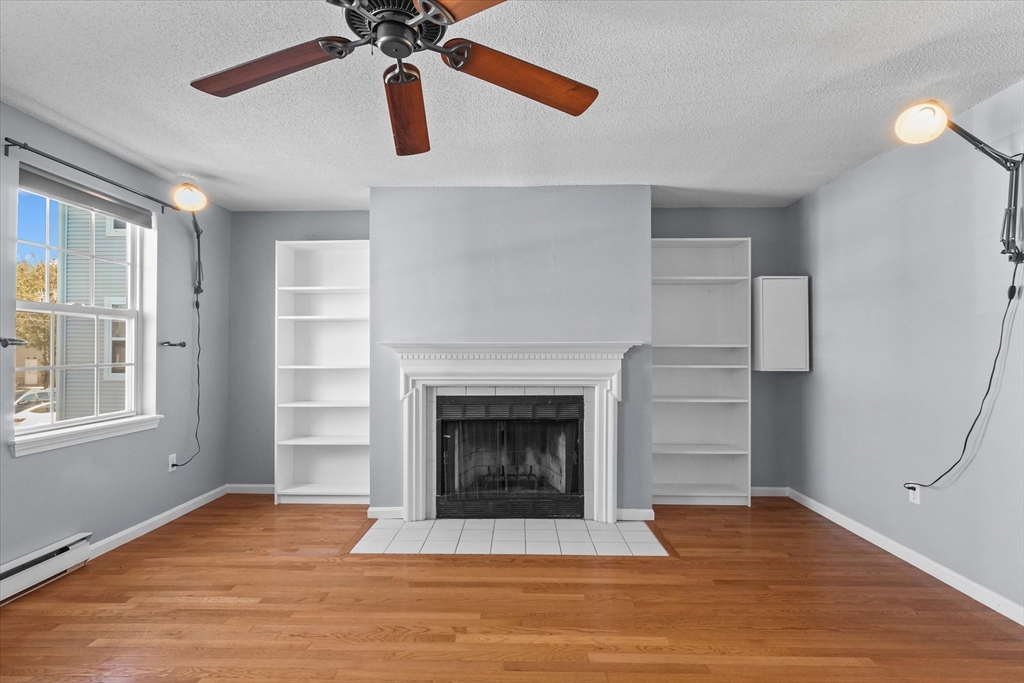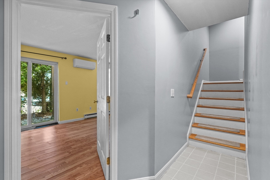 Adorable townhouse style middle unit in this well maintained 4-unit complex in the heart of Worcester! Featuring 3 levels of living space, this condo is perfectly situated with easy access to major highways & local amenities. Lower level entryway is set up like mudroom with access to attached one car garage & finished spacious lower level, ideal for a home office or guest room complete with direct access to a private, fenced backyard. On the main level, enjoy a bright and airy living room featuring updated flooring, built in cabinets, and a cozy fireplace. Just down the hall, the dining area opens to a private balcony, ideal for morning coffee or evening relaxation, and flows seamlessly into a well-appointed kitchen. Main level also features large full bath with shower. Upstairs, you'll find two generously sized bedrooms and a convenient Hollywood-style bathroom. Many updates throughout this lovely home including mini split systems, newer windows and flooring!