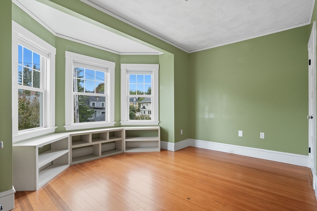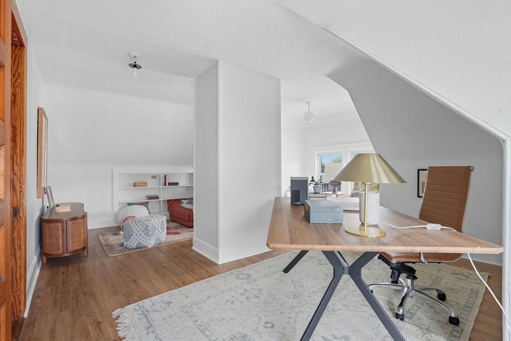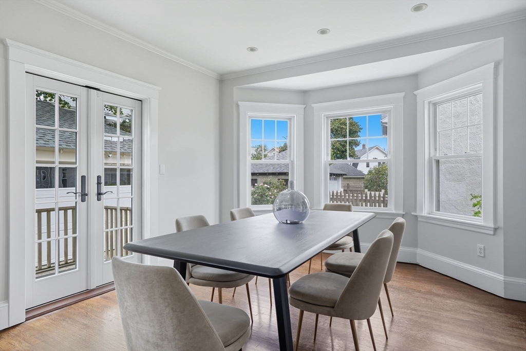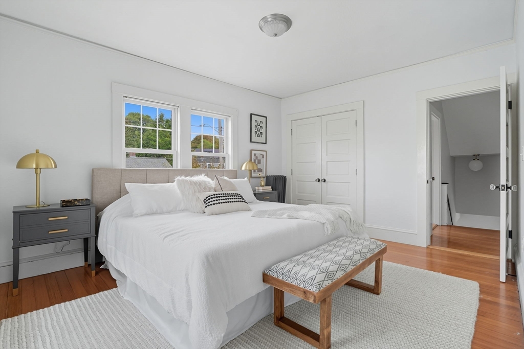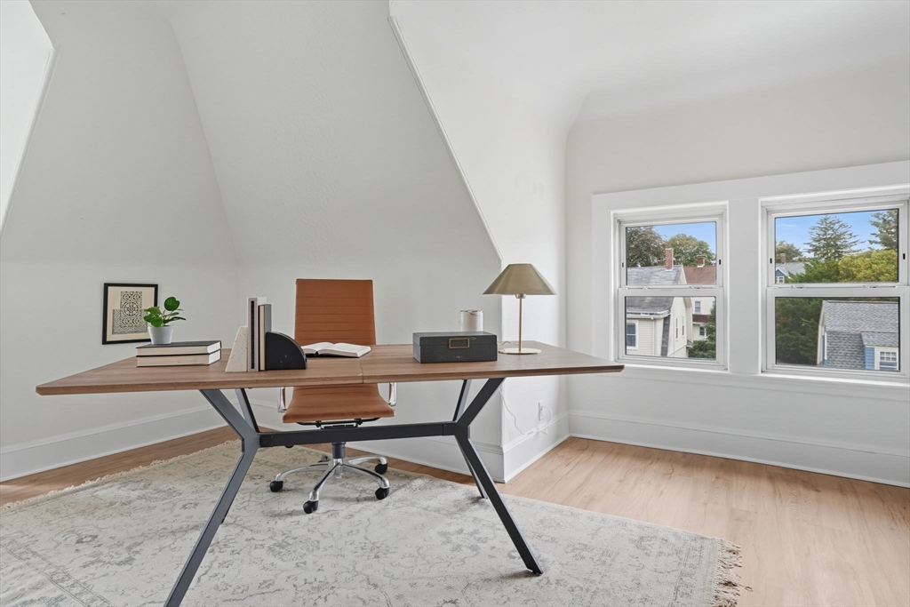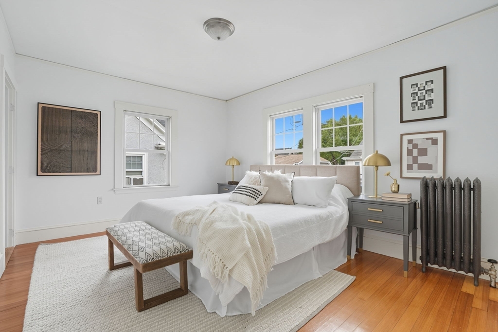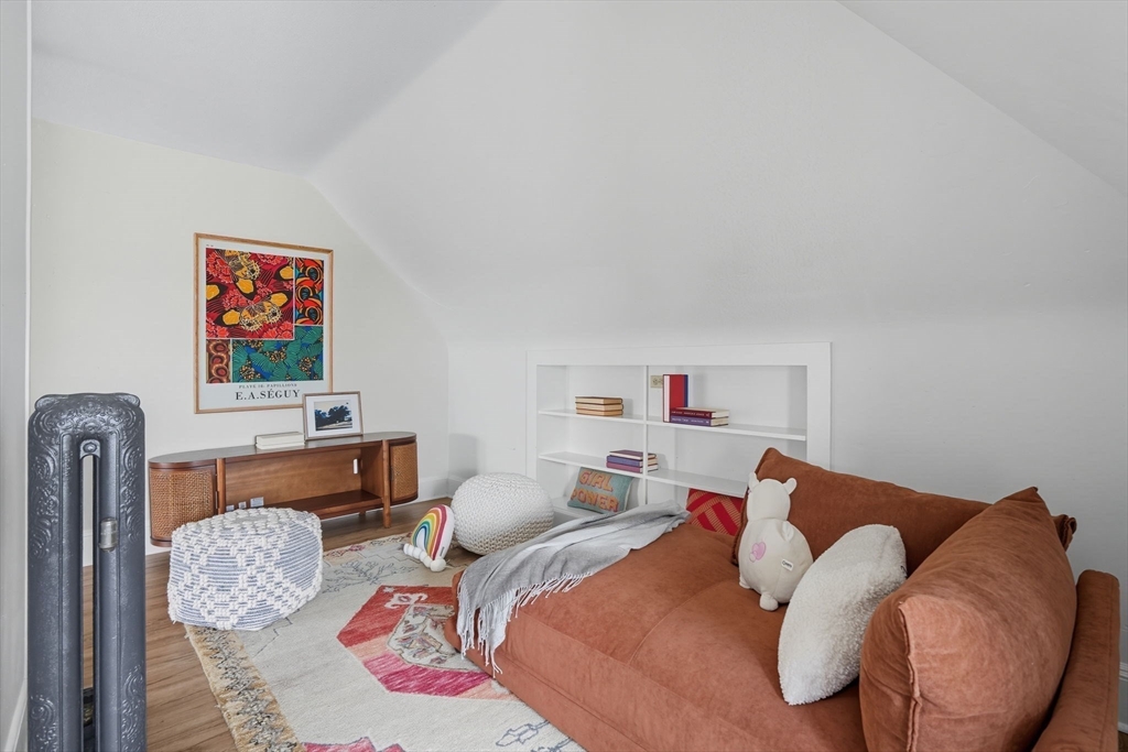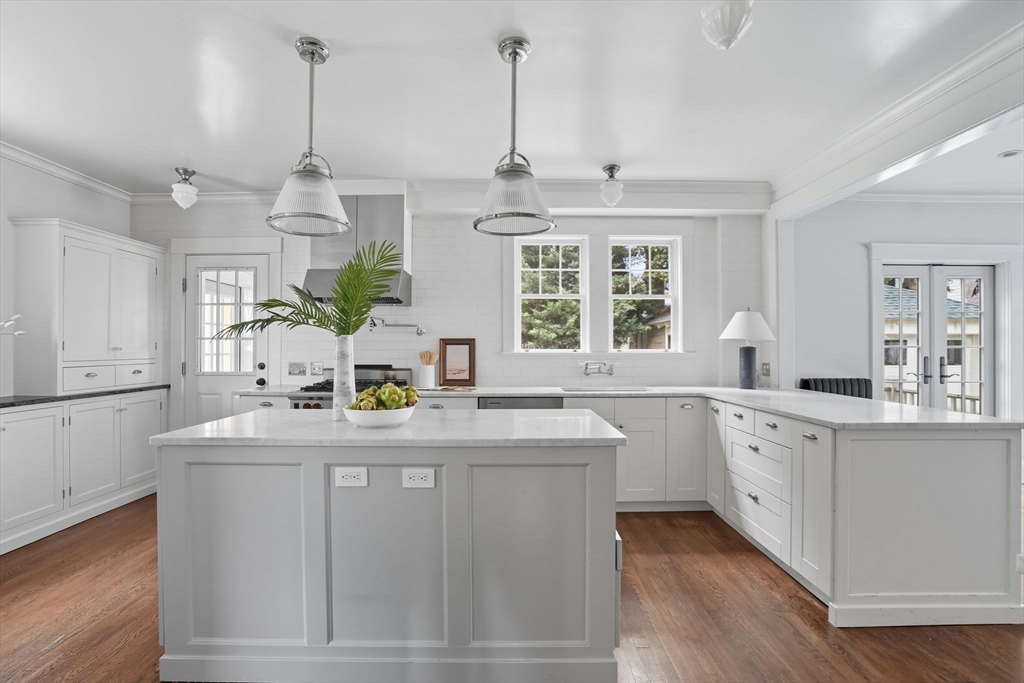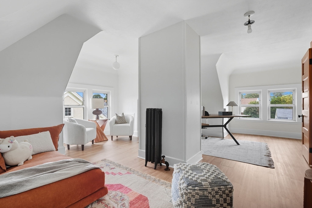 This beautifully updated Colonial combines vintage charm with modern comforts on one of West Medford’s most desirable blocks. A welcoming front porch and gracious foyer open to a sun-splashed first floor, featuring an open kitchen/dining area with honed Bianco Carrara and Vermont soapstone countertops, custom cabinetry, and a Wolf range. The living room, with its wood-burning fireplace and intricate mantle, highlights the home’s timeless woodwork, high ceilings, and hardwood floors. The elegant family bath has been thoughtfully renovated with a spa-like shower and soaking tub. Other recent updates include a 2015 roof, foam insulation, upgraded electrical, interior paint, and refreshed landscaping. Complete with a two-car garage, this home is nestled in a coveted enclave just steps to the commuter rail.