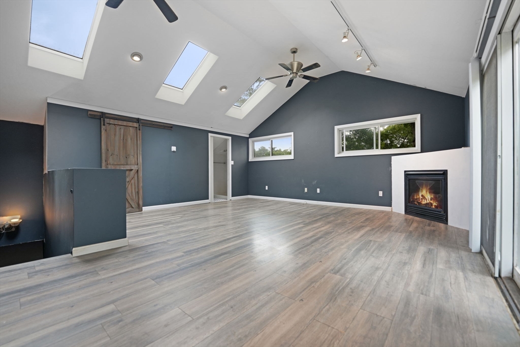 Meticulously maintained ranch set on a spacious, fenced-in lot with tranquil views of Mill Pond. Step outside to your own private oasis, perfect for both relaxation and entertaining. Pride of ownership is evident throughout, with an inviting open-concept layout featuring vaulted ceilings, recessed lighting, and a stylish kitchen with a center island. Central A/C and a newer roof add to the home’s appeal. A stand out feature is the oversized two-story garage, complete with its own separate driveway and entrance, as well as a kitchen setup. The sun-filled second level offers vaulted ceilings, skylights, a private bath, gas fireplace, separate utilities, and a slider to a balcony with breathtaking water views. The versatile loft provides endless possibilities—perfect for a guest suite, entertainment room, or home office.
