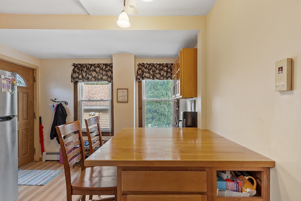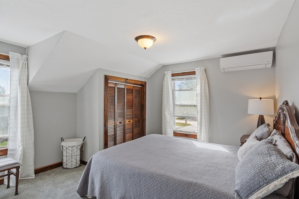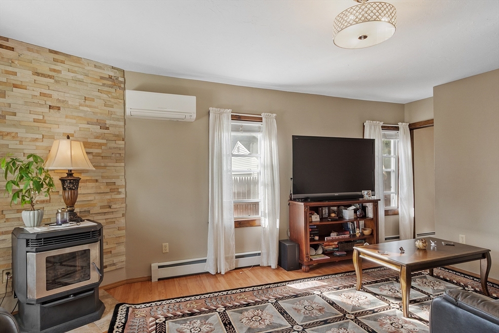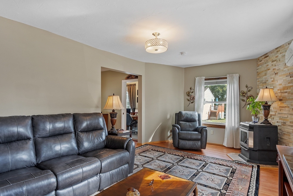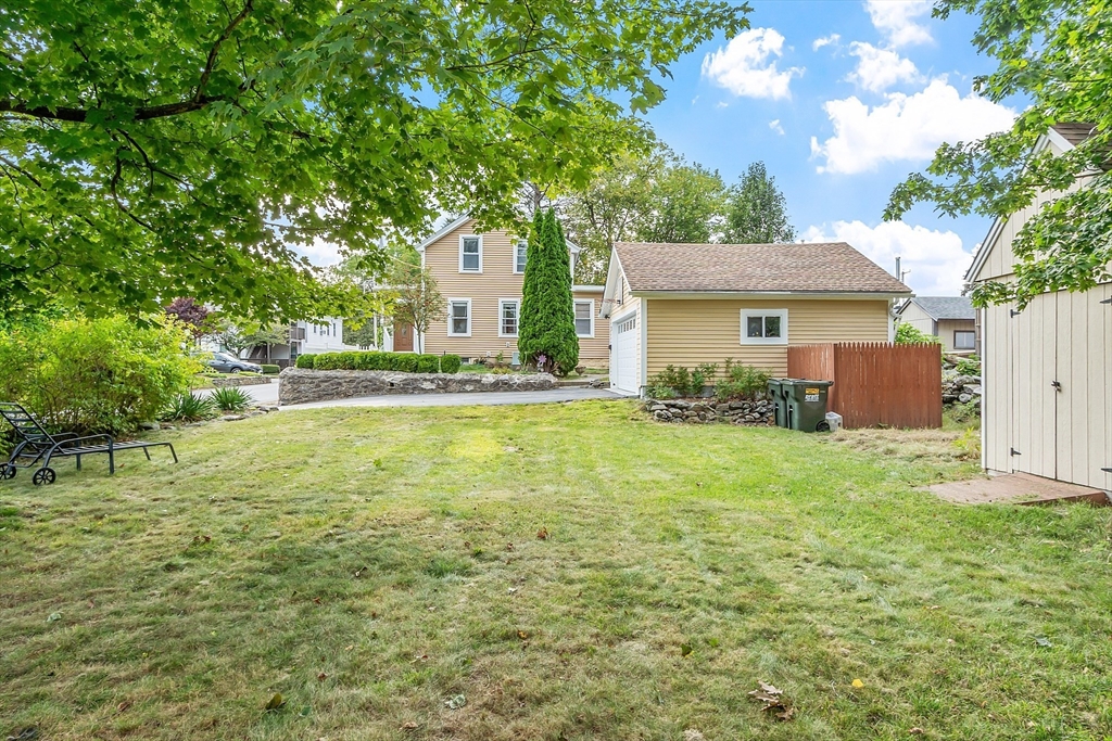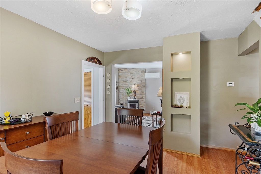 Charming, move-in ready 3BR/1.5BA Colonial on a large 0.3-acre lot just minutes to Webster Lake for quick access to summer fun and lakeside dining. Main level offers an eat-in kitchen, formal dining room , comfortable living room with pellet stove, and full bath. Upstairs features three bedrooms and a half bath with brand new carpet. A finished basement adds versatile bonus space with ample closet storage—great for office, playroom, gym, or media space. Systems are modern, including multiple mini-splits, a Roth oil tank, updated siding, and refreshed exterior spaces with a private rear deck. The private yard showcases mature plantings and lush greens, plus a 20×20 detached garage and storage shed. Convenient to highways and public schools—clean, well-maintained, and ready to enjoy.