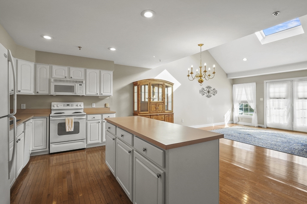 Welcome to Hillside Village, a 55+ community in West Boylston! This highly sought-after end-unit, single-level townhouse offers the perfect blend of comfort & convenience. Enter inside to find beautiful HW floors & a bright, open layout. The kitchen features, a spacious island w/ a breakfast bar & recessed lighting, seamlessly connecting to the dining area & sun-filled living room. Enjoy a vaulted ceiling w/ skylight, a cozy gas fireplace & a glass door that opens to your private back deck—perfect for relaxing or entertaining. The primary suite boasts a walk-in closet & private bath, while a second bedroom, a full bath & first-floor laundry add ease & functionality. A large unfinished walkout basement offers excellent storage or future expansion potential & the attached garage w/ paved driveway provides added convenience. The professionally managed association handles exterior maintenance & landscaping & residents enjoy access to a clubhouse for social gatherings.