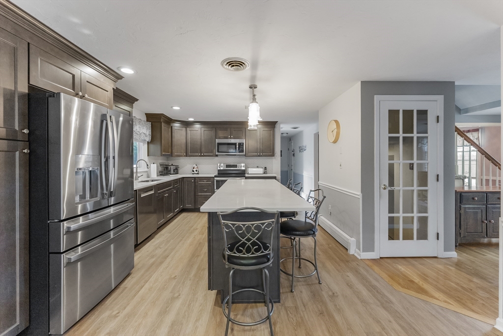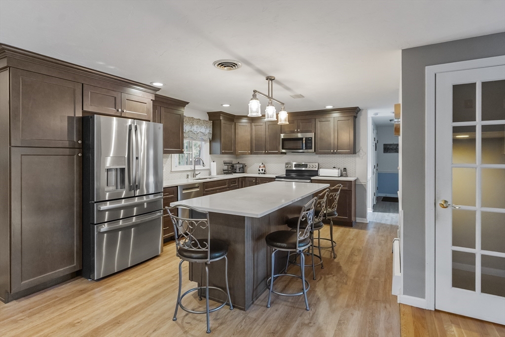 Welcome to the highly sought after Ocean Hills Estates in Kingston, MA! This beautifully updated Colonial offers 3 spacious bedrooms, 2.5 bathrooms, two offices, a living room, dining room, family room, and a rear deck for outdoor enjoyment. Set on a .76-acre corner lot, the home is just minutes from local beaches, downtown Plymouth shops and restaurants, the MBTA station, and highway access. Major updates include a new kitchen with appliances, cabinetry, and flooring (2018), Navien heating system & tankless hot water (2018), basement flooring (2019), new roof (2020), Kohler generator (2021), exterior paint (2024), widened and seal-coated driveway (2024–25), backyard drainage system (2025), updated bathroom vanities (2018–2024), and a new water pressure pump (2023). Additional highlights include irrigation, fenced backyard, 2-car garage. Contingent upon sellers finding suitable housing. Appointment required for scheduling showings during Sunday 9/28 Open House hours.