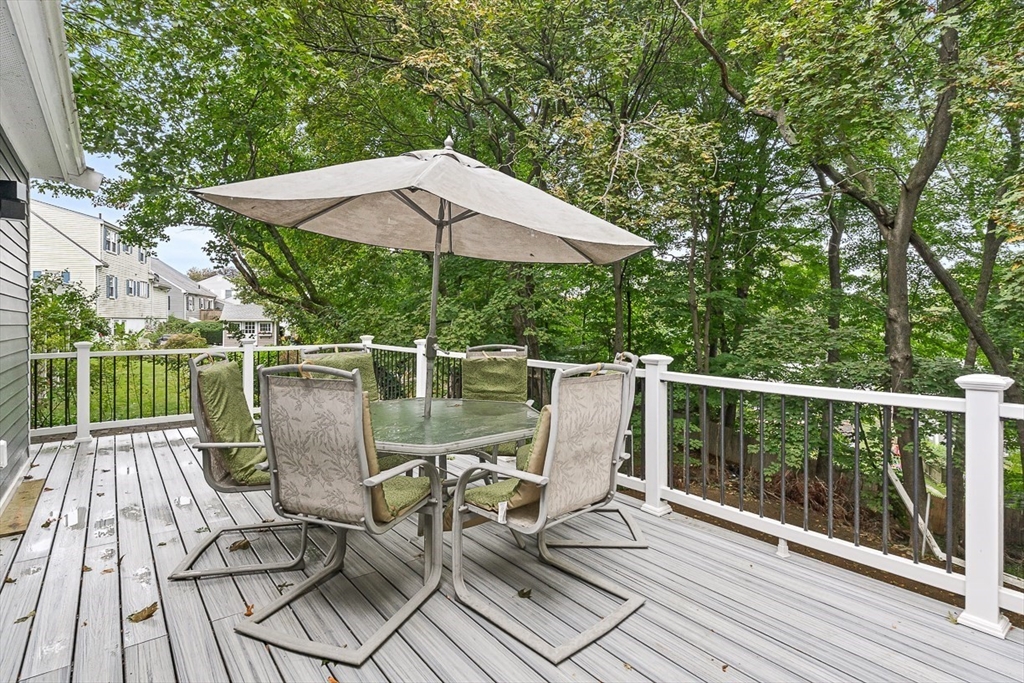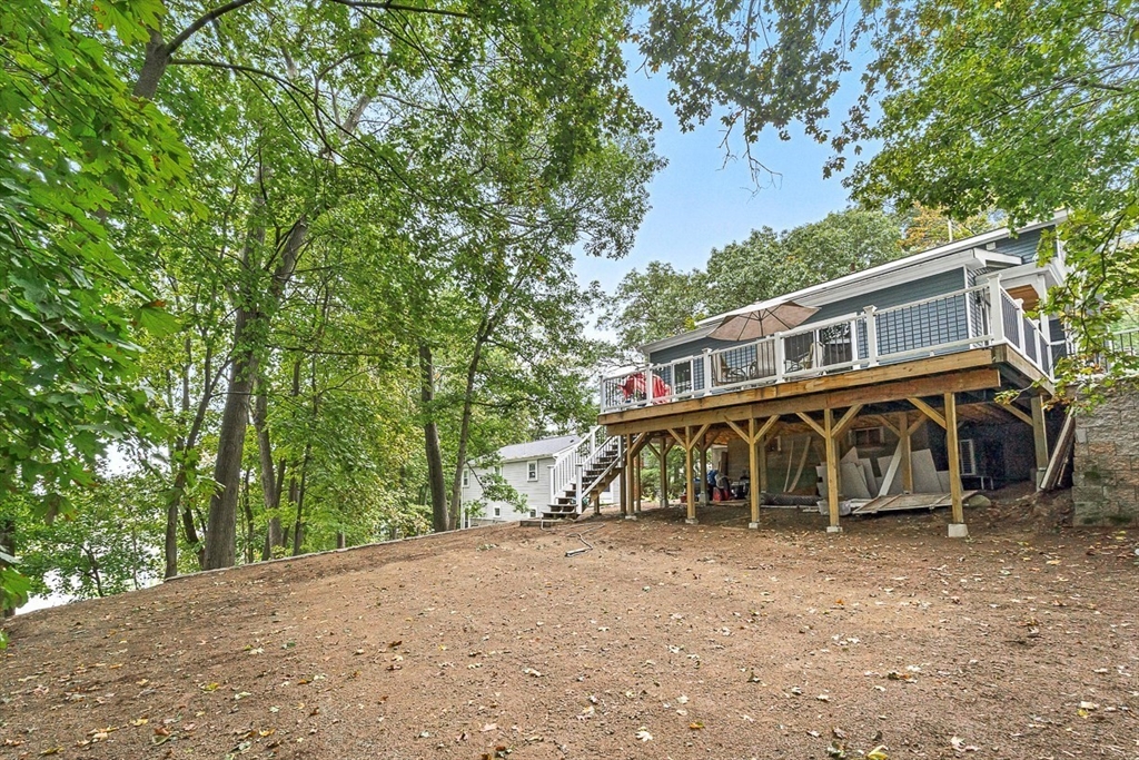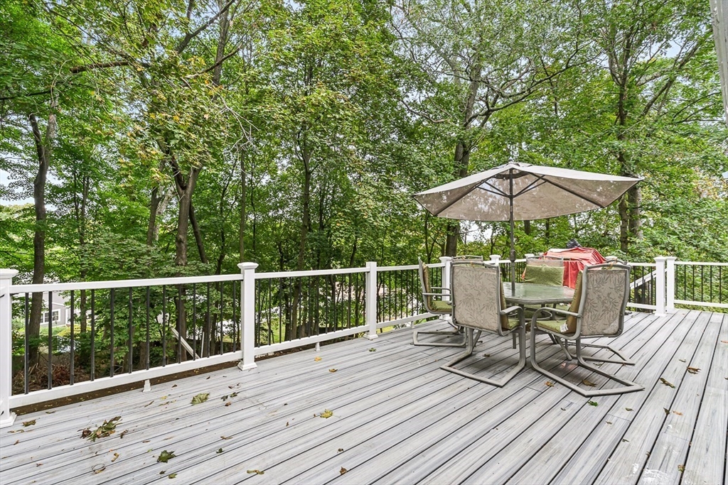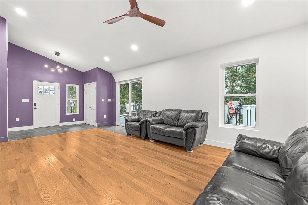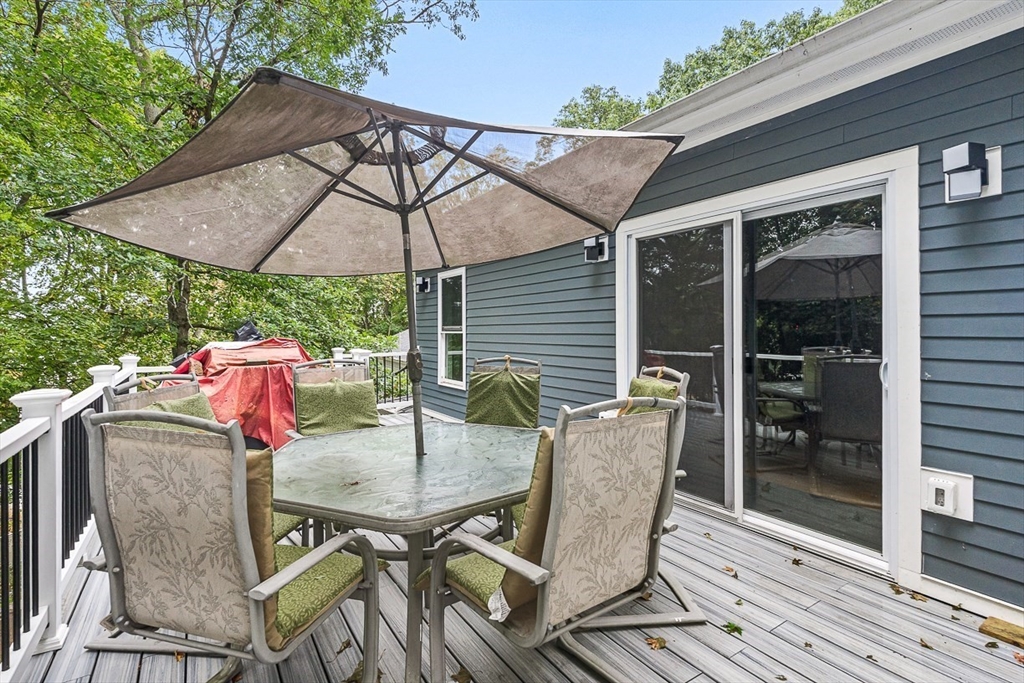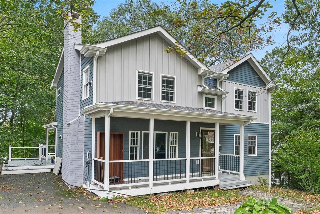 Welcome the most convenient & desirable neighborhoods of Framingham: Easy access to I-90, the shops, yet on a quiet residential street. This updated house is ideal for commuters seeking idyllic suburb life. On the main level, a welcoming front porch opens to a bright dining room that flows into a large kitchen with direct access to a spacious family room. French doors lead from the family room to expansive rear deck, creating the perfect indoor-outdoor living and entertaining experience. Two Bedrooms and a full bath on this level provide convenience for guests, a home office. Upstairs, the spacious primary suite with cathedral ceiling is served by walk-in closet and beautiful full bath. Two additional bedrooms on this level offer ample space for family. The basement is ready for storage, a home gym, or future expansion; it walks out to a newly leveled back yard. With multiple decks, a family-friendly layout, and plenty of storage, this home boasts both comfort and versatility.