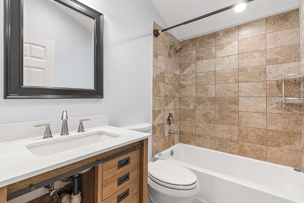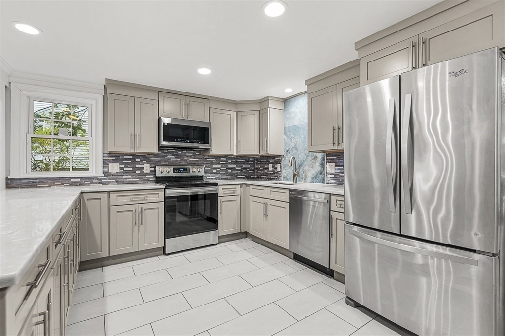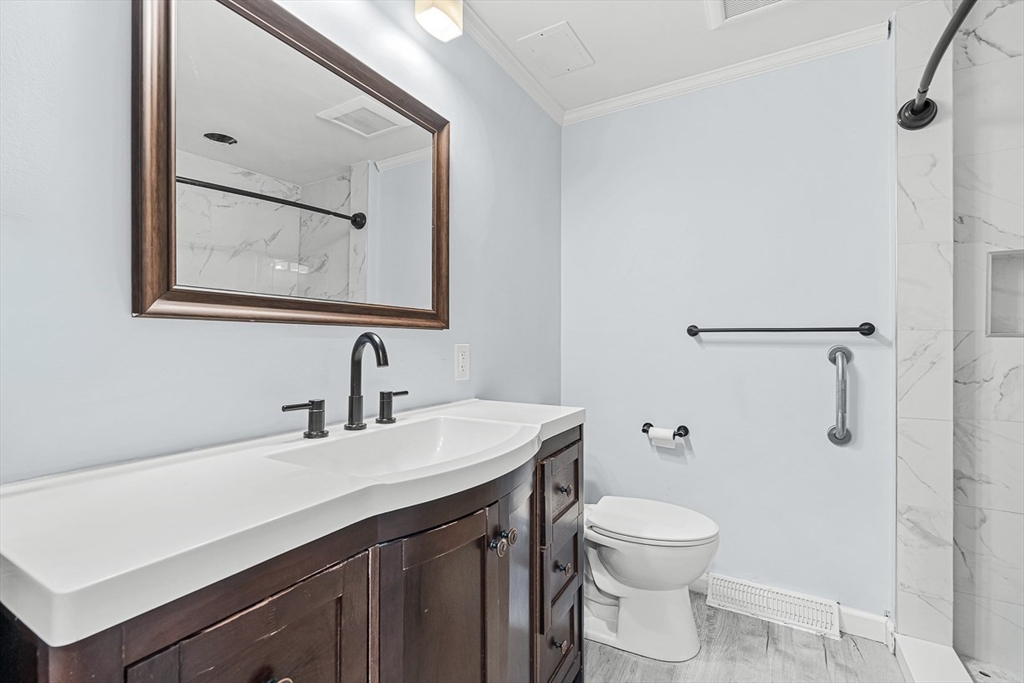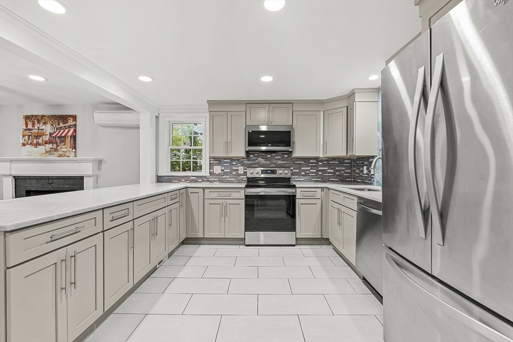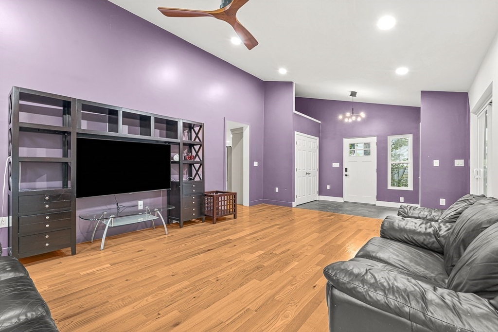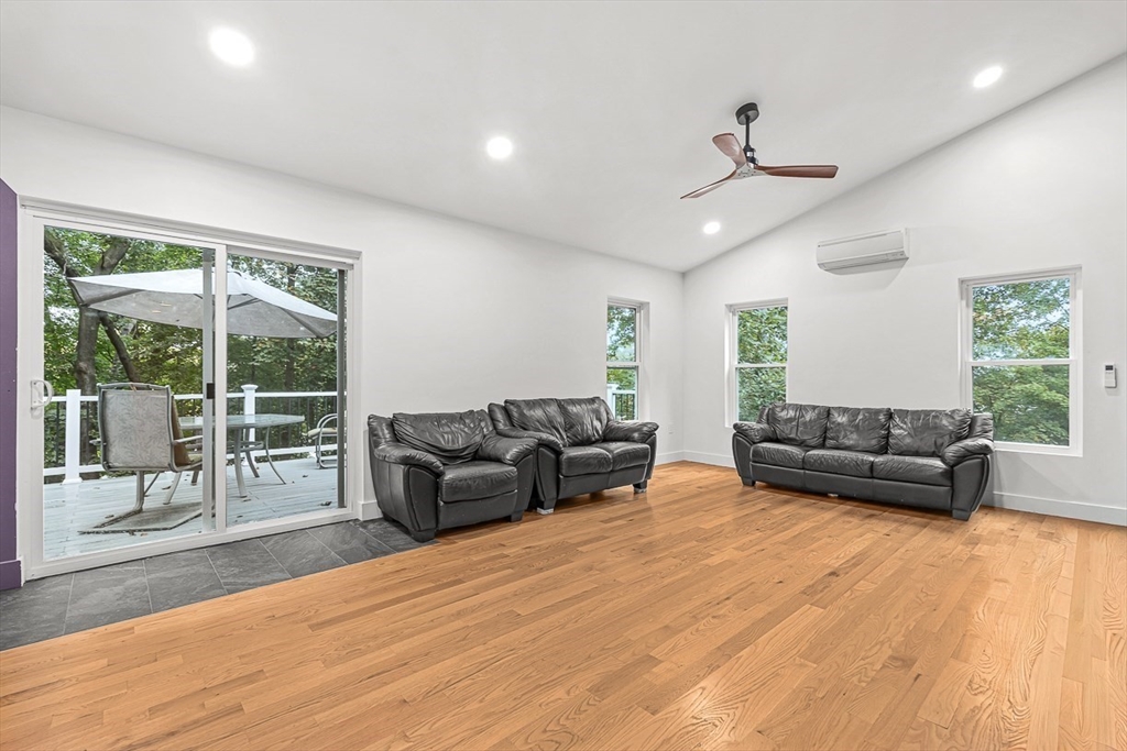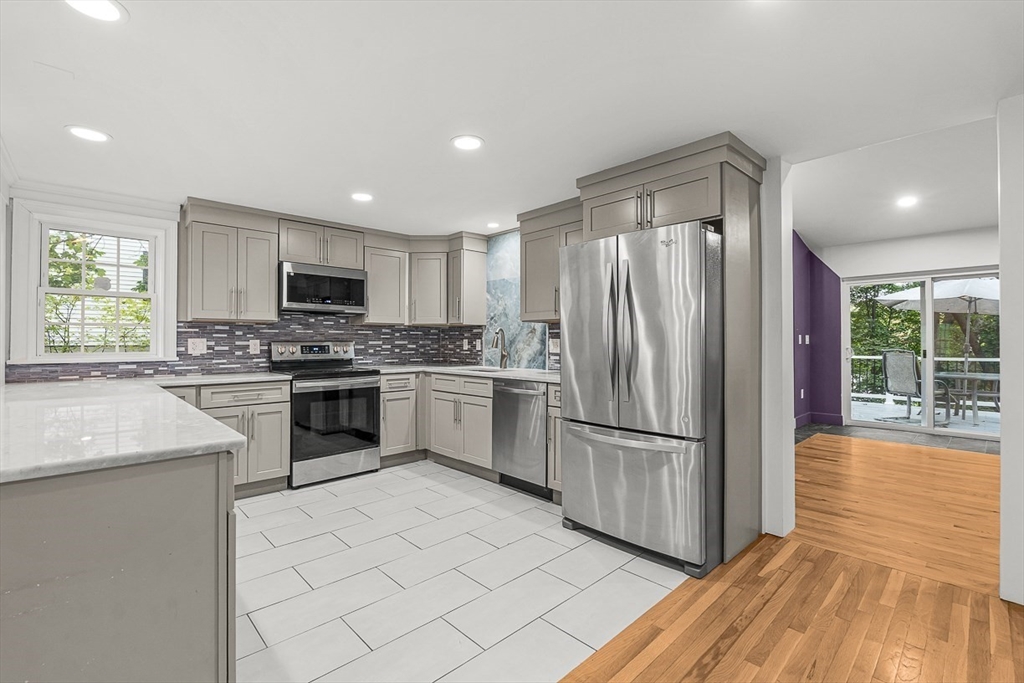 Welcome the most convenient & desirable neighborhoods of Framingham: Easy access to I-90, the shops, yet on a quiet residential street. This updated house is ideal for commuters seeking idyllic suburb life. On the main level, a welcoming front porch opens to a bright dining room that flows into a large kitchen with direct access to a spacious family room. French doors lead from the family room to expansive rear deck, creating the perfect indoor-outdoor living and entertaining experience. Two Bedrooms and a full bath on this level provide convenience for guests, a home office. Upstairs, the spacious primary suite with cathedral ceiling is served by walk-in closet and beautiful full bath. Two additional bedrooms on this level offer ample space for family. The basement is ready for storage, a home gym, or future expansion; it walks out to a newly leveled back yard. With multiple decks, a family-friendly layout, and plenty of storage, this home boasts both comfort and versatility.