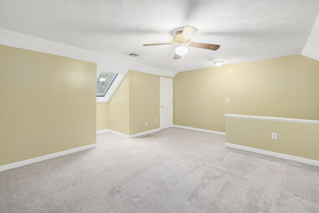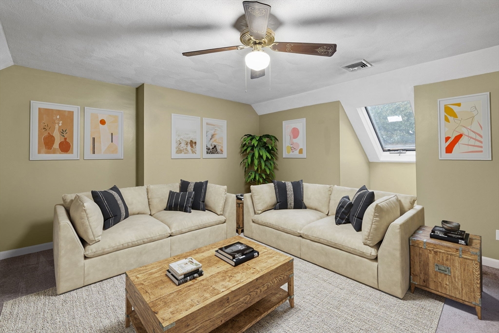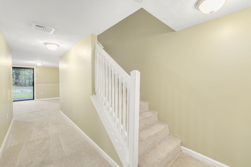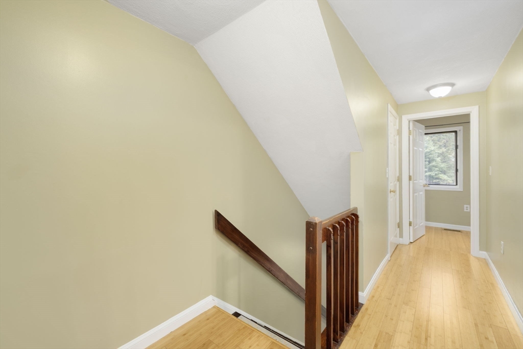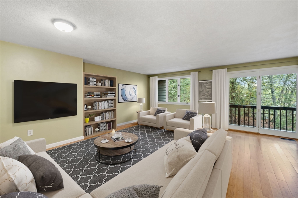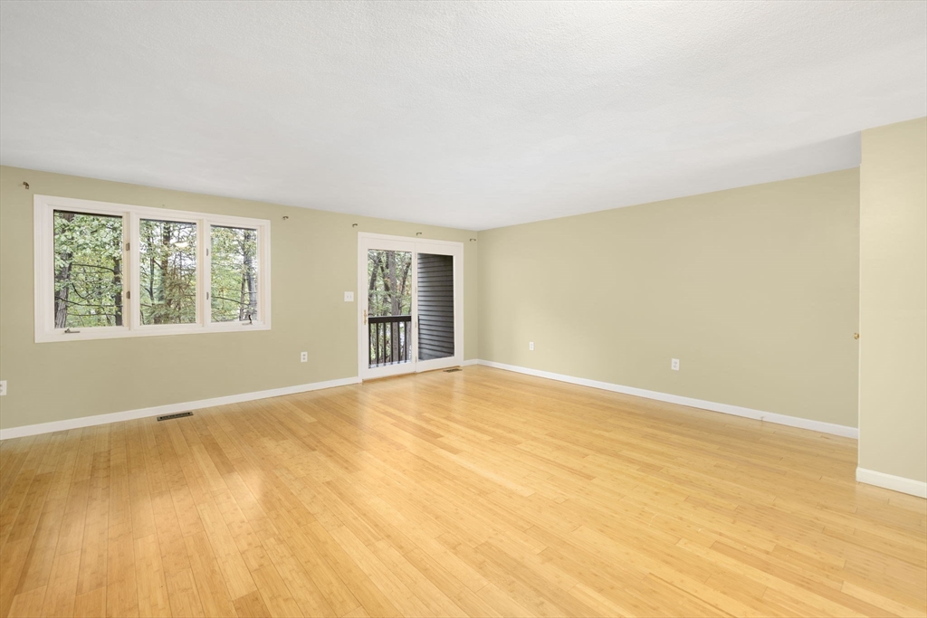 Discover 4 levels of comfortable living in this well-maintained townhome offering 2-3 bedrooms and 1.5 baths. Step inside into a cozy kitchen featuring stainless appliances and plenty of natural light. The open living/dining room combo with bamboo hardwood floors offers direct access to a private deck overlooking the wooded back yard. Upstairs, the large primary bedroom includes its own slider to another private deck, double closets, and direct access to the full bath. A second bedroom at the opposite end of the hall offers privacy. The finished lower level with walkout provides versatile extra space with laundry and utilities, while the fourth level bonus loft room or third bedroom adds even more flexibility. Enjoy all the amenities of the Deer Hedge Path community, including a clubhouse, heated inground pool, gym, and tennis & basketball courts. The well-managed, pet-friendly is Conveniently located near Rt 2 & 117, the commuter train, and just minutes to shopping, dining, and more.
