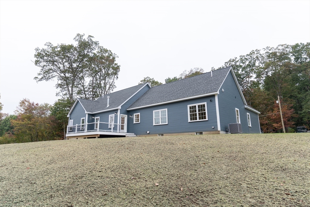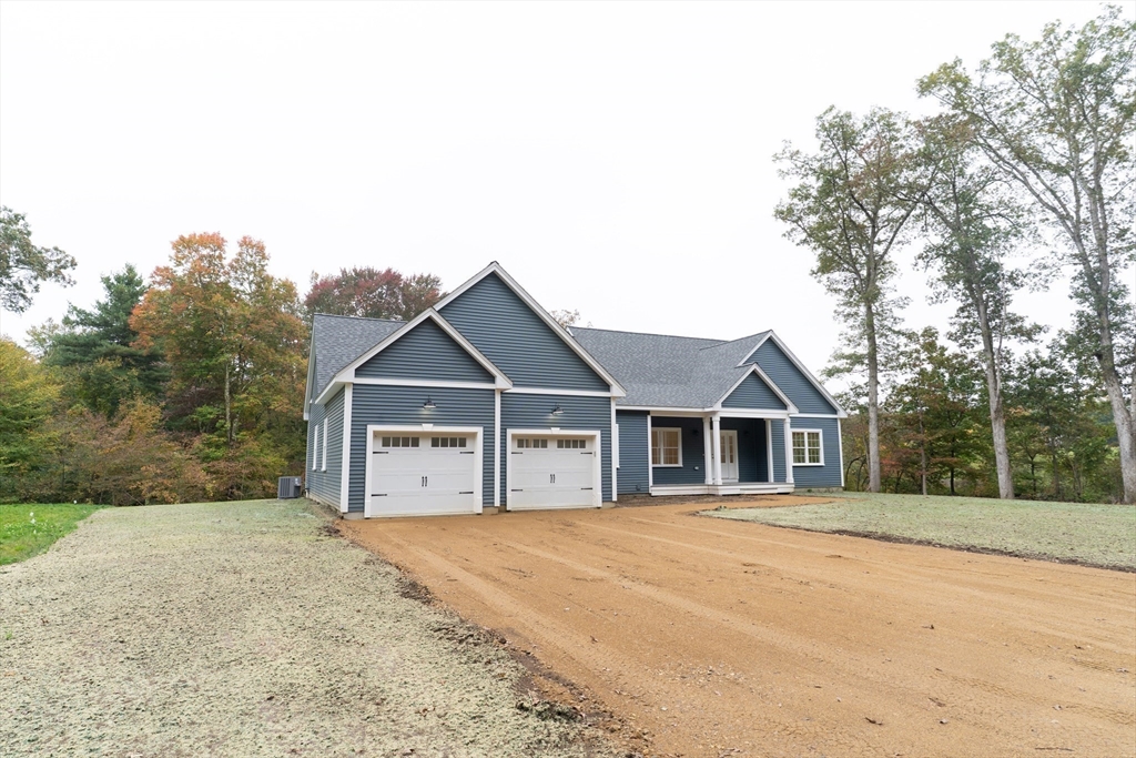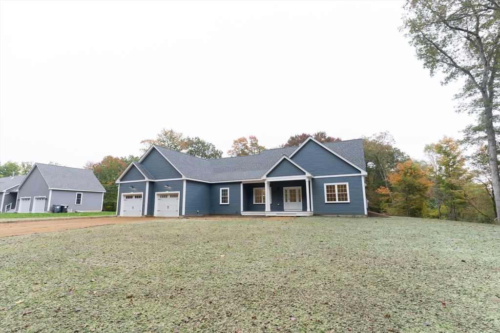 BRAND NEW AND READY FOR OCCUPANCY! This stunning, executive ranch offers 7 rooms, 3 bedrooms, 2 full baths, and a bright home office. Designed with an open floor plan, it features a cabinet-packed chef’s kitchen with granite countertops, a large center island, and flows seamlessly into the expansive living/dining room with vaulted ceilings, recessed lighting, and a cozy gas fireplace. The private primary suite boasts a huge walk-in closet and spa-like bath. Additional highlights include a separate laundry room, mudroom, hardwood floors, central air, propane heat, and an oversized deck perfect for entertaining. Enjoy a welcoming farmer’s porch, paved driveway, and a beautiful backyard with sweeping views. Wonderful commuter location with easy access to the MA Pike, Rts 9, 20 & 84! See the attached 3D Matterport tour for a full experience!