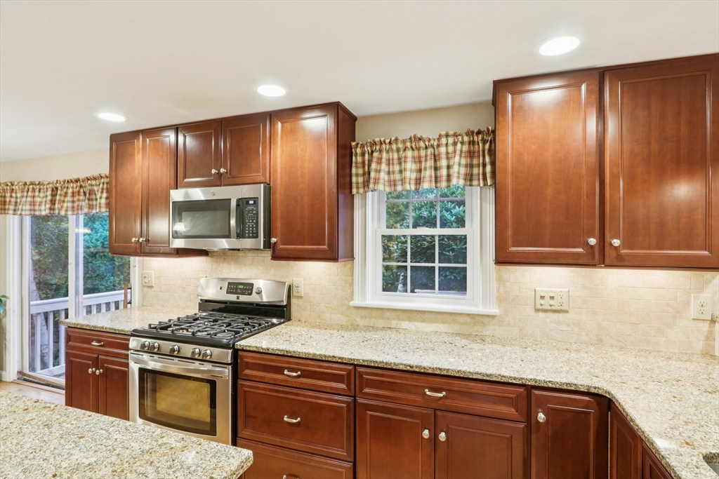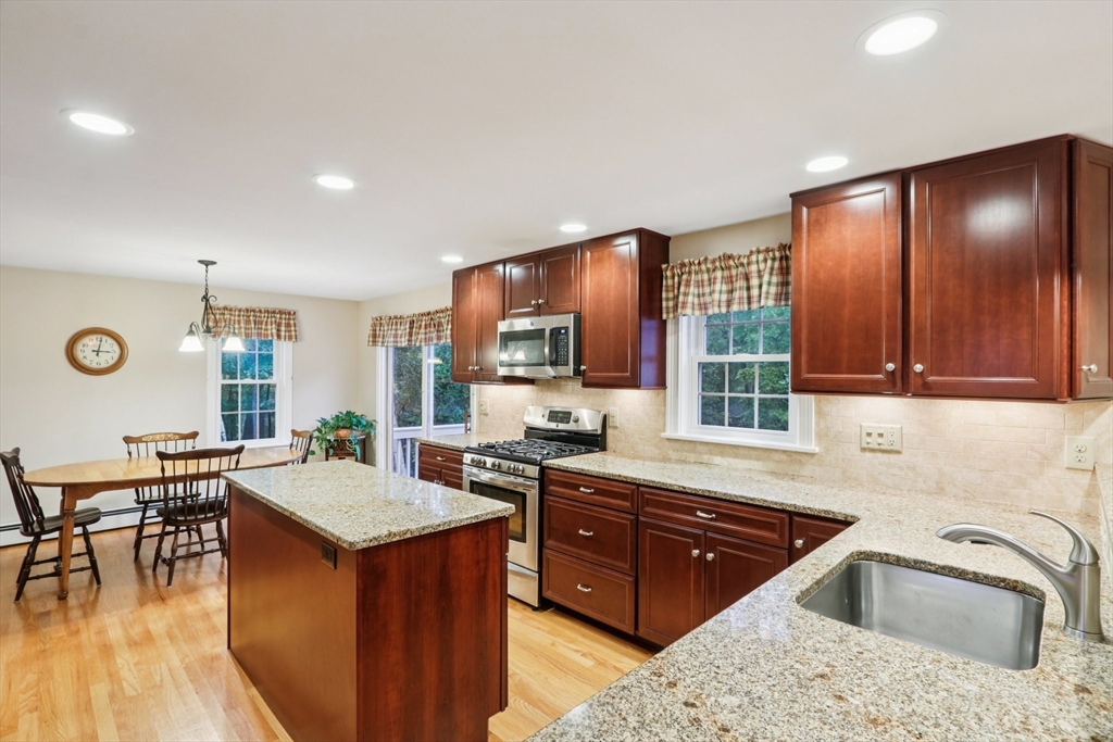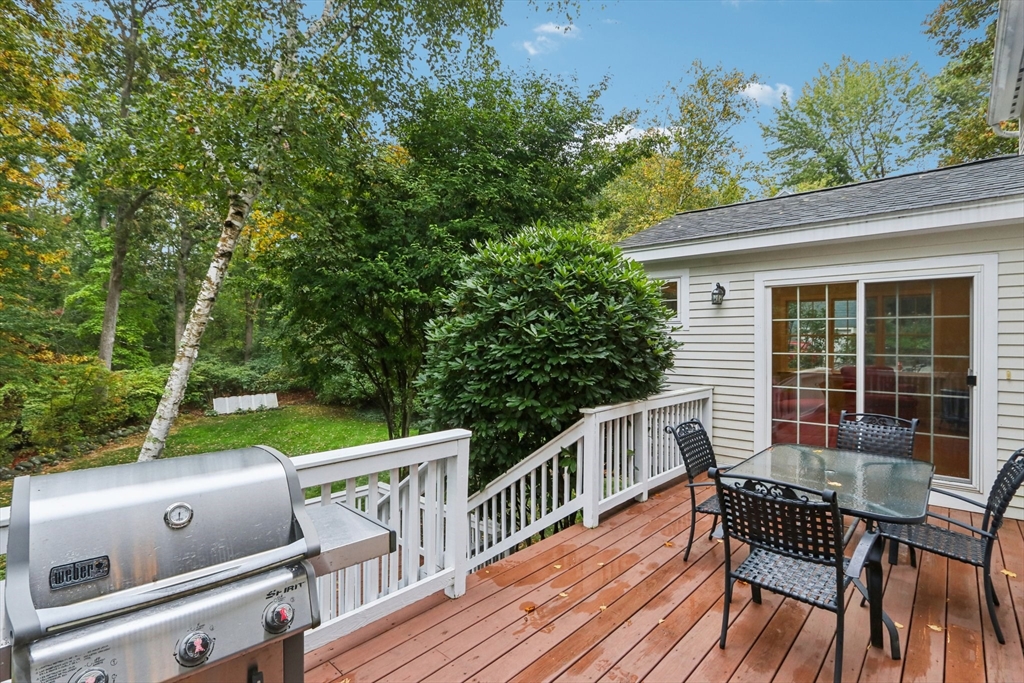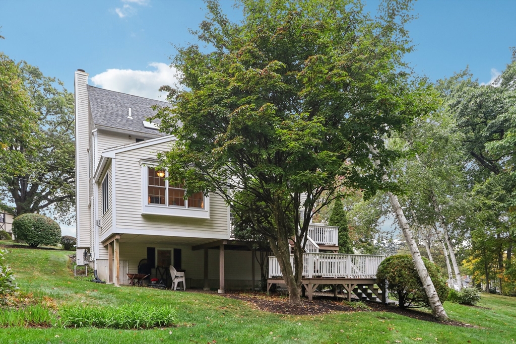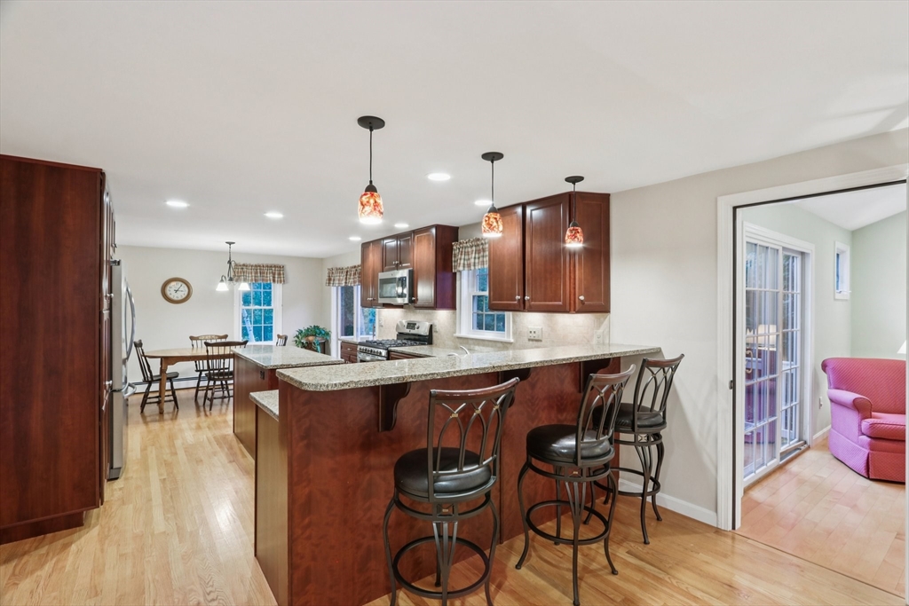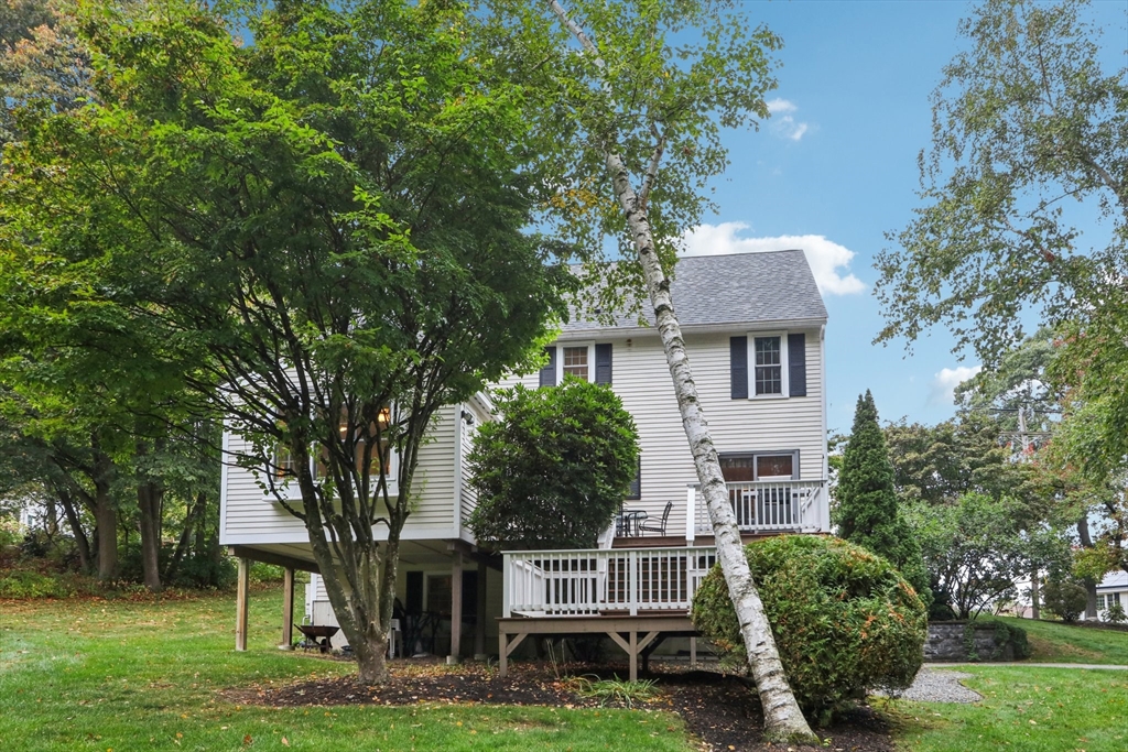 You will fall in love with this charming Bradford colonial! Open front entry with hardwood leads to the front living room with wood burning fireplace and mini split. Beautiful updated eat in kitchen with cherry cabinets, granite counters, stainless steel appliances, breakfast bar and center island perfect for entertaining! There is a slider leading out to the private back deck and a large front dining room with hardwood. Updated half bath with laundry and read a book or listen to the wild life in the back four season sunroom that also has a slider leading to the back deck. Second level has 2 generous sized bedrooms with an updated full bath and an amazing primary suite with vaulted ceiling, walk in closet and an updated sun drenched primary bath with skylight. Unfinished lower level, leading to the 2 car garage. Large back yard space and very private! Great location where you can hit the gym, grab some coffee and head to work within 5 minutes of your house!
