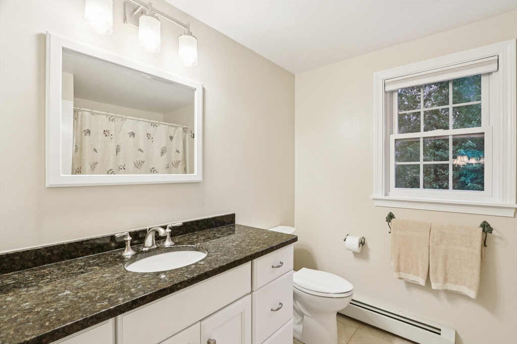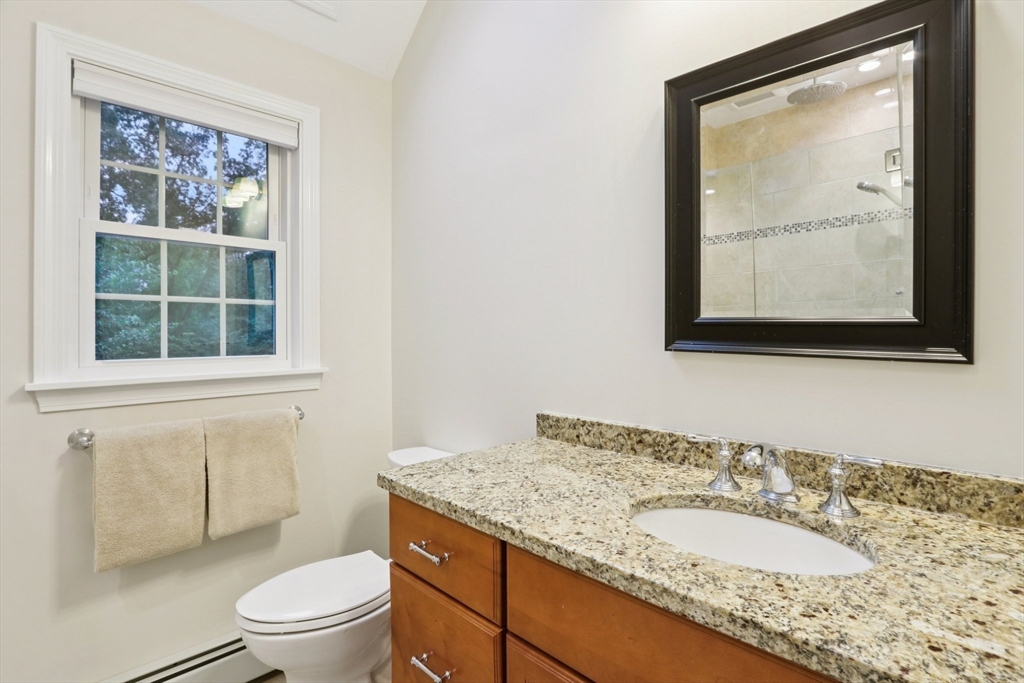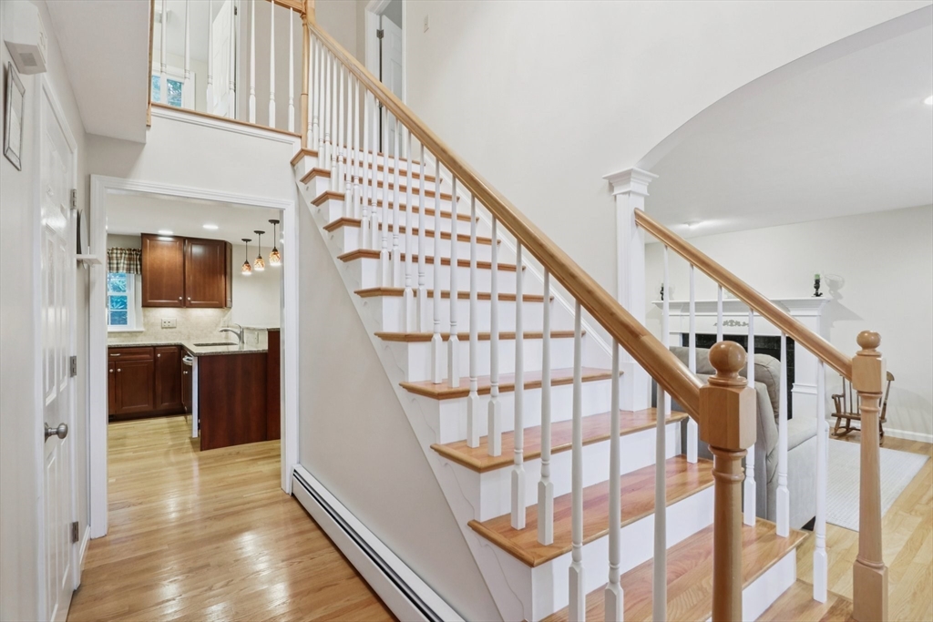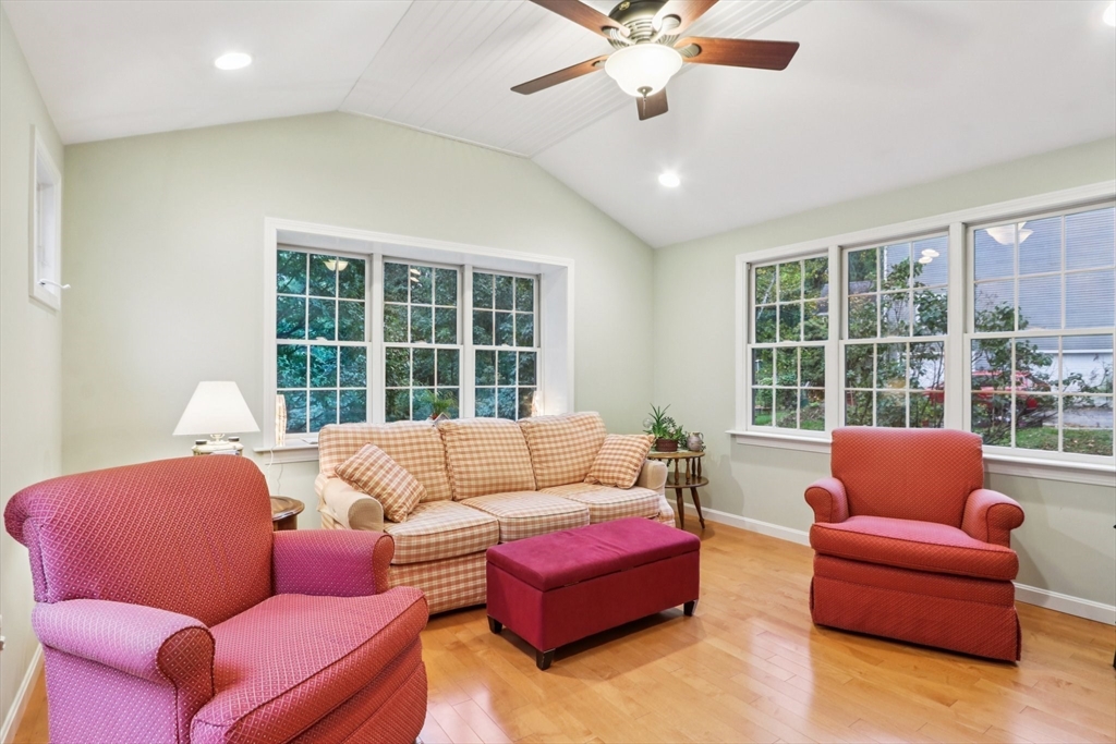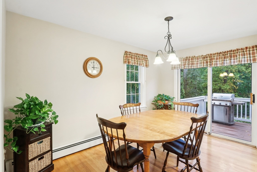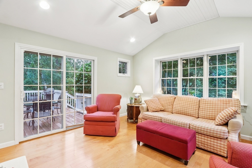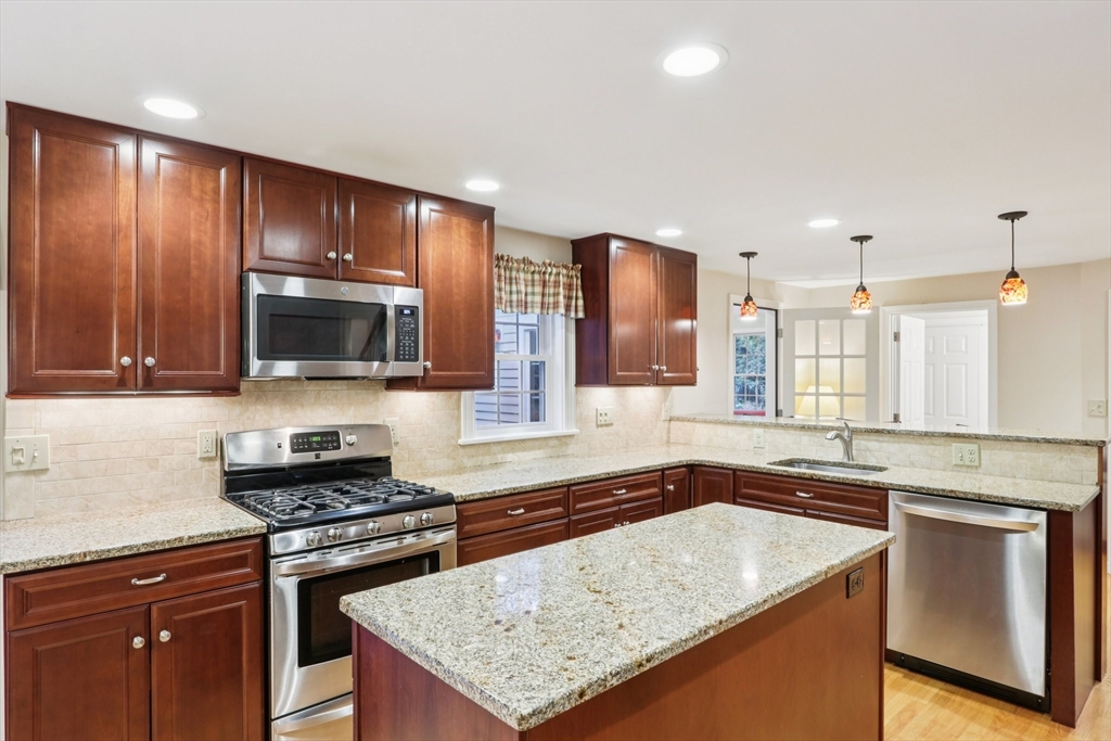 You will fall in love with this charming Bradford colonial! Open front entry with hardwood leads to the front living room with wood burning fireplace and mini split. Beautiful updated eat in kitchen with cherry cabinets, granite counters, stainless steel appliances, breakfast bar and center island perfect for entertaining! There is a slider leading out to the private back deck and a large front dining room with hardwood. Updated half bath with laundry and read a book or listen to the wild life in the back four season sunroom that also has a slider leading to the back deck. Second level has 2 generous sized bedrooms with an updated full bath and an amazing primary suite with vaulted ceiling, walk in closet and an updated sun drenched primary bath with skylight. Unfinished lower level, leading to the 2 car garage. Large back yard space and very private! Great location where you can hit the gym, grab some coffee and head to work within 5 minutes of your house!