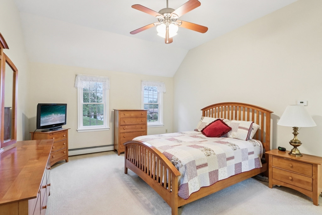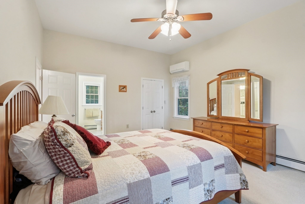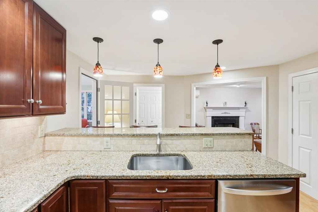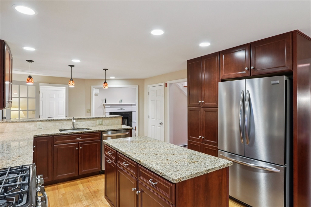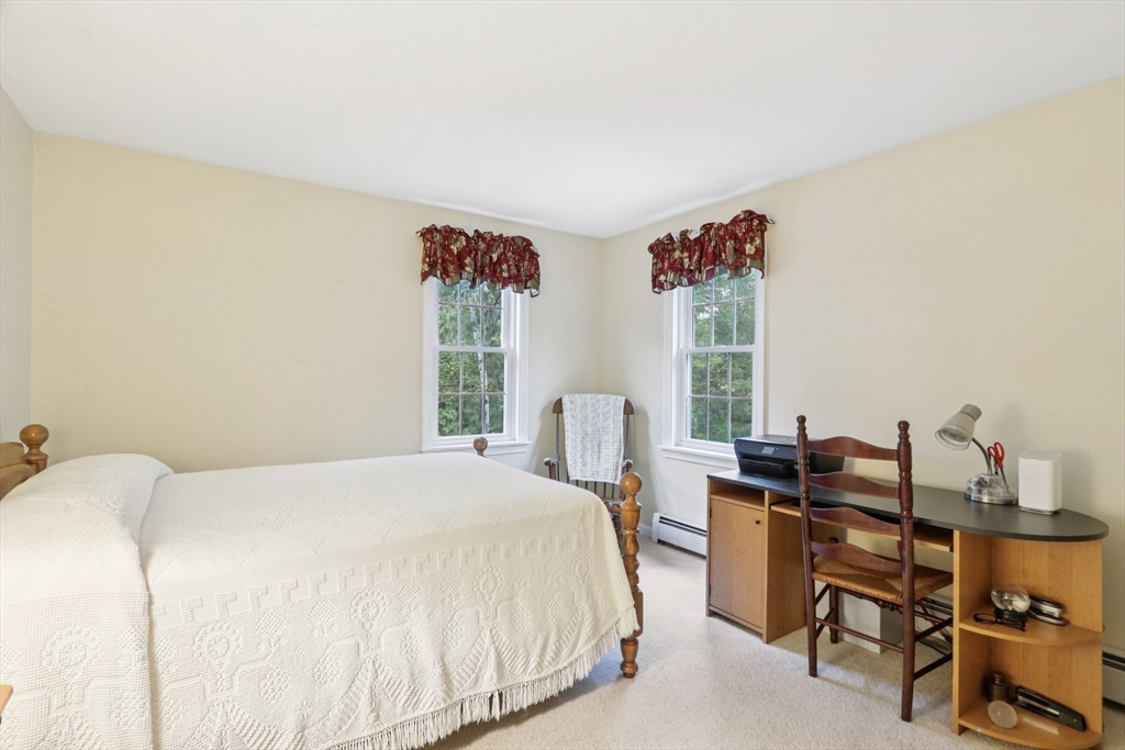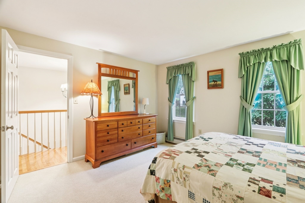 You will fall in love with this charming Bradford colonial! Open front entry with hardwood leads to the front living room with wood burning fireplace and mini split. Beautiful updated eat in kitchen with cherry cabinets, granite counters, stainless steel appliances, breakfast bar and center island perfect for entertaining! There is a slider leading out to the private back deck and a large front dining room with hardwood. Updated half bath with laundry and read a book or listen to the wild life in the back four season sunroom that also has a slider leading to the back deck. Second level has 2 generous sized bedrooms with an updated full bath and an amazing primary suite with vaulted ceiling, walk in closet and an updated sun drenched primary bath with skylight. Unfinished lower level, leading to the 2 car garage. Large back yard space and very private! Great location where you can hit the gym, grab some coffee and head to work within 5 minutes of your house!