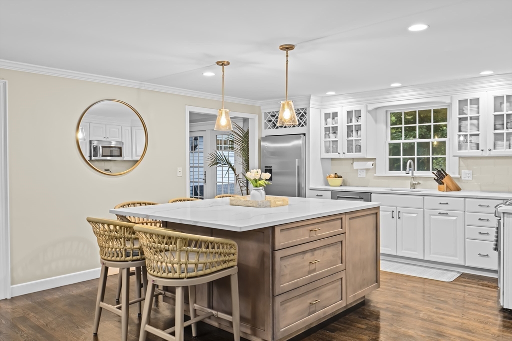 Experience refined living at 11 Golfview Drive, a beautifully updated colonial in one of Hingham’s premier neighborhoods. This exceptional home features a newly built third-floor master suite and private office, offering ultimate privacy and elegant finishes. The main level boasts a fireplaced formal living room, welcoming dining area, and an open-concept kitchen flowing into a sunlit family room - ideal for entertaining. Along with a massive mudroom and a finished basement. Three additional bedrooms and two more full baths occupy the second floor, while the top-level retreat offers serenity and style. Step outside to a two-tiered deck, set against professionally landscaped grounds and golf course vistas. Central air, hardwood floors, and an attached garage complete the offering. Just minutes from fine dining, Hingham Square, and top schools, this is luxury suburban living at its best.