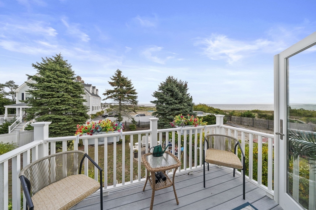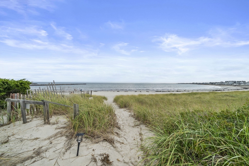 Wake up to sweeping ocean views in this idyllic 2-bed, 3-bath coastal condo retreat in the heart of Green Harbor. Nestled on coveted Bay Ave with deeded beach access, it’s the perfect spot year round or for snowbirds. You can spend summers by the sea and winters down south. The main bedroom offers a walk-in closet, ensuite bath, and 9' slider out to the private composite balcony overlooking the ocean. The 2nd bedroom has an ensuite bath as well! A spiral staircase leads to the rooftop deck. The open floor plan features a large family room with a gas fireplace, lovely dining area, and 9’ slider opening to a private 12x12 cement courtyard. The galley kitchen has newer appliances and granite countertops. A communal firepit and patio invite gatherings with friends and neighbors. Recent updates include a 4-5 yr old roof and HVAC. Additional highlights: first-floor laundry with full bath, security system, and central AC. Close to all the beach favorites! Ice cream, lobsters, penny candy!